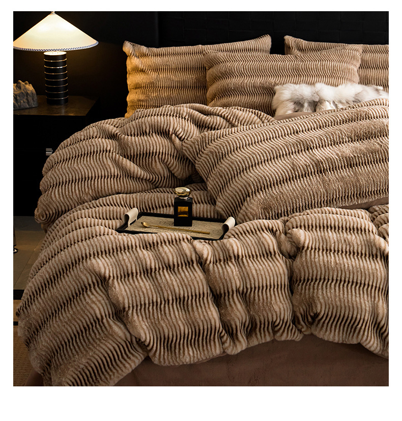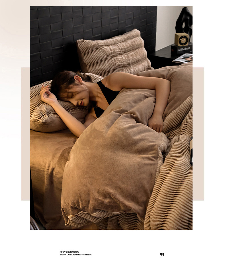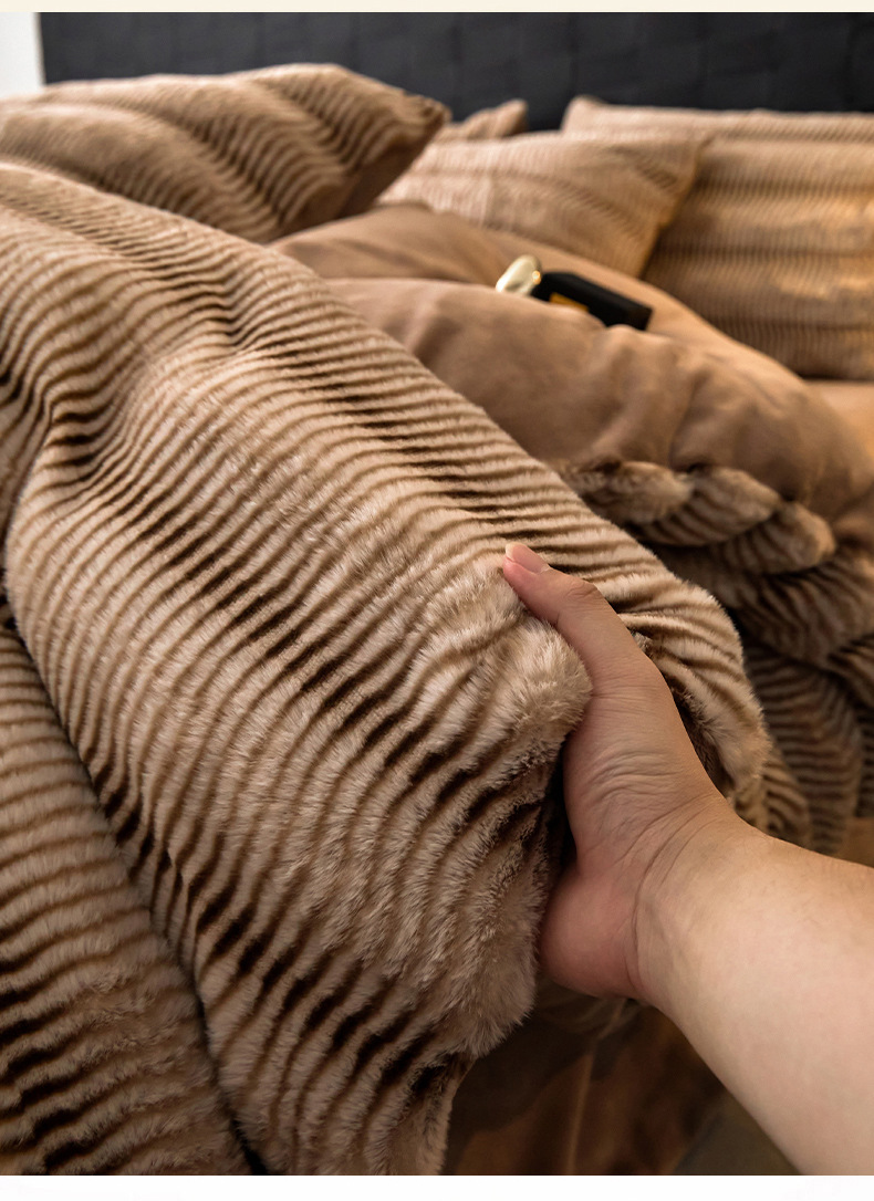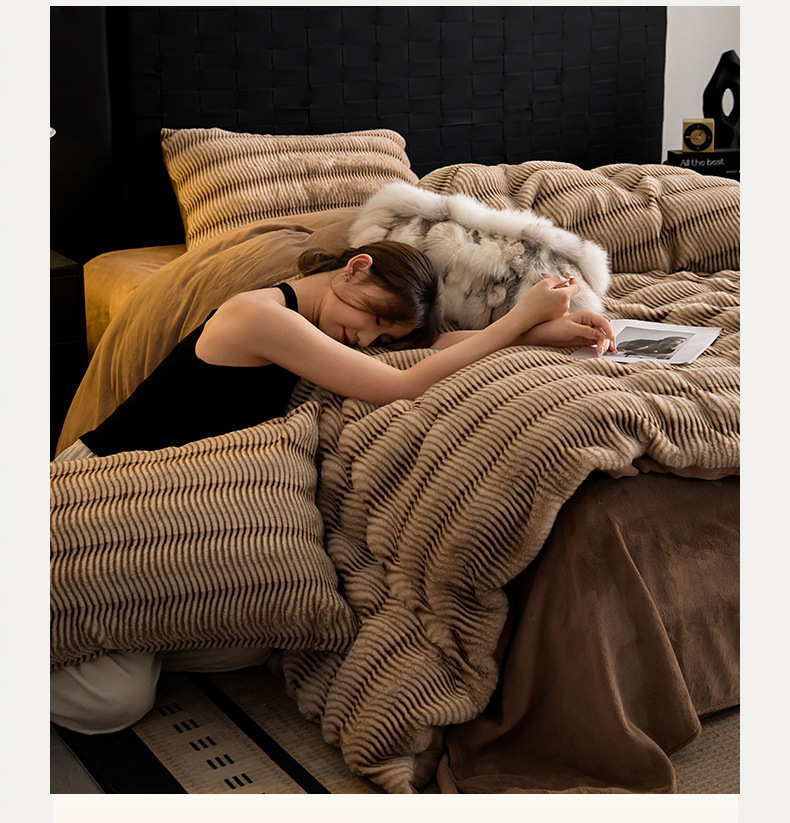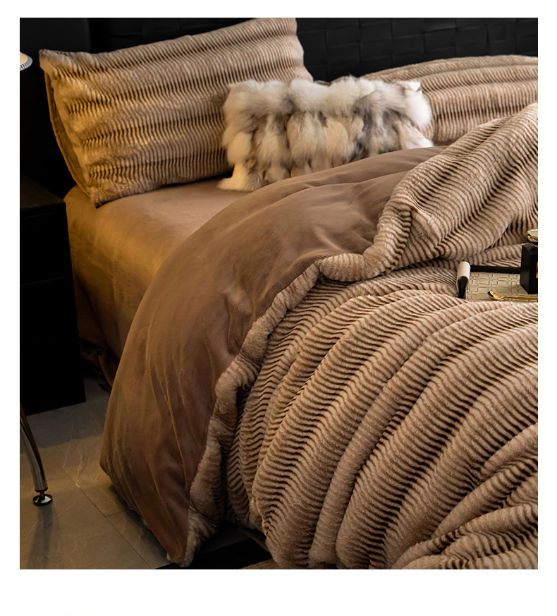 Piel cálido invierno conejo pelaje de cuatro piezas conjunto 2025 nuevo coral leche de lana de lana de doble cara cama gruesa otoño invierno