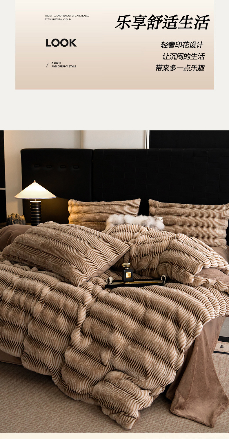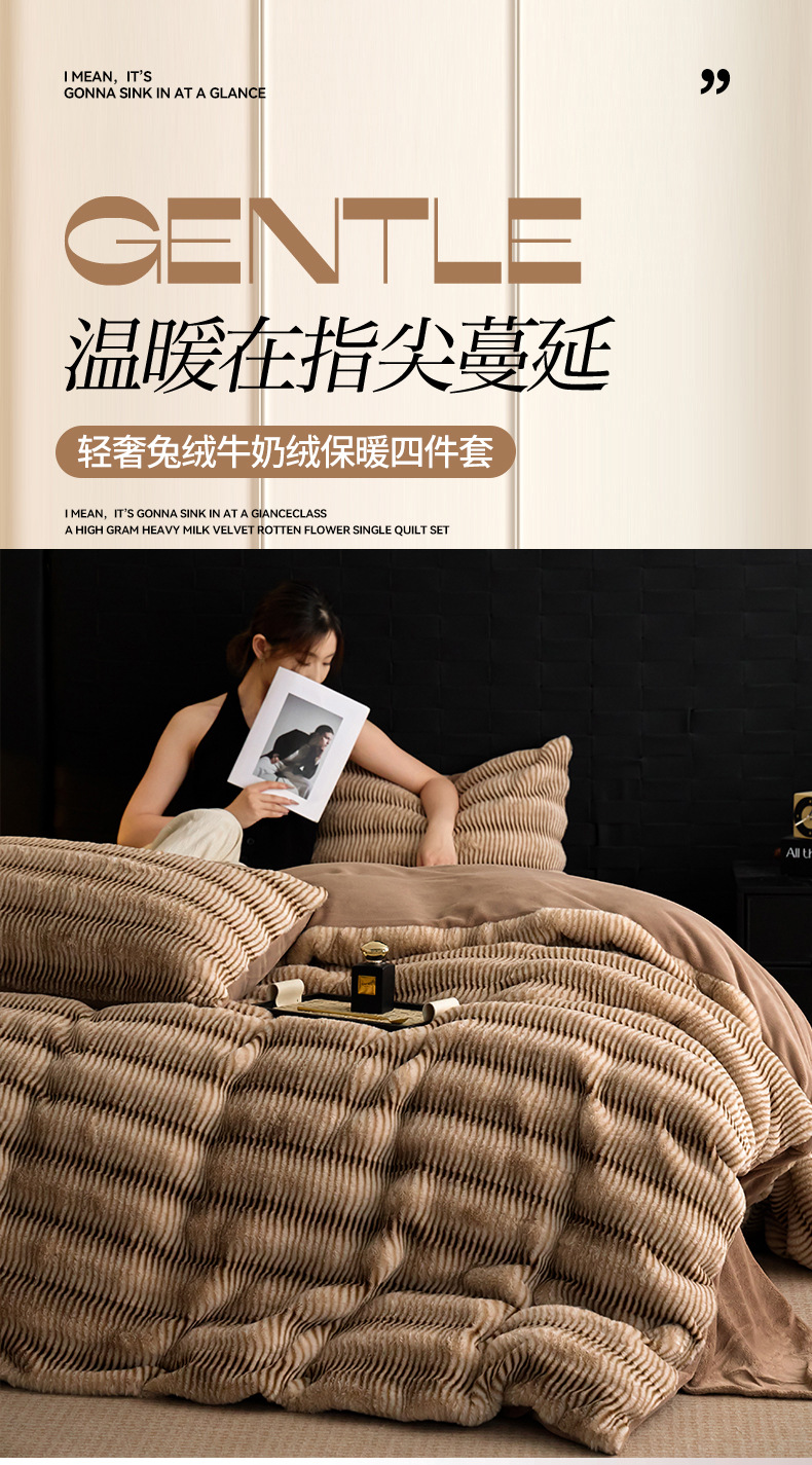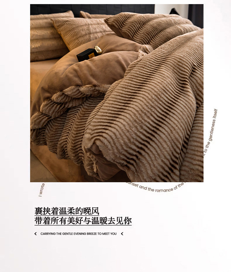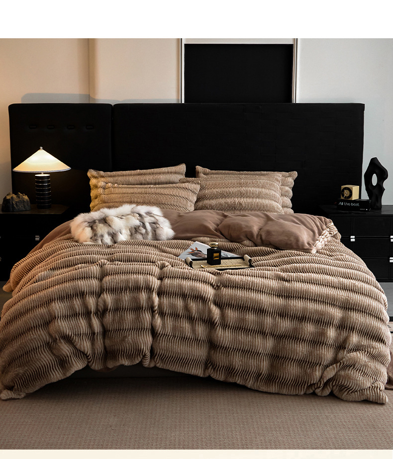 Piel cálido invierno conejo pelaje de cuatro piezas conjunto 2025 nuevo coral leche de lana de lana de doble cara cama gruesa otoño invierno