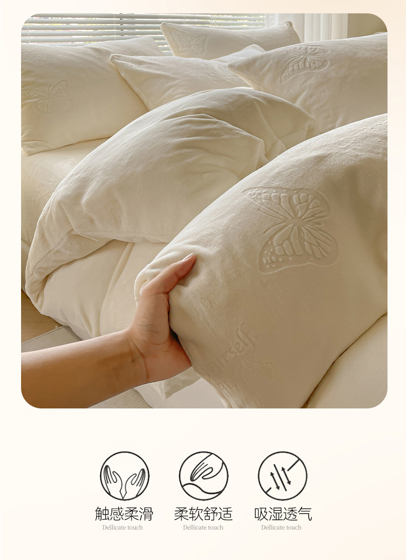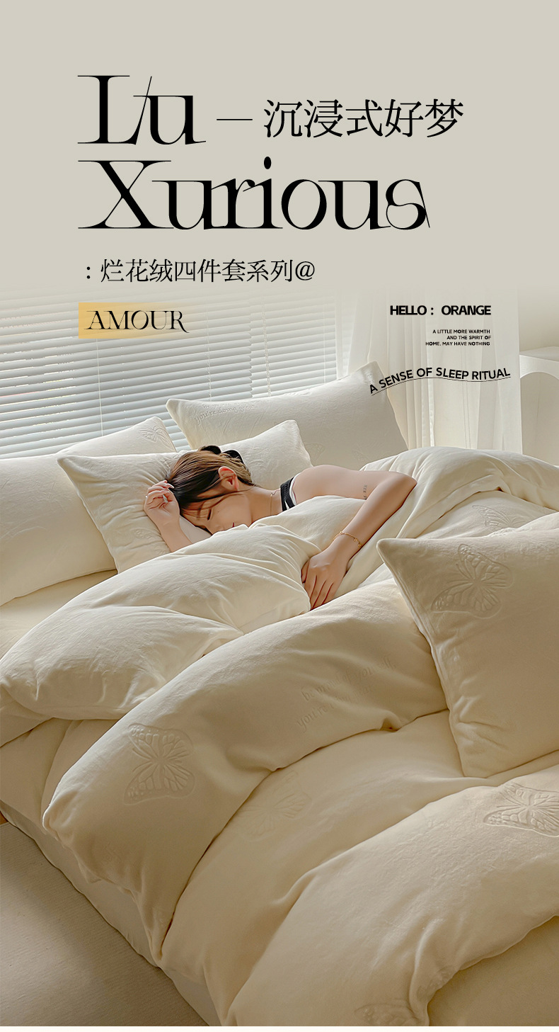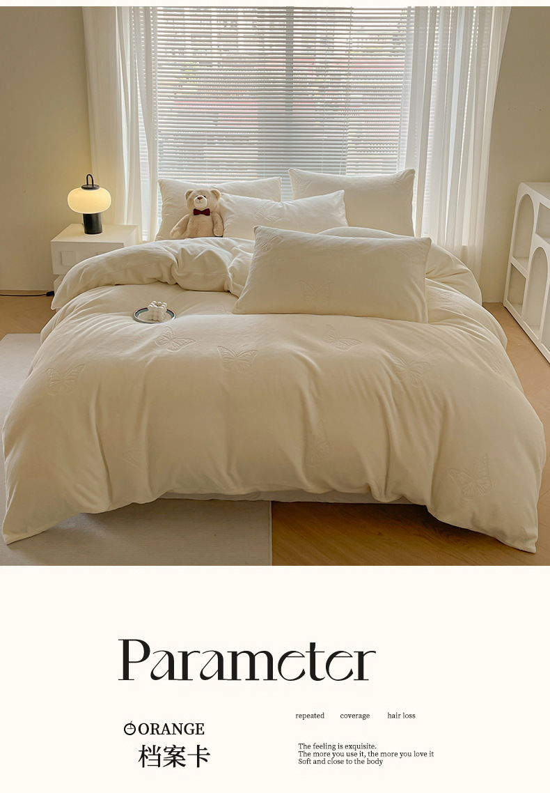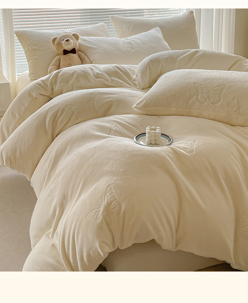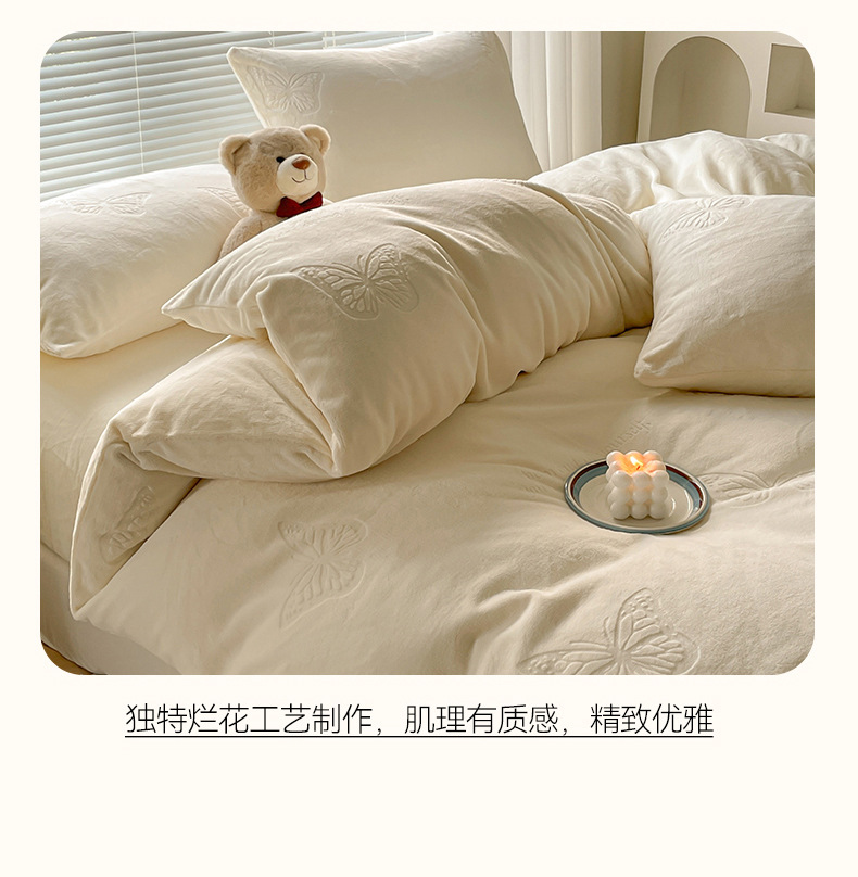 A clase de lujo ligero europeo de invierno cálido de seda de cuatro piezas con seda de coral gruesa cubierta de sábanas sensación de gato