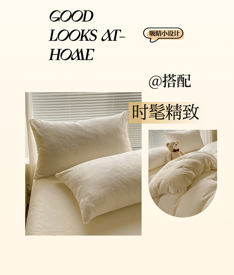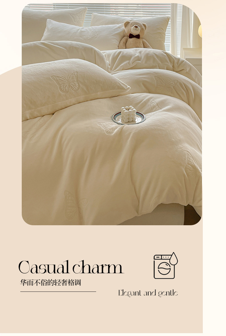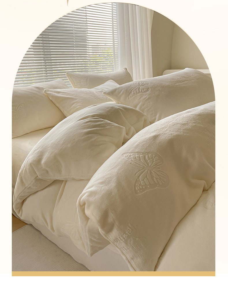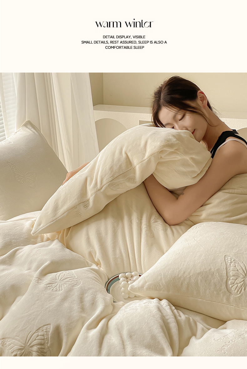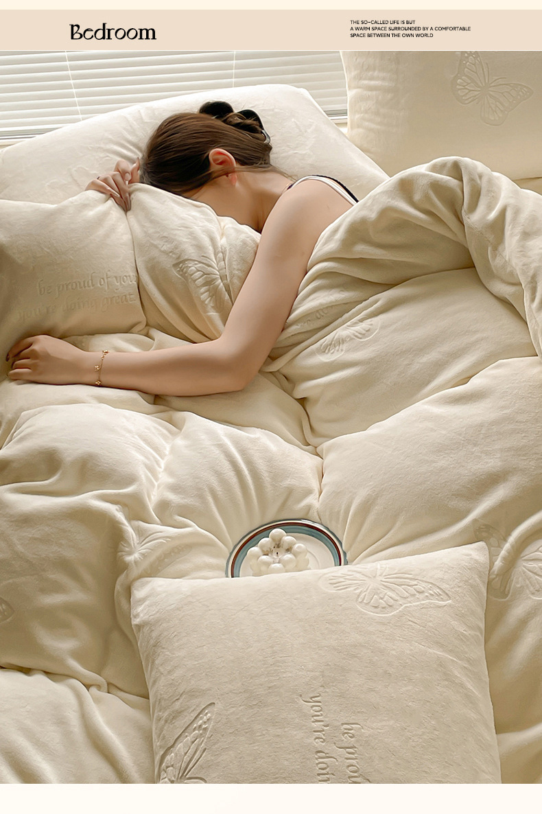 A clase de lujo ligero europeo de invierno cálido de seda de cuatro piezas con seda de coral gruesa cubierta de sábanas sensación de gato
