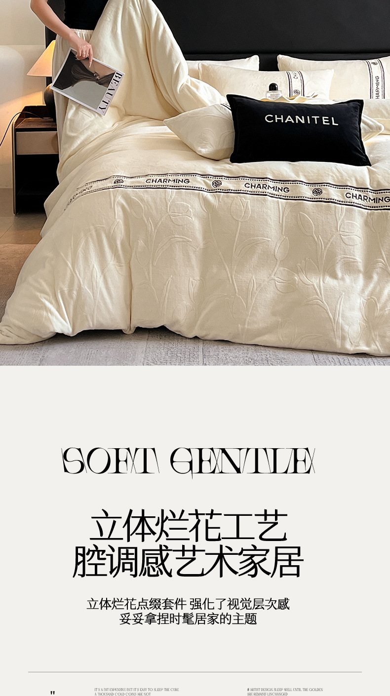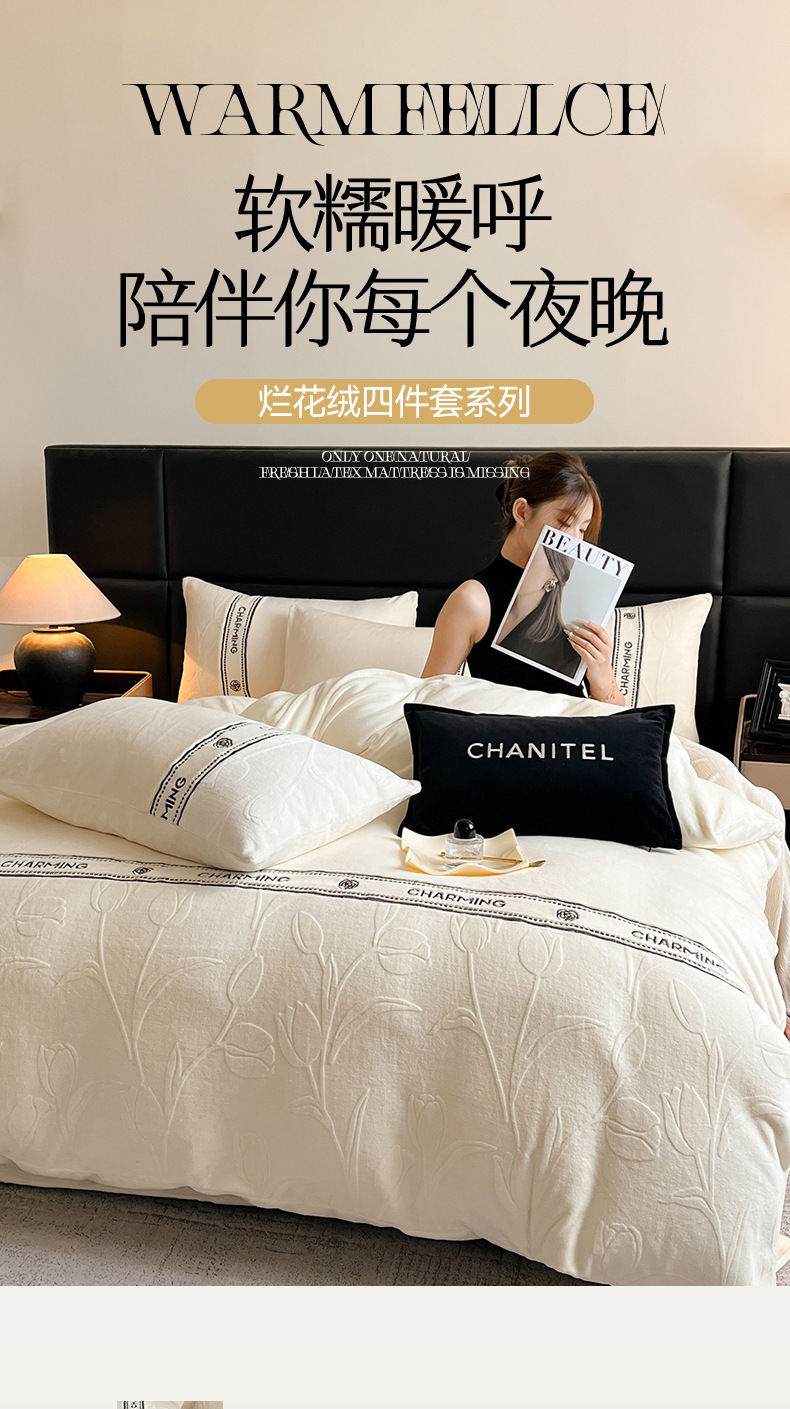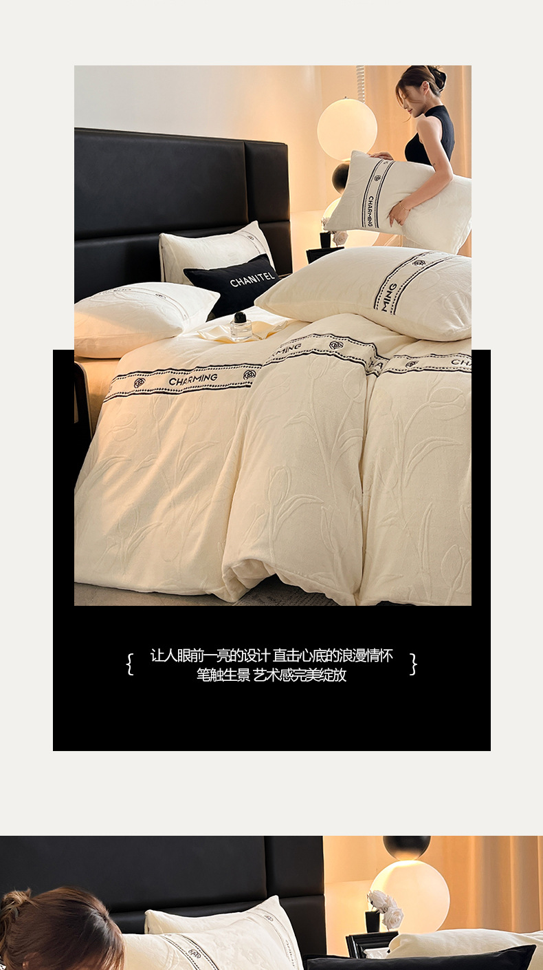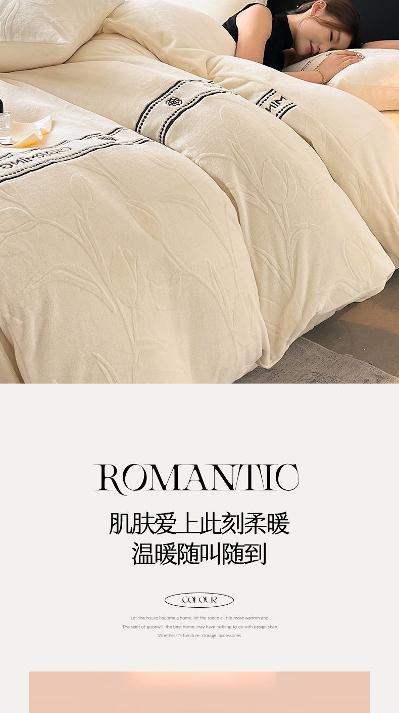 Súper cálido leche de seda de cuatro piezas con sábanas antiestáticas gruesas cubiertas de cama de lujo ligero de alto nivel de invierno y otoño