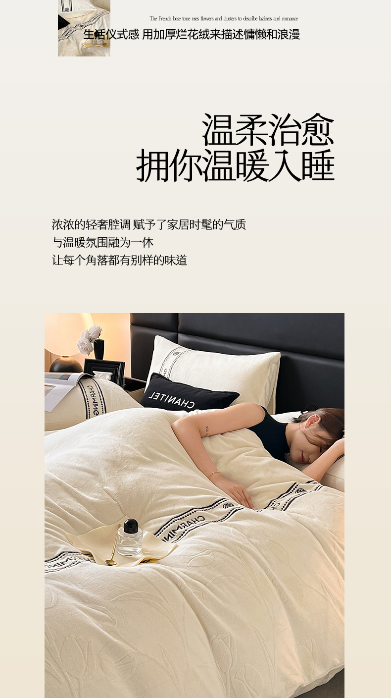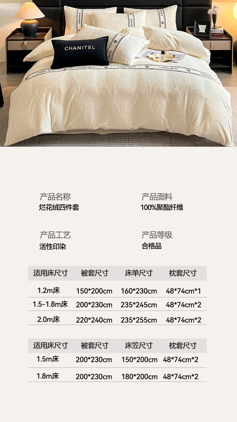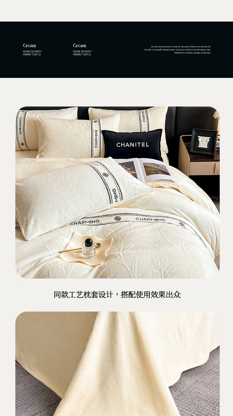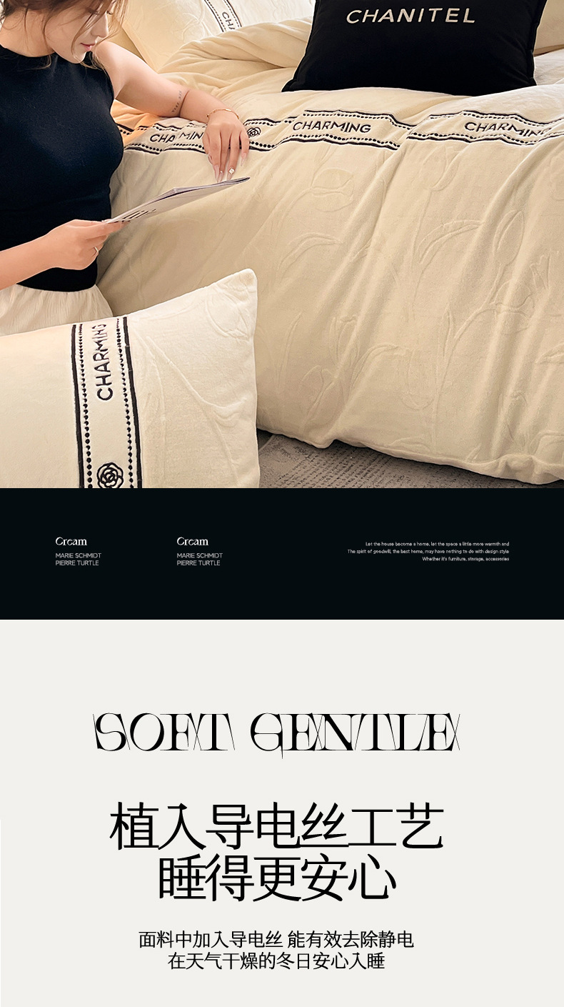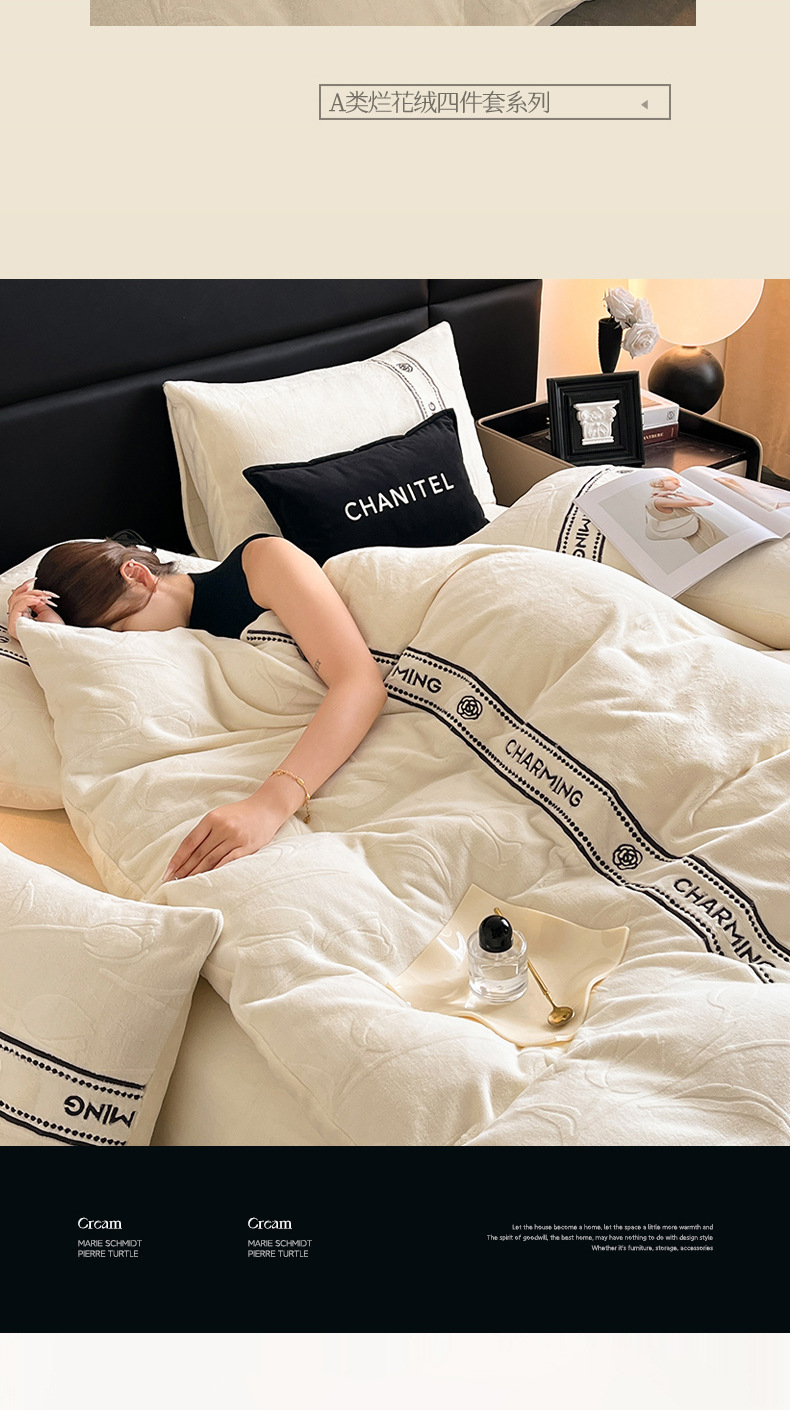 Súper cálido leche de seda de cuatro piezas con sábanas antiestáticas gruesas cubiertas de cama de lujo ligero de alto nivel de invierno y otoño