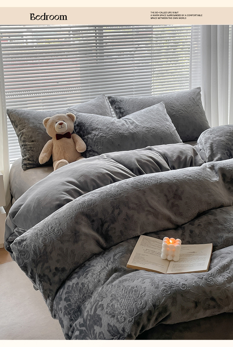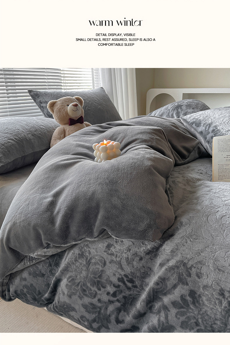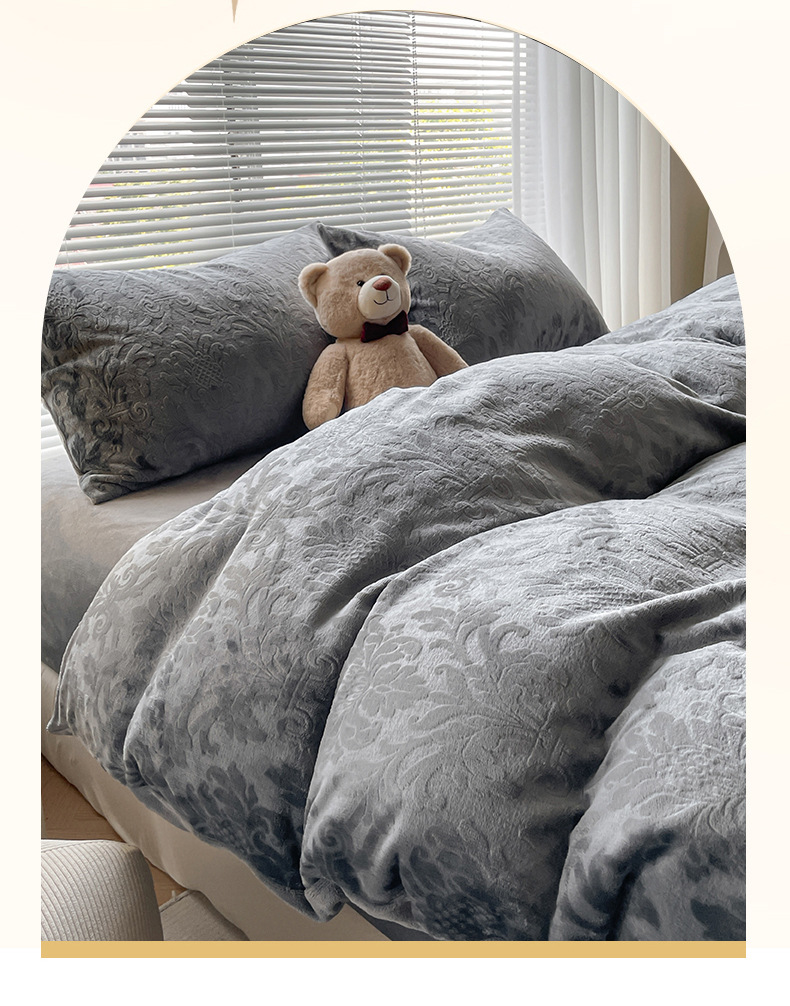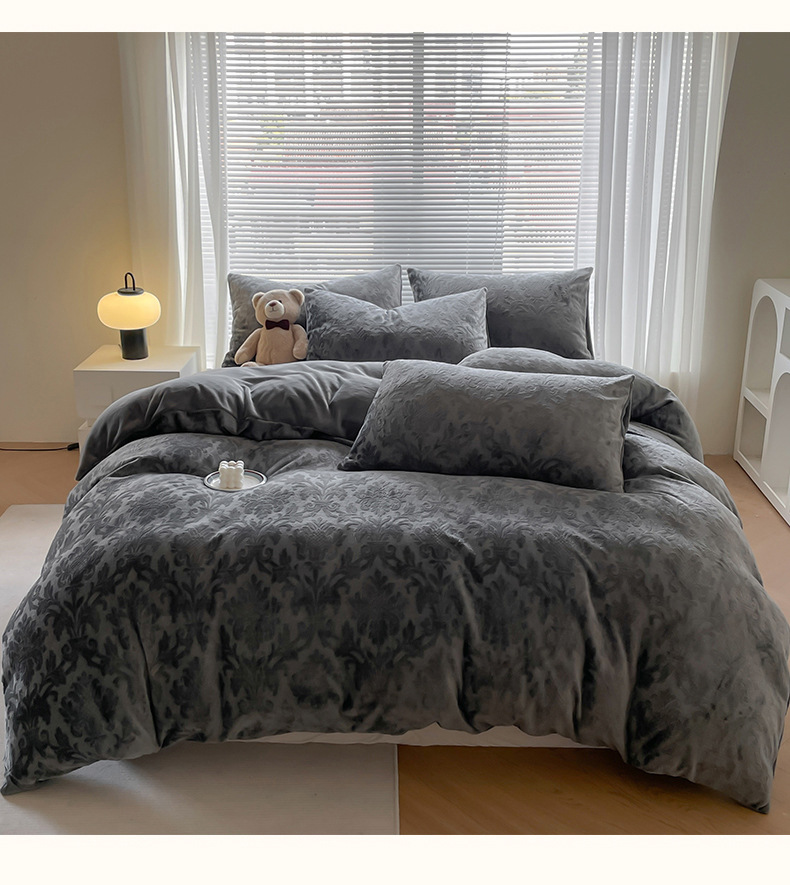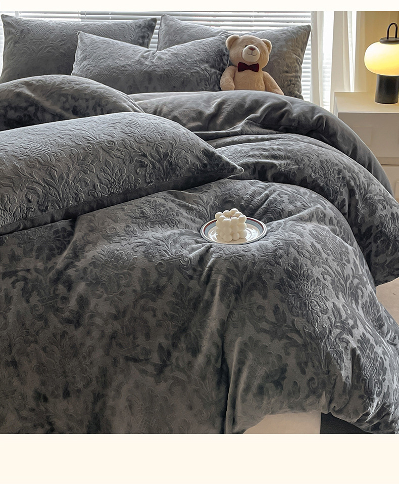 Otoño y invierno tallado leche de seda cama de cuatro piezas con sábanas de lana de coral cubierta de cama de tres piezas 4