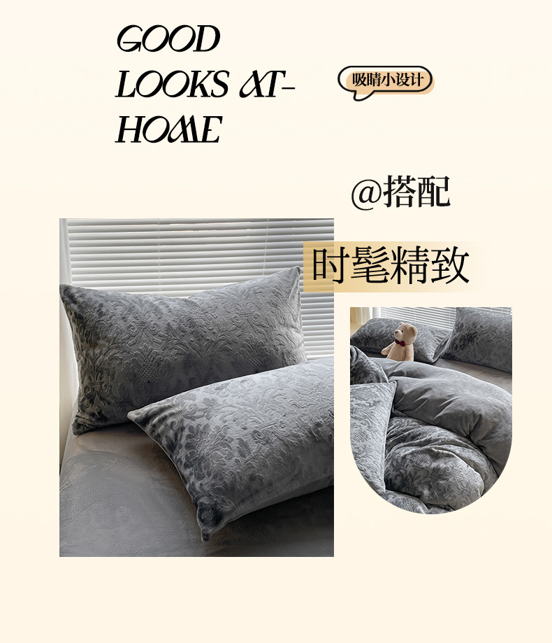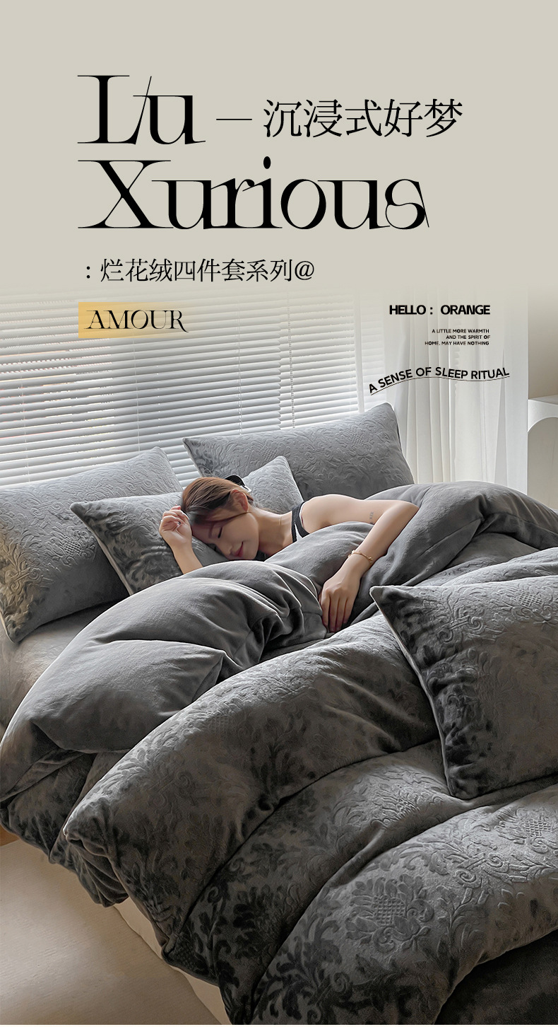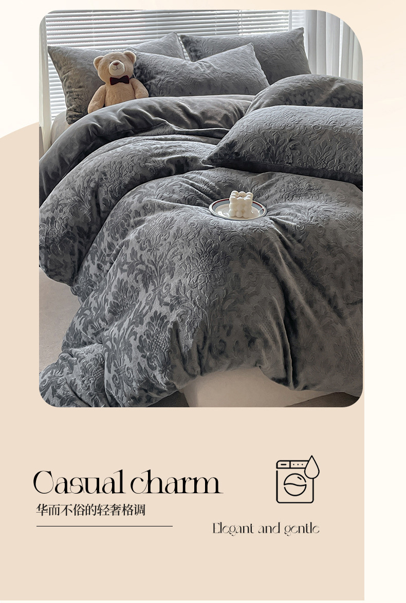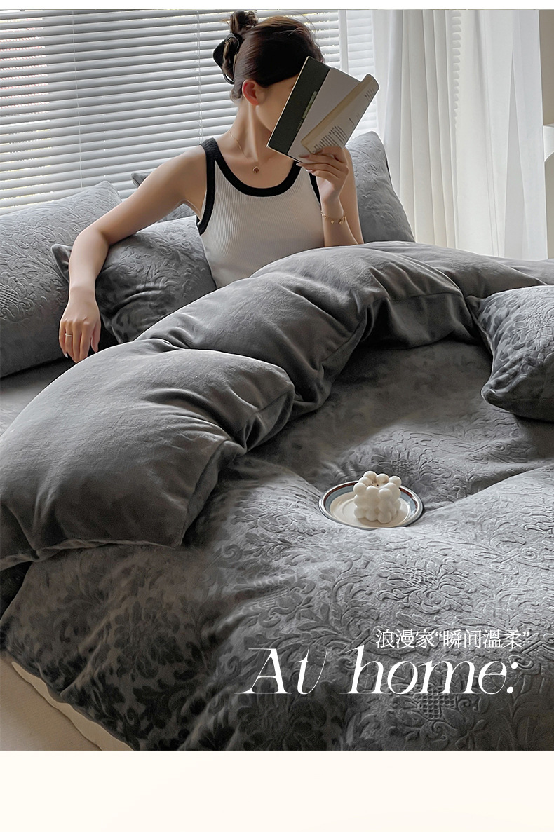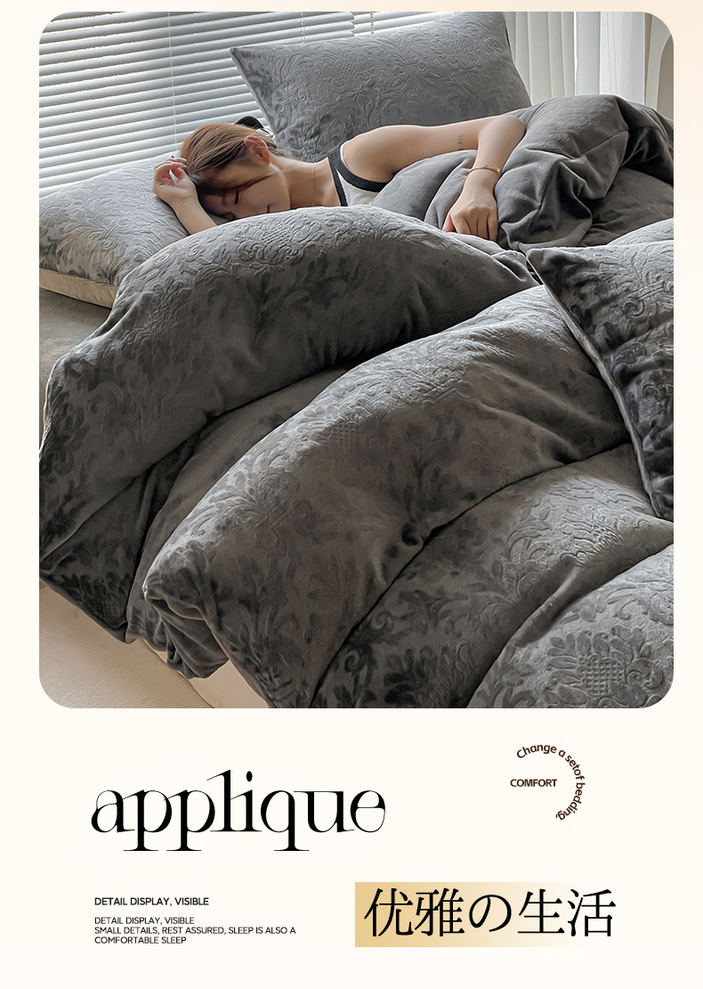 Otoño y invierno tallado leche de seda cama de cuatro piezas con sábanas de lana de coral cubierta de cama de tres piezas 4