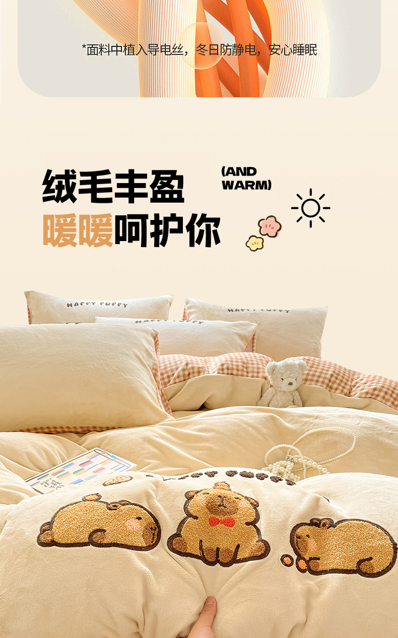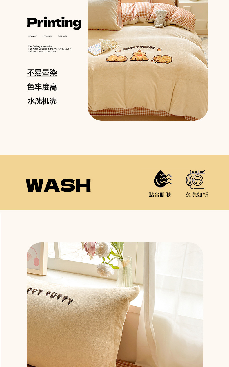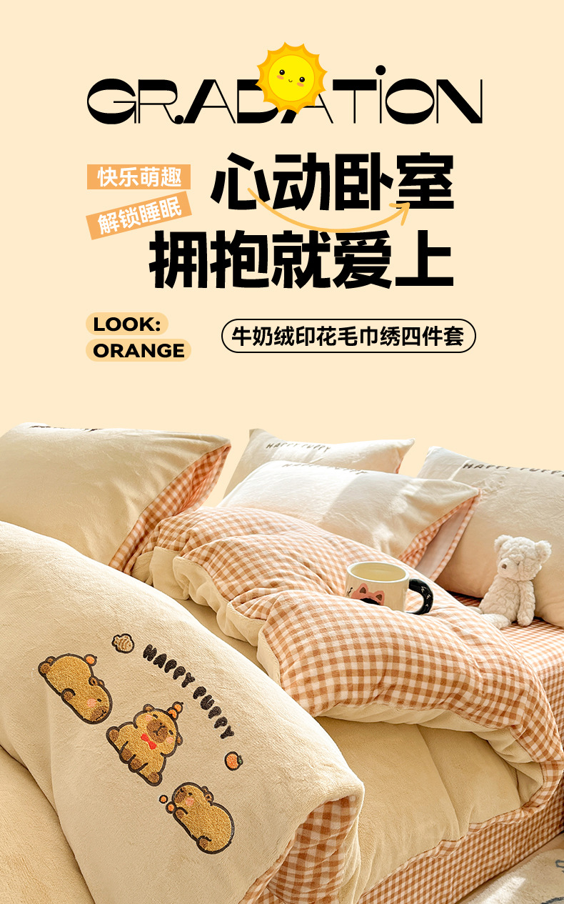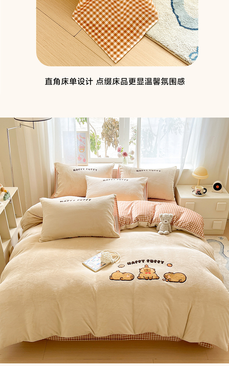 Toallas de dibujos animados bordadas de leche de seda cama de cuatro piezas doble edredón cubierta sábanas de dormitorio de estudiantes de tres piezas de ropa de cama