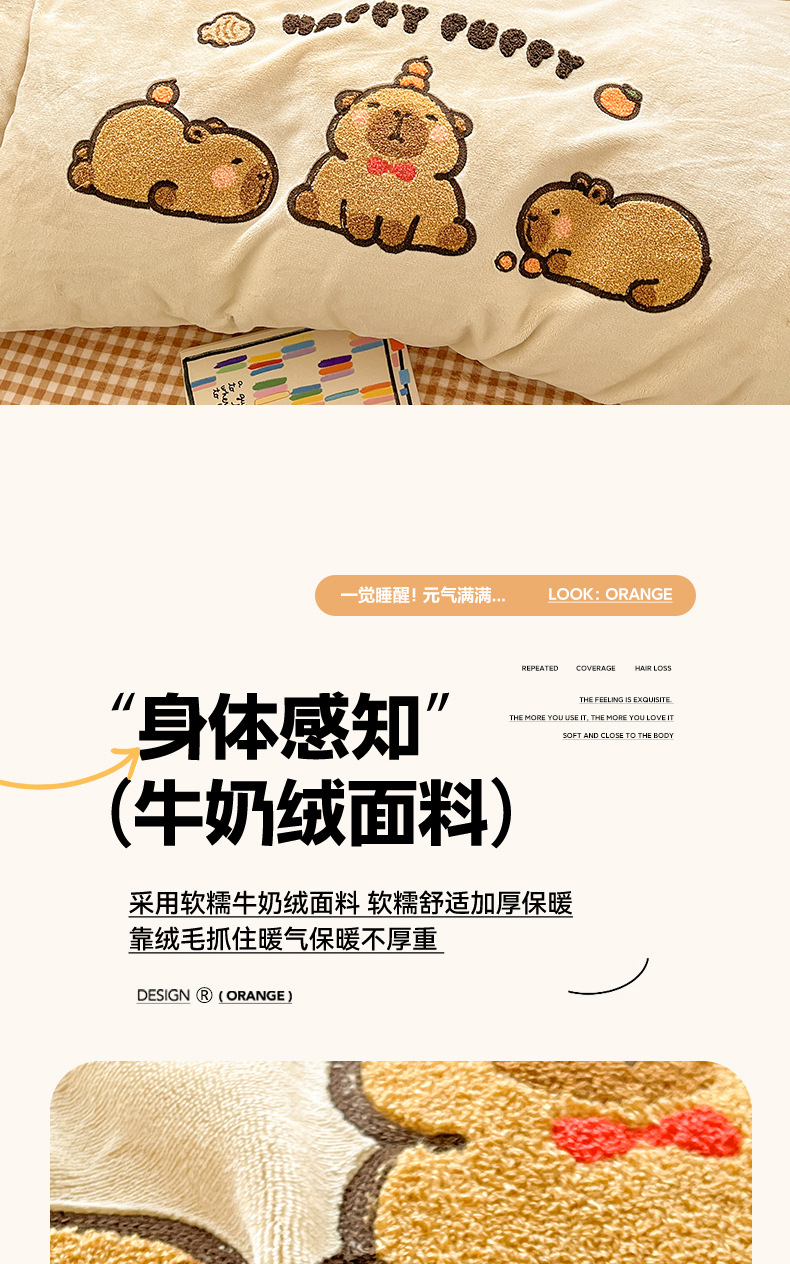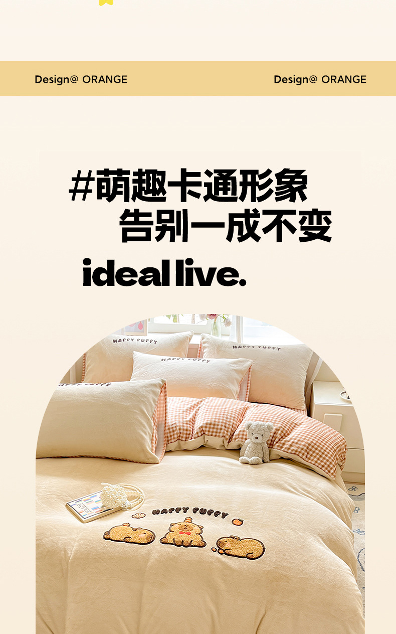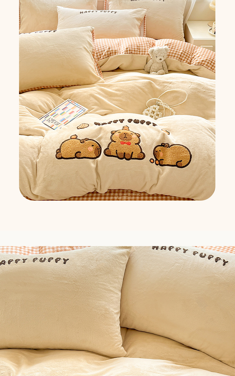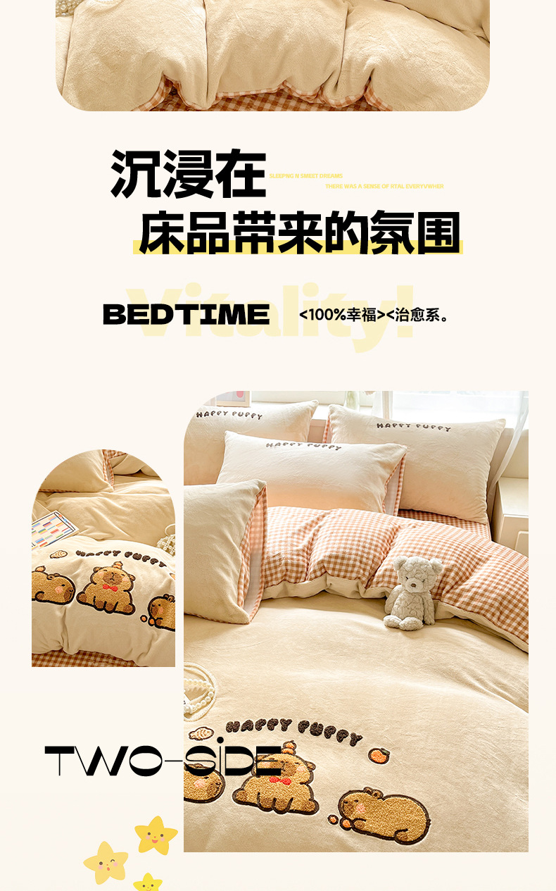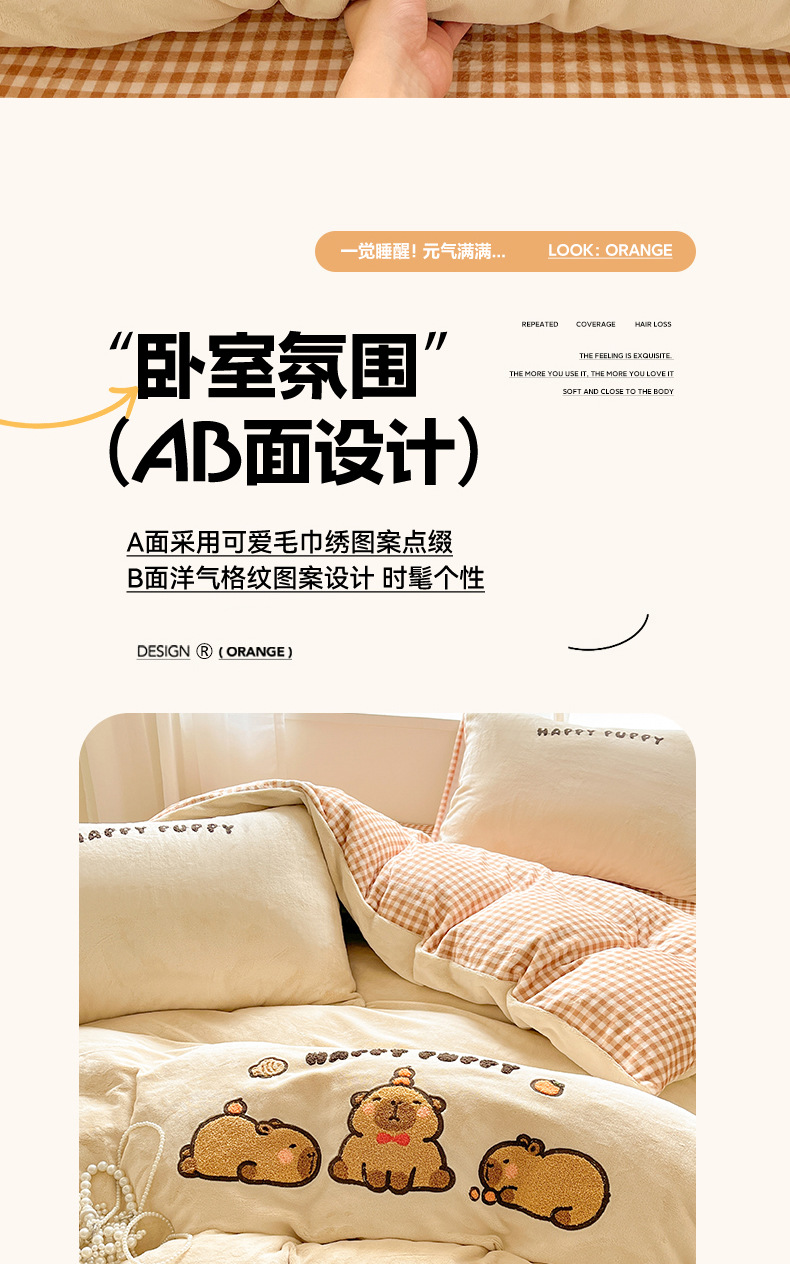 Toallas de dibujos animados bordadas de leche de seda cama de cuatro piezas doble edredón cubierta sábanas de dormitorio de estudiantes de tres piezas de ropa de cama