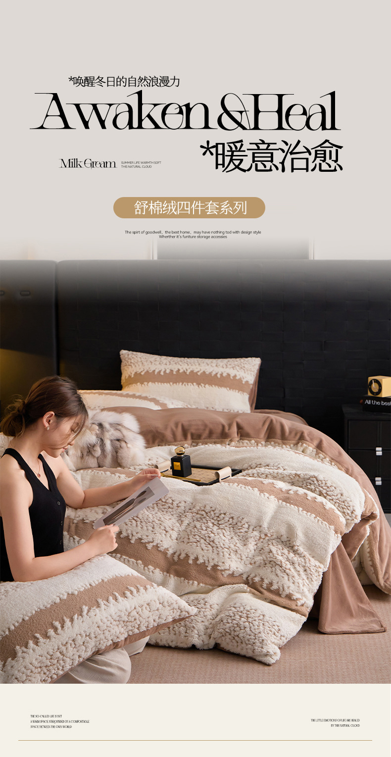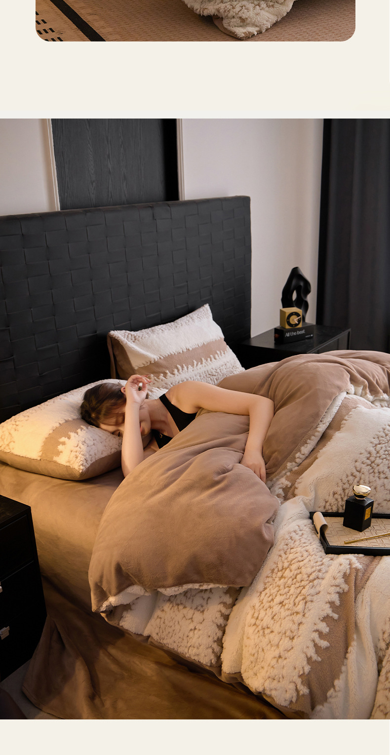 Leche de seda cama de cuatro piezas en invierno grueso 2025 nuevo coral de seda y seda sábanas de dormitorio cubierta de tres piezas
