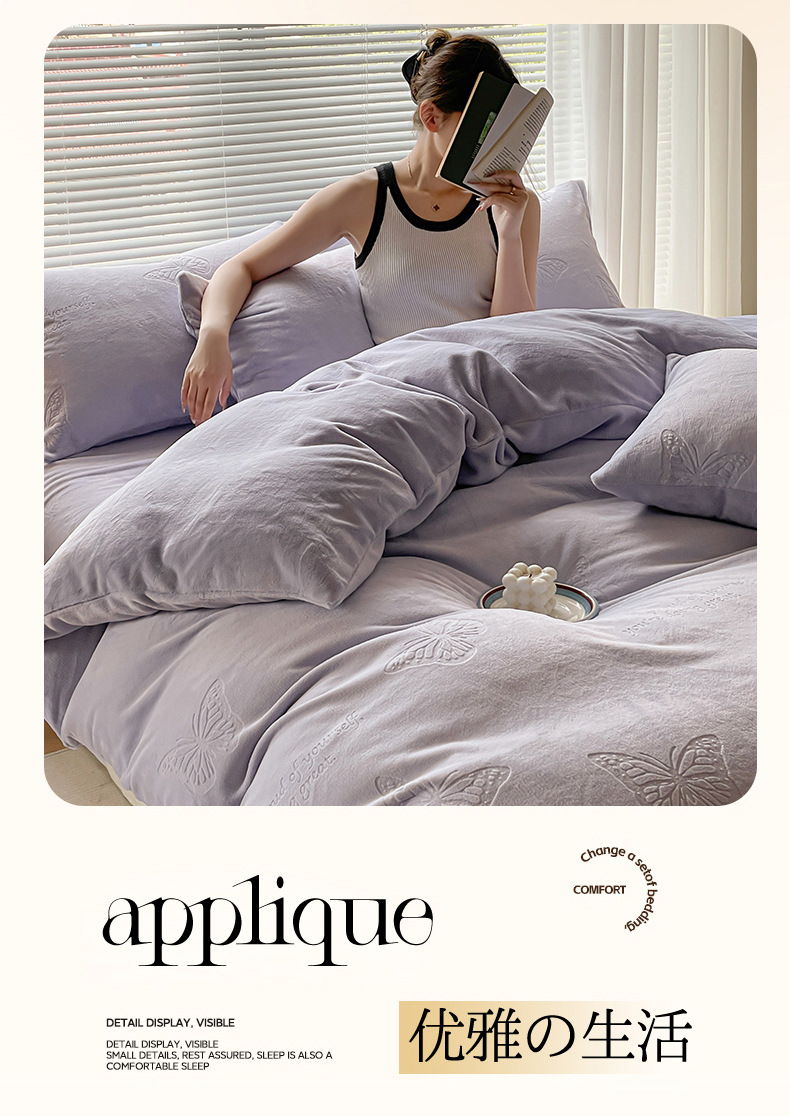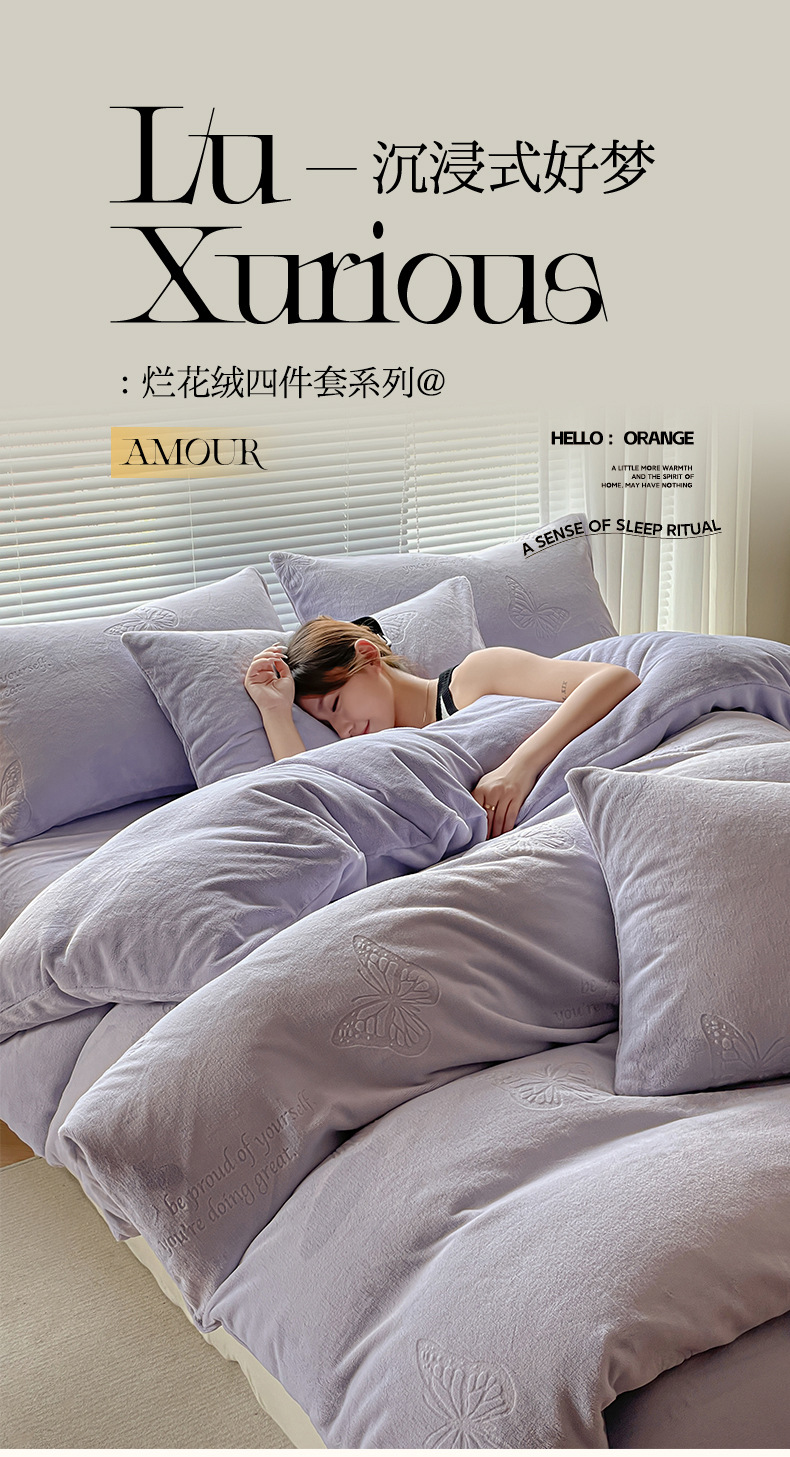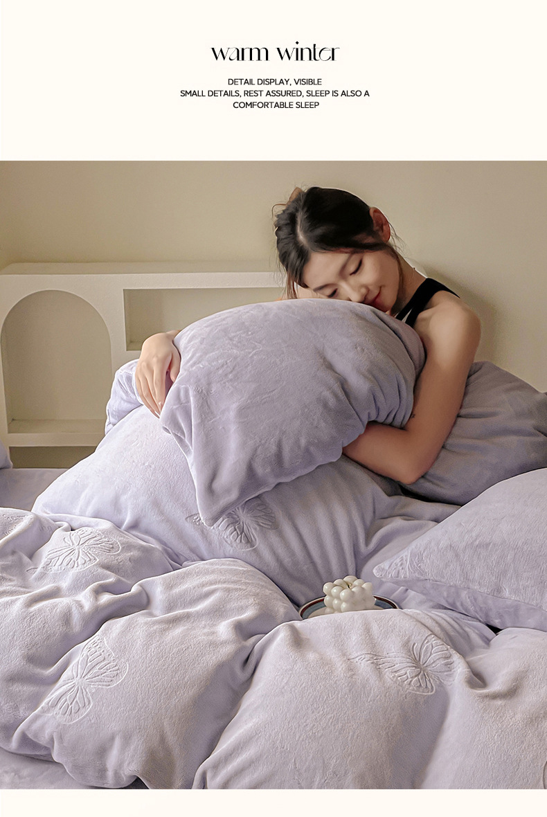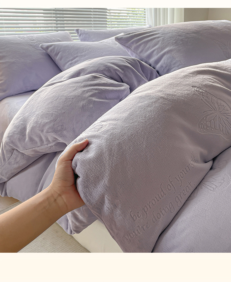 Espesado tallado leche de lana de cuatro piezas set invierno doble edredón cubierta sábanas de lana de coral cama de cama de cama calentamiento