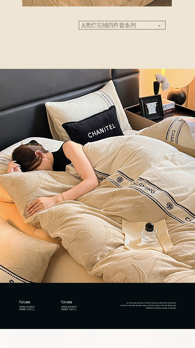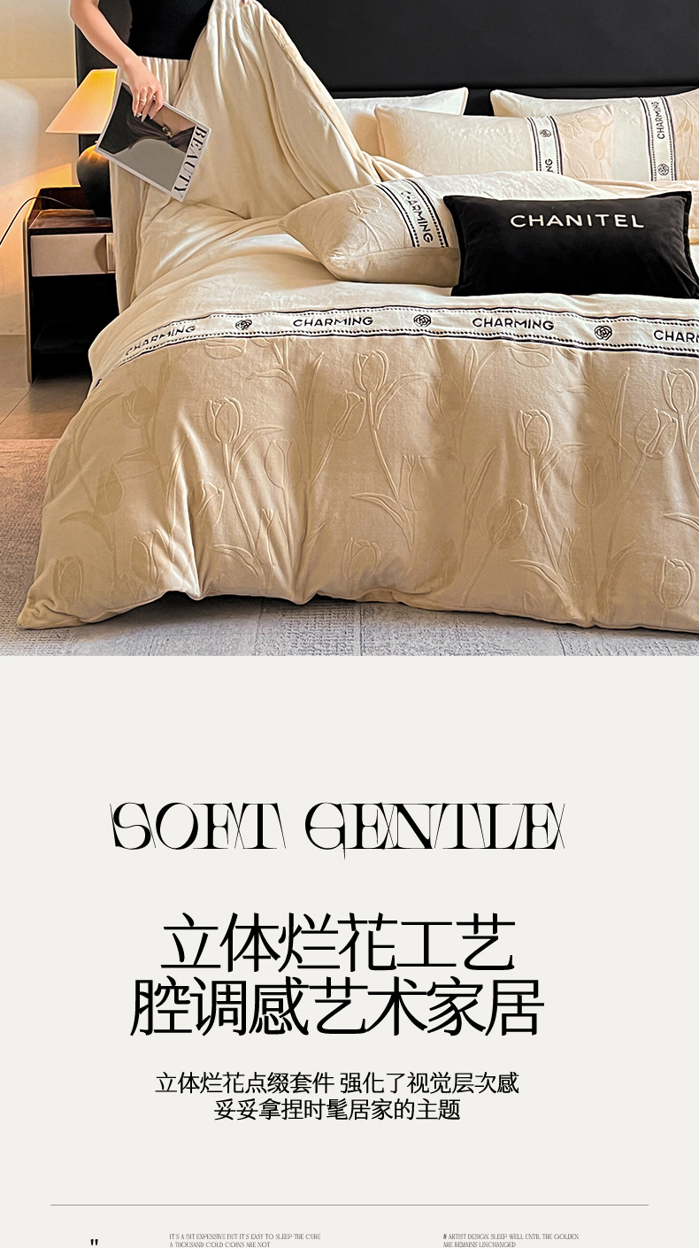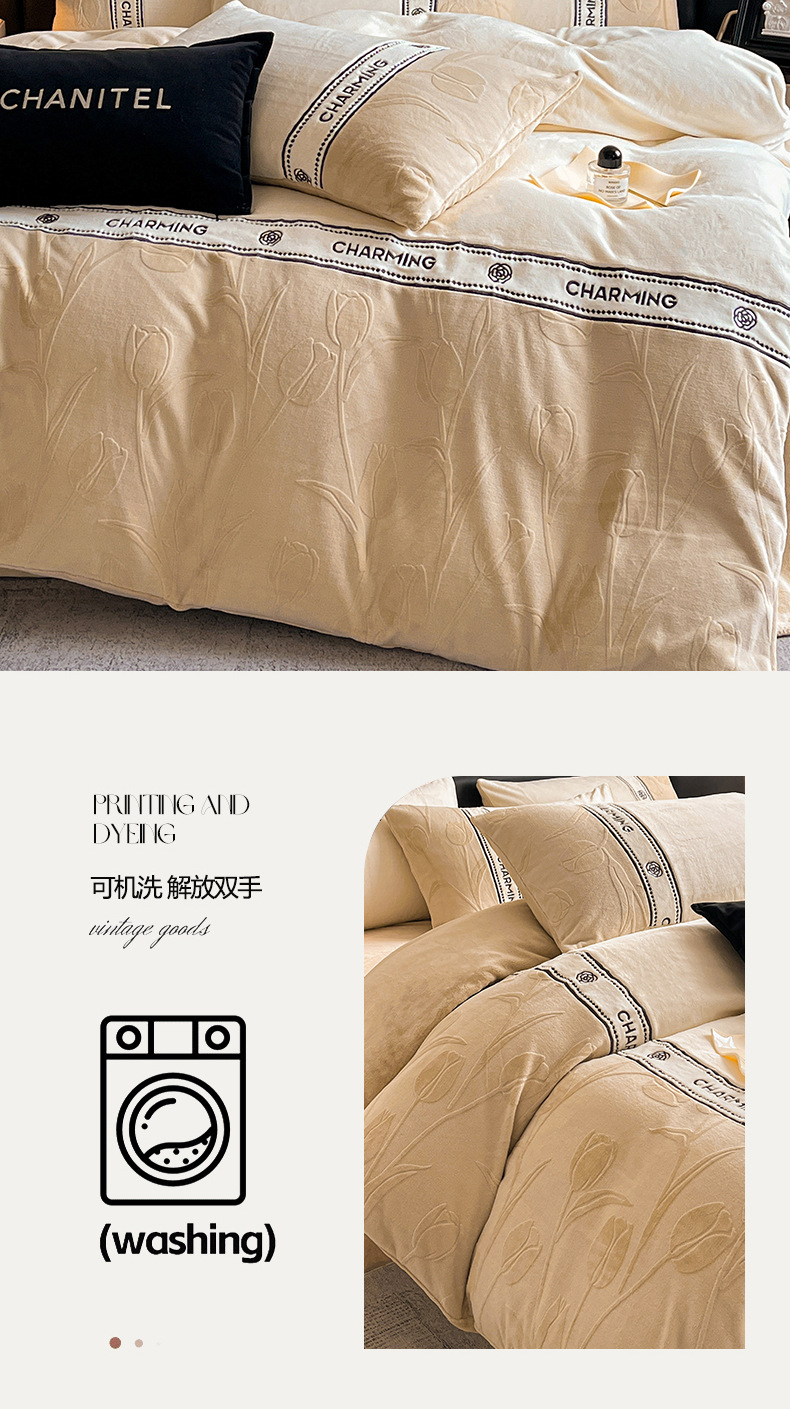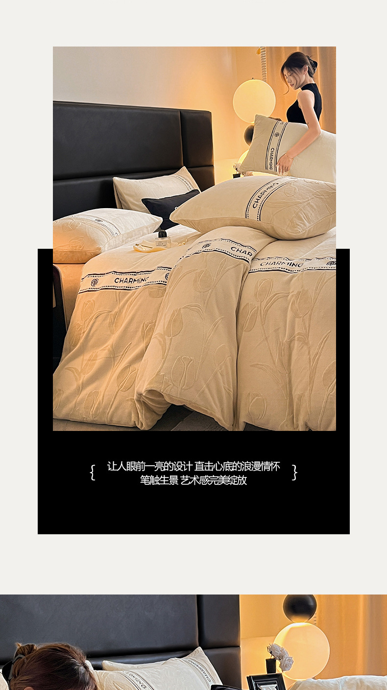 Invierno de alta gama tallado cama de terciopelo conjunto de cuatro piezas 2025 nuevo terciopelo de leche grueso coral sábanas de terciopelo cubierta