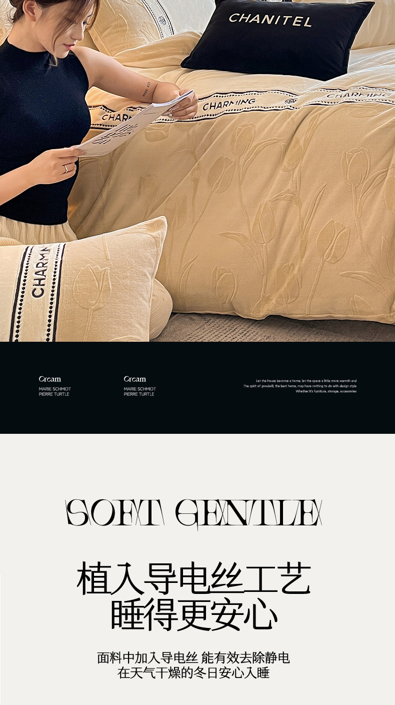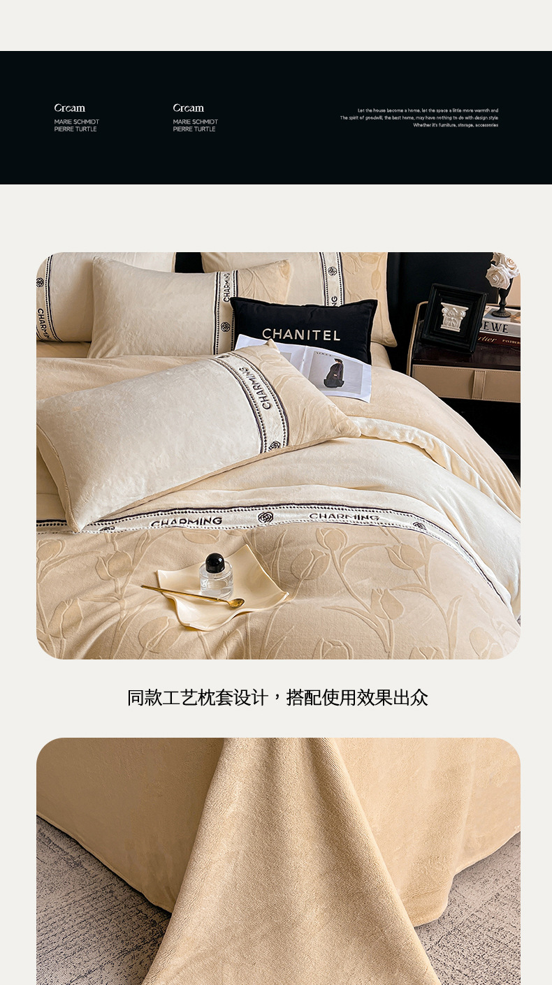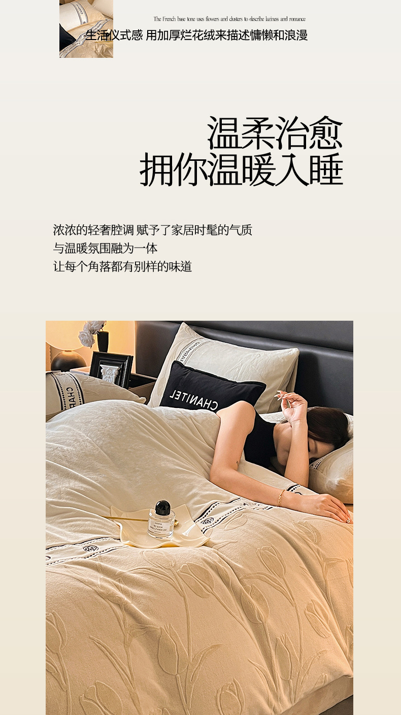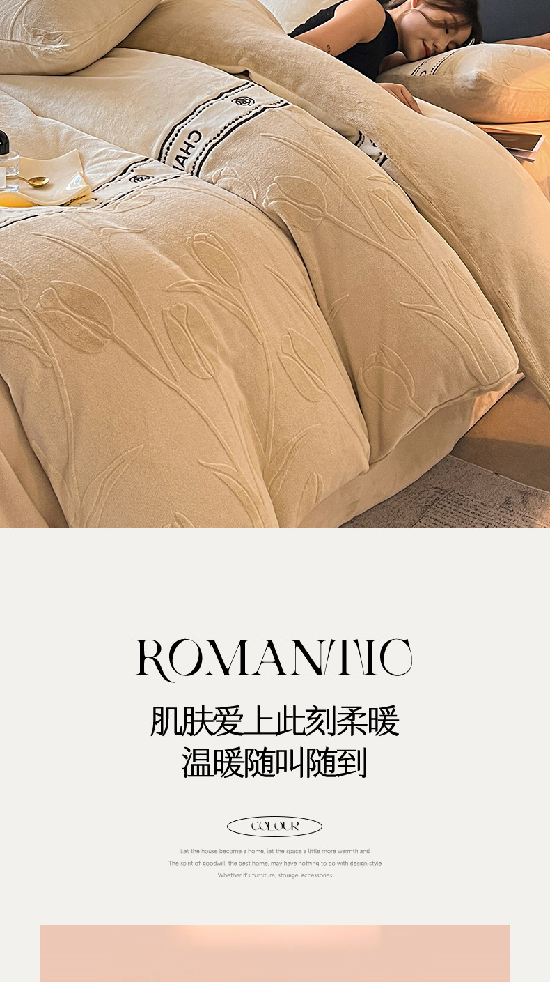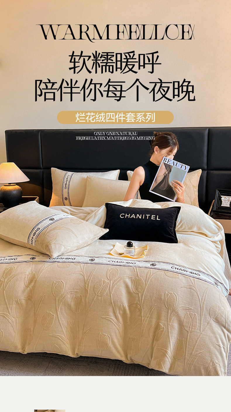 Invierno de alta gama tallado cama de terciopelo conjunto de cuatro piezas 2025 nuevo terciopelo de leche grueso coral sábanas de terciopelo cubierta