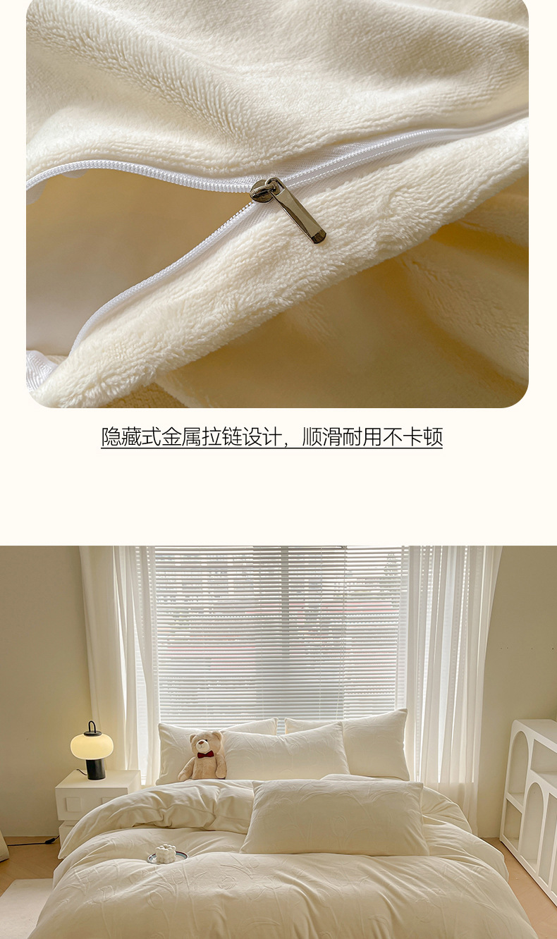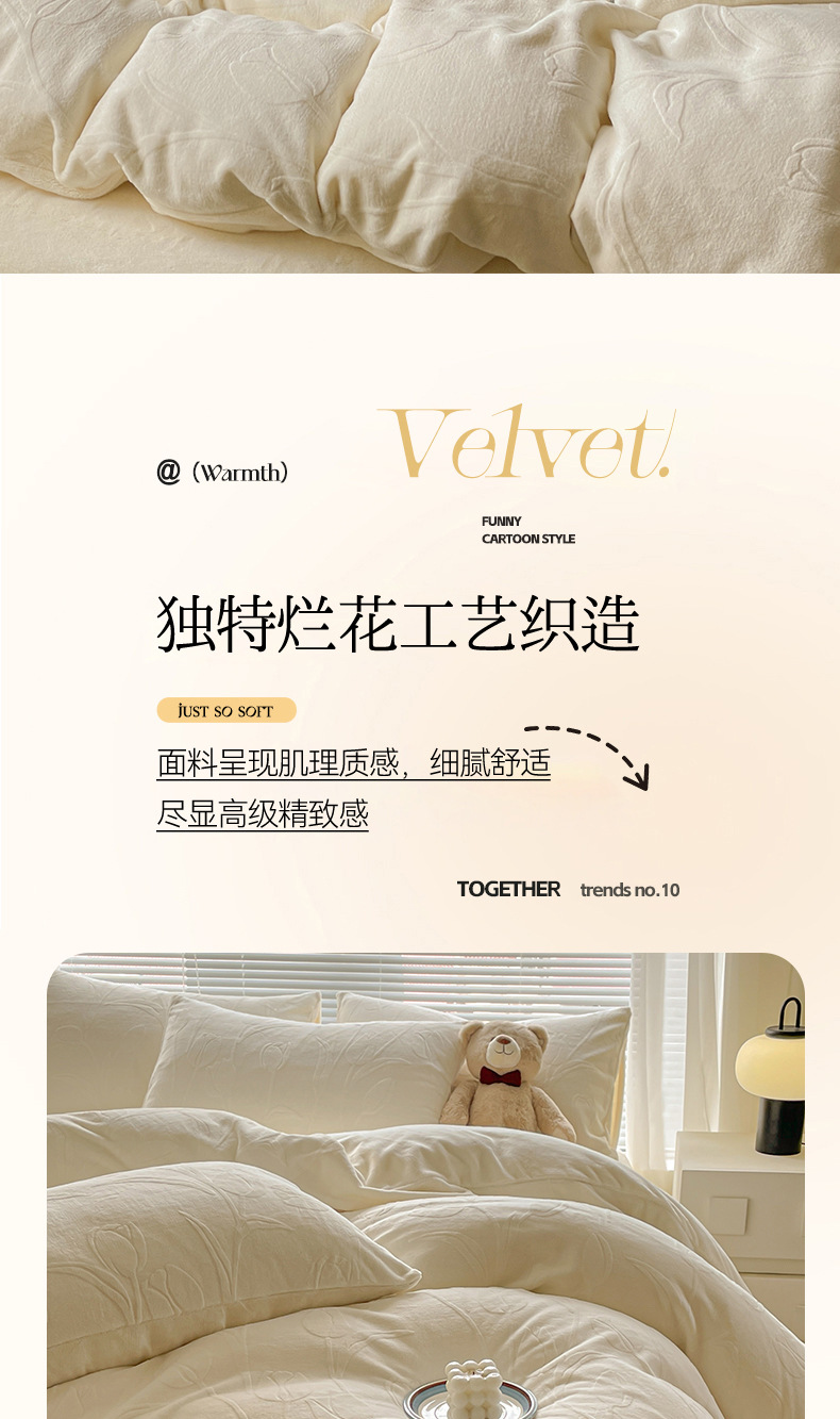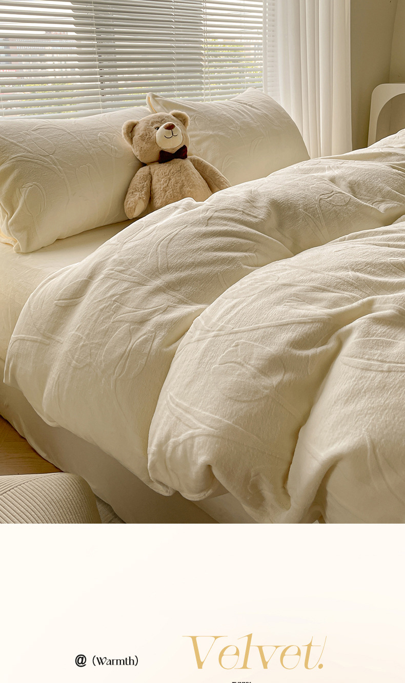 Gato sensación espesa de seda de cuatro piezas de seda de coral cálida escultura sábanas de cama cama de lana de invierno