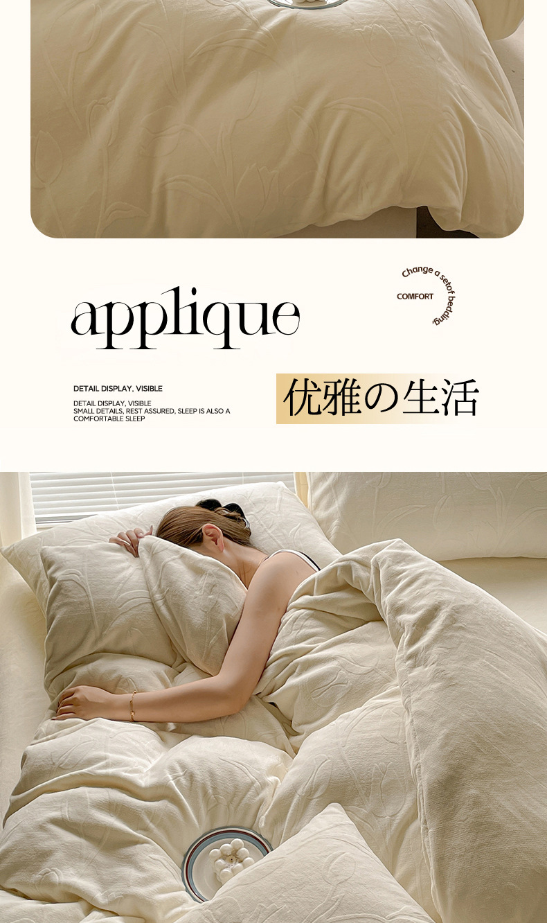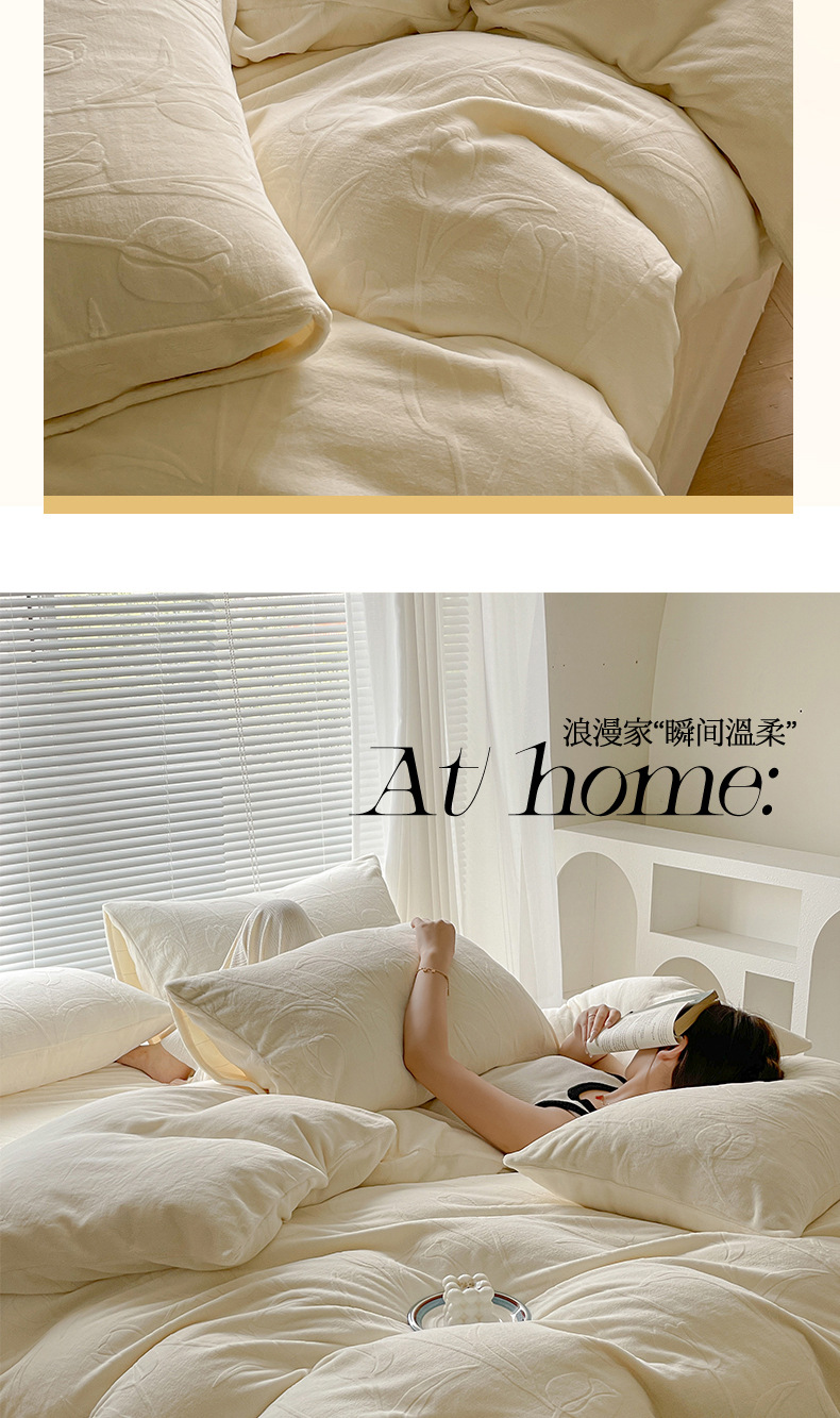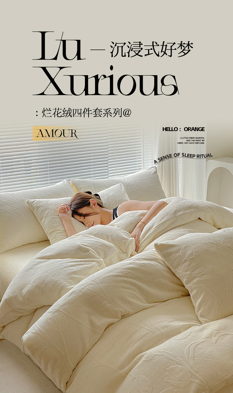 Gato sensación espesa de seda de cuatro piezas de seda de coral cálida escultura sábanas de cama cama de lana de invierno