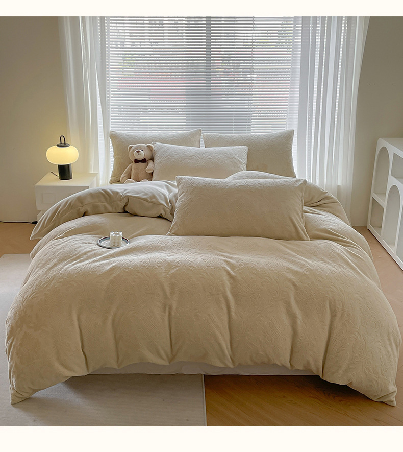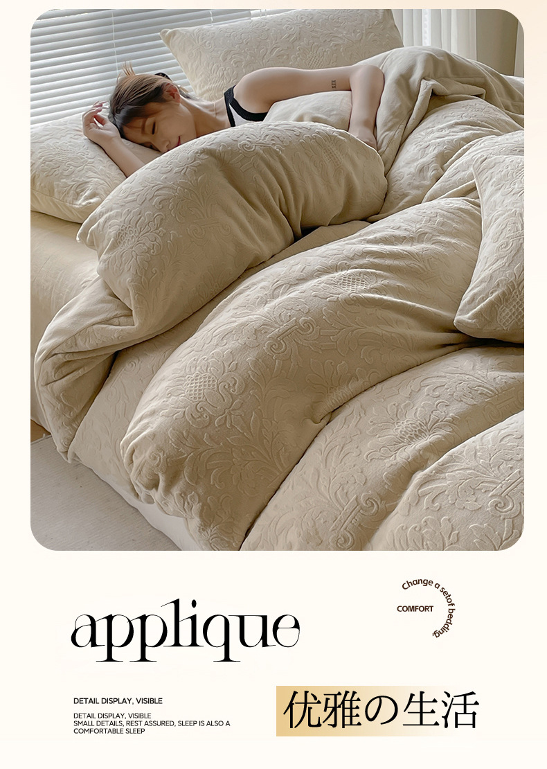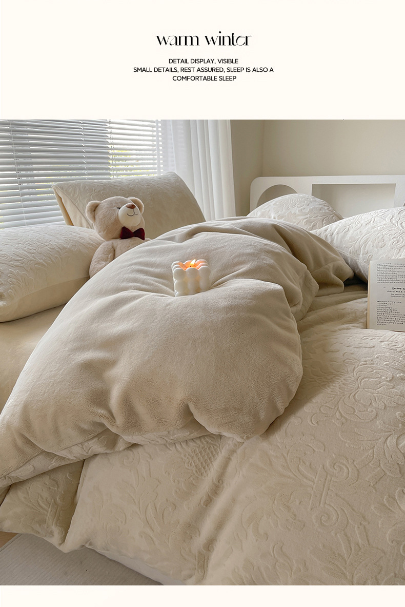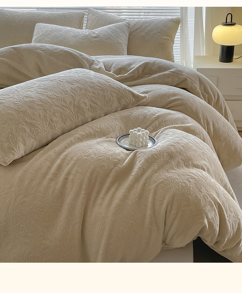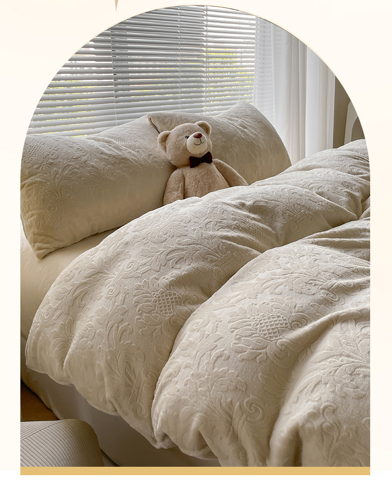 Una clase de flores podridas leche de lana de cama de cuatro piezas de invierno tallado sábanas de franela de coral cubierta de colcha de tres piezas 4