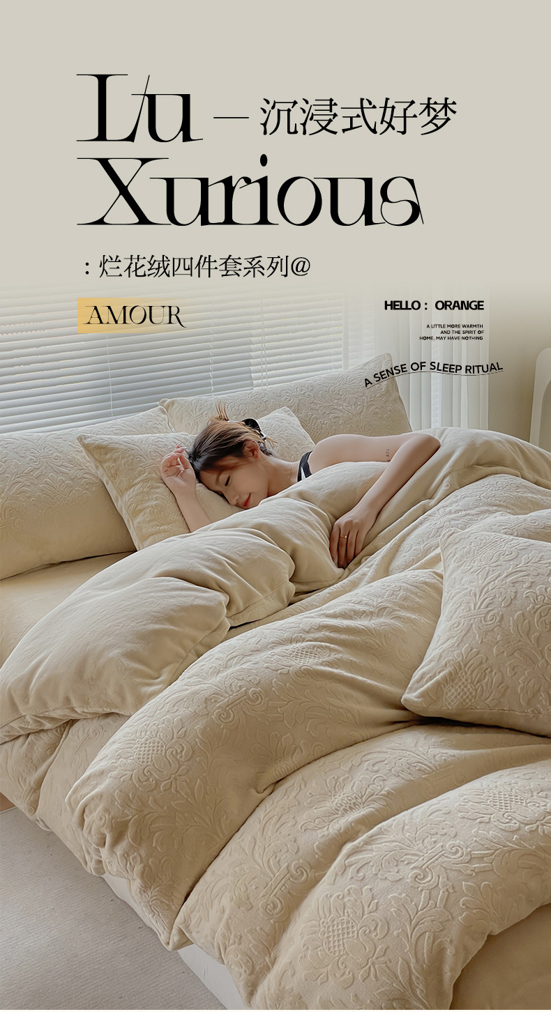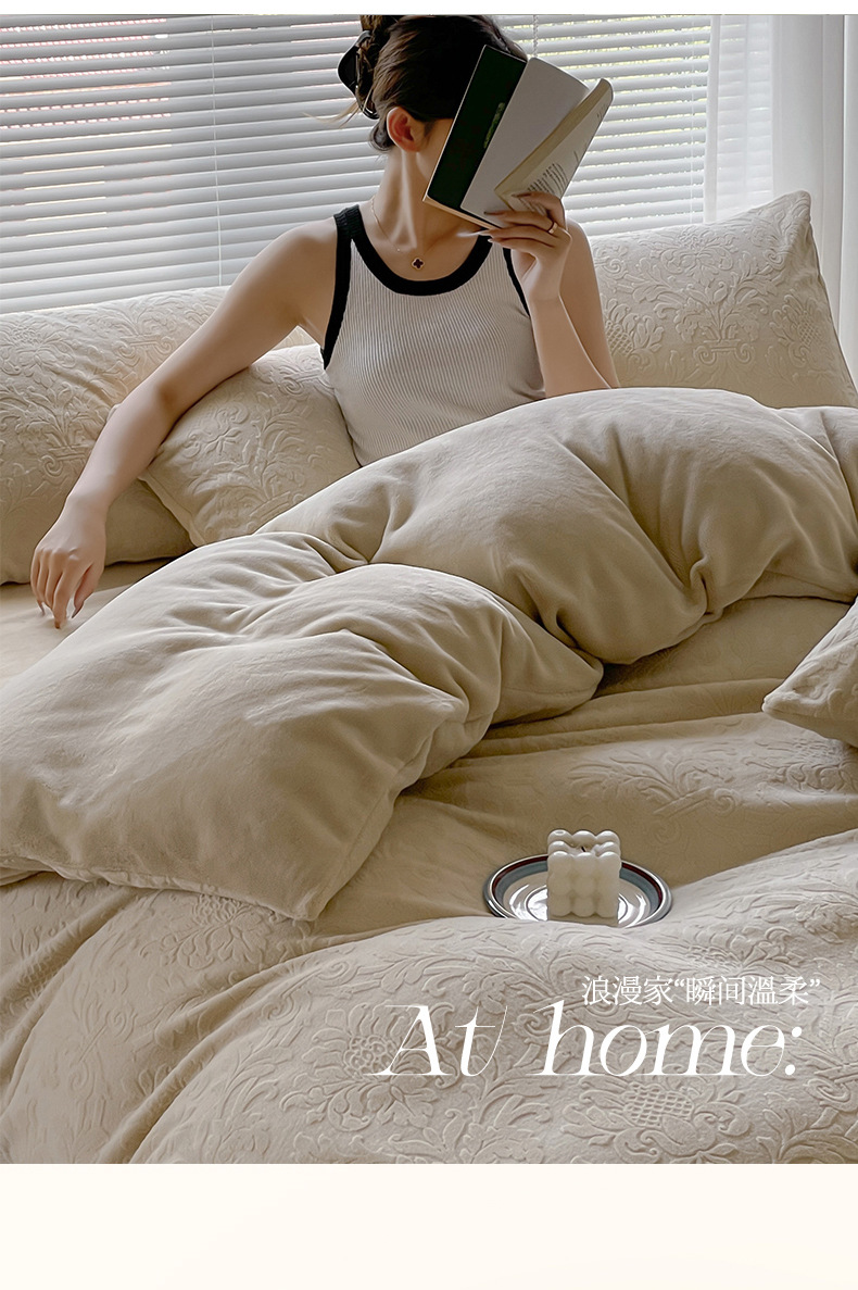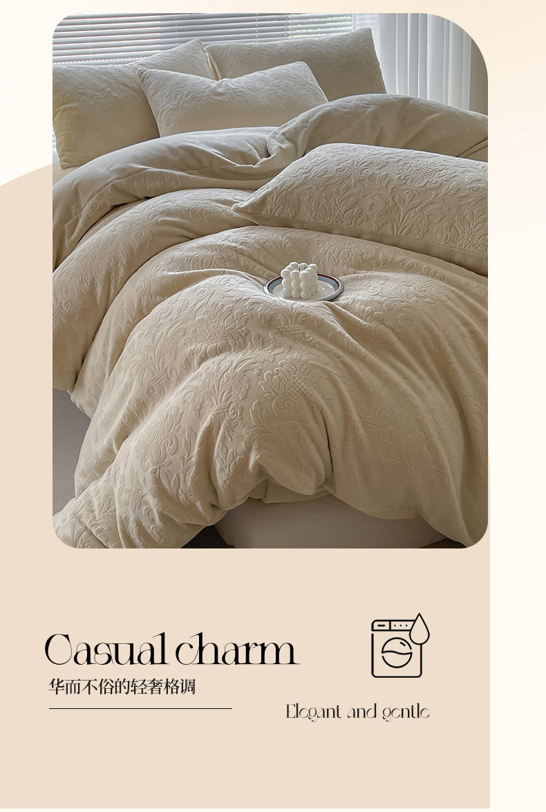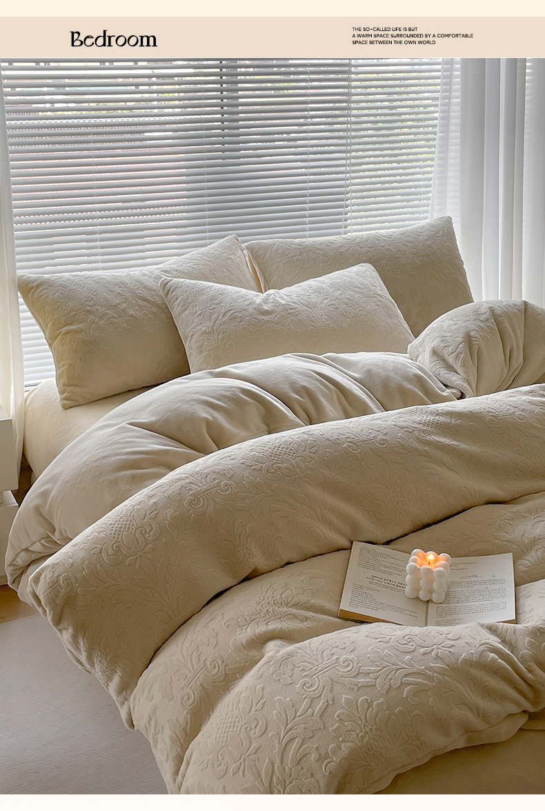 Una clase de flores podridas leche de lana de cama de cuatro piezas de invierno tallado sábanas de franela de coral cubierta de colcha de tres piezas 4