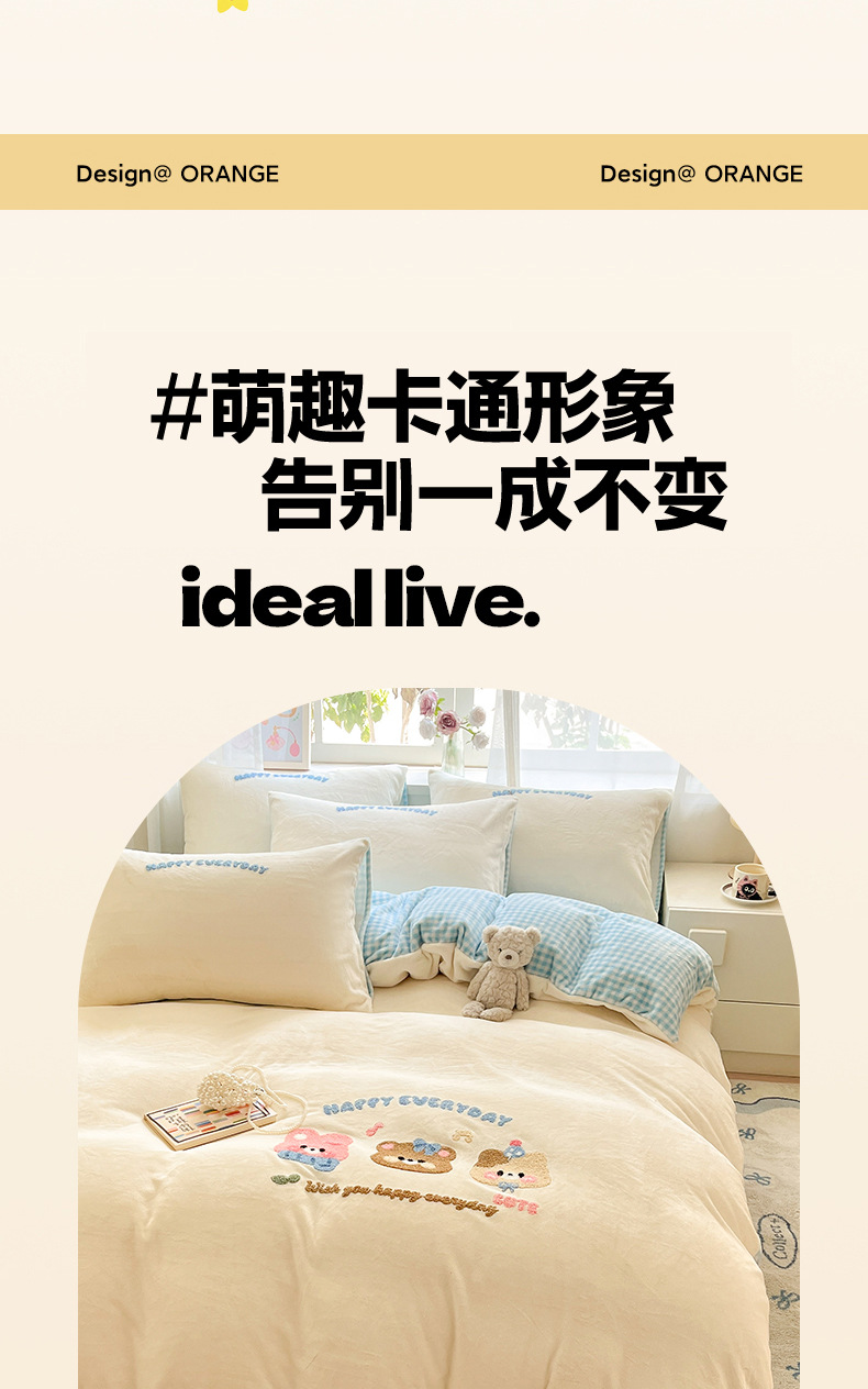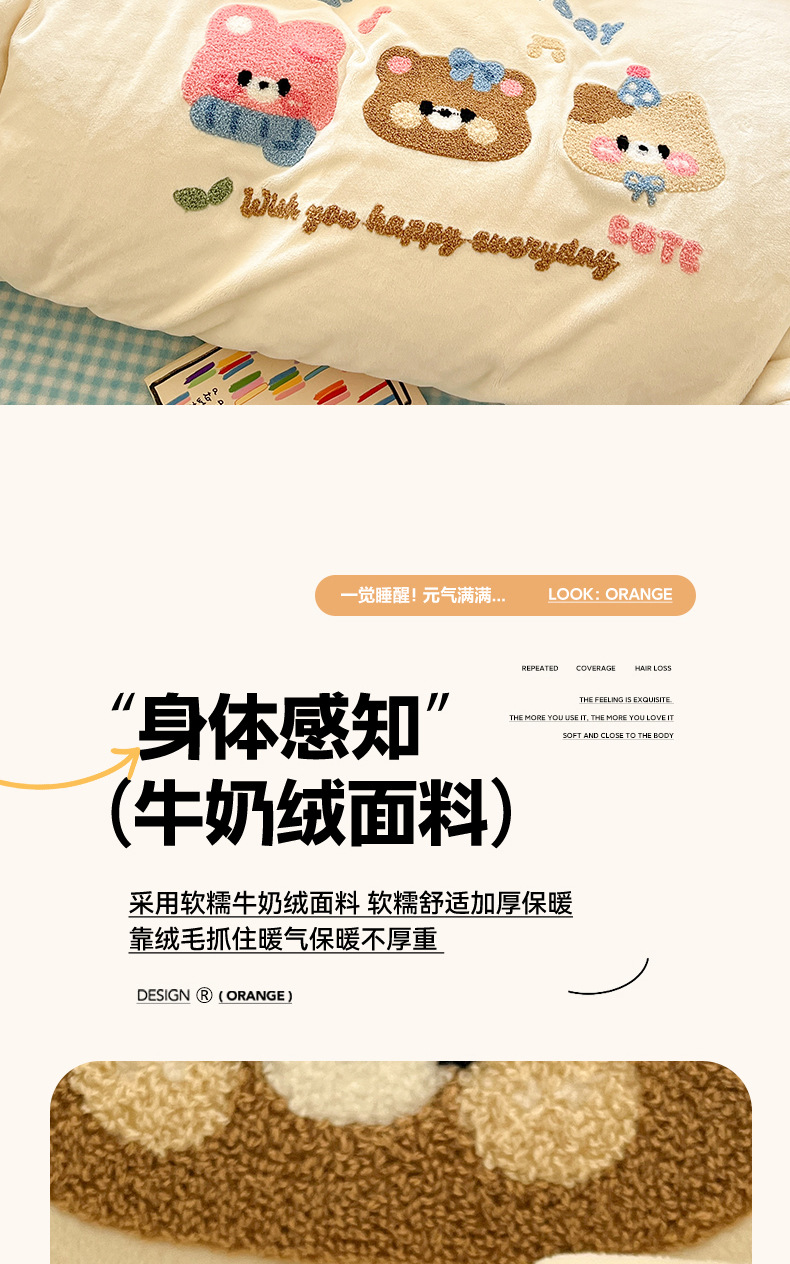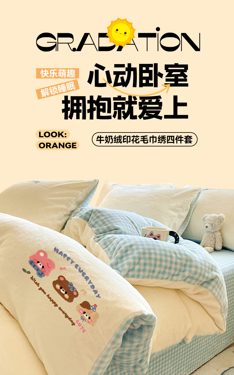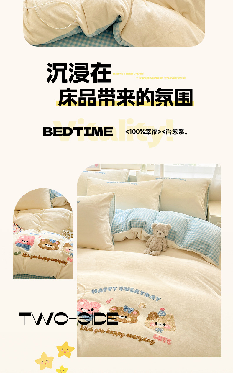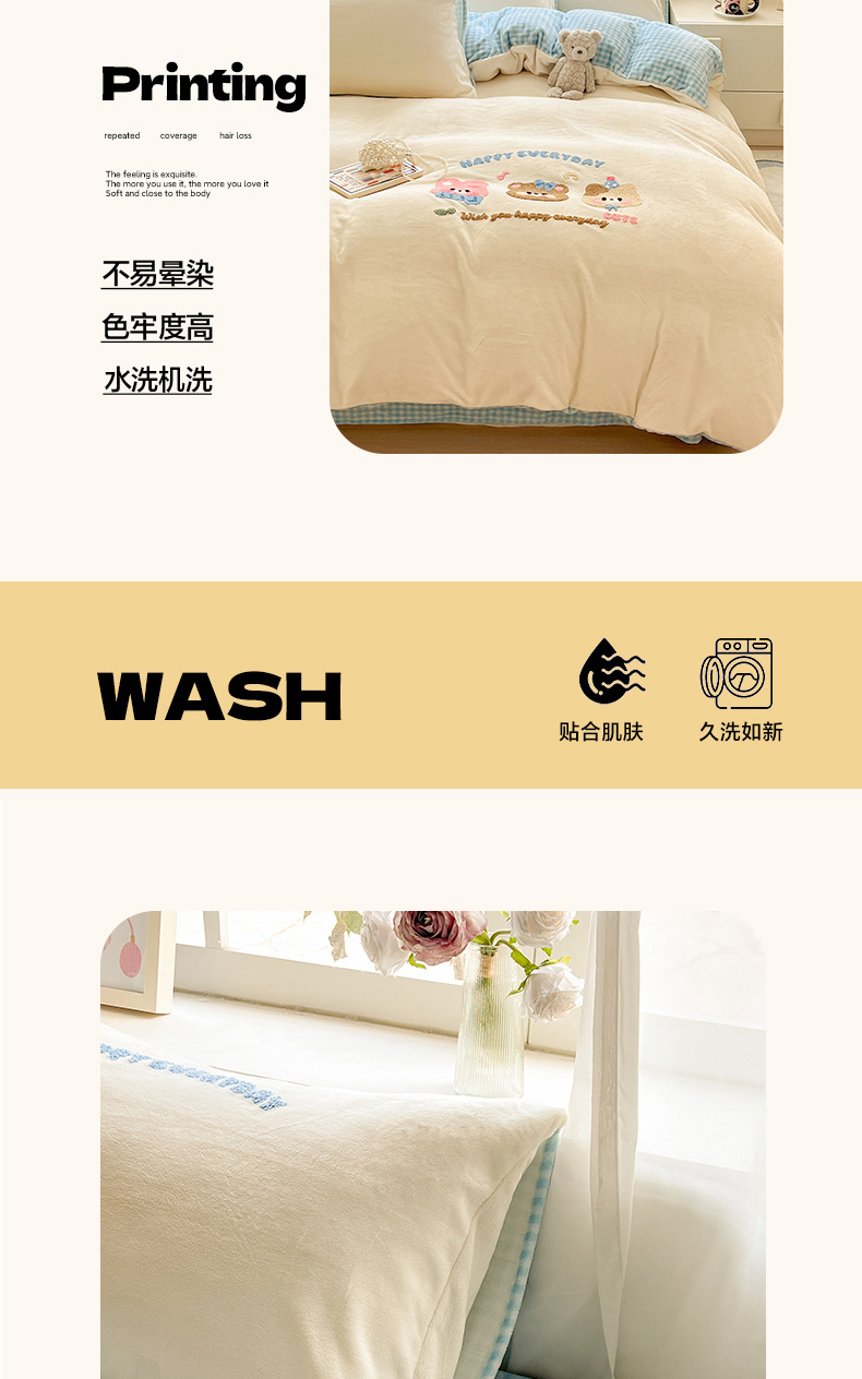 Cama de dibujos animados de lana de leche con cuatro piezas, sábanas de lana de coral gruesas, cubierta de cama de invierno y otoño, ropa de cama de cama de tres piezas