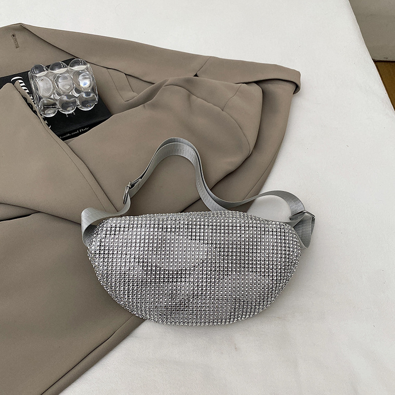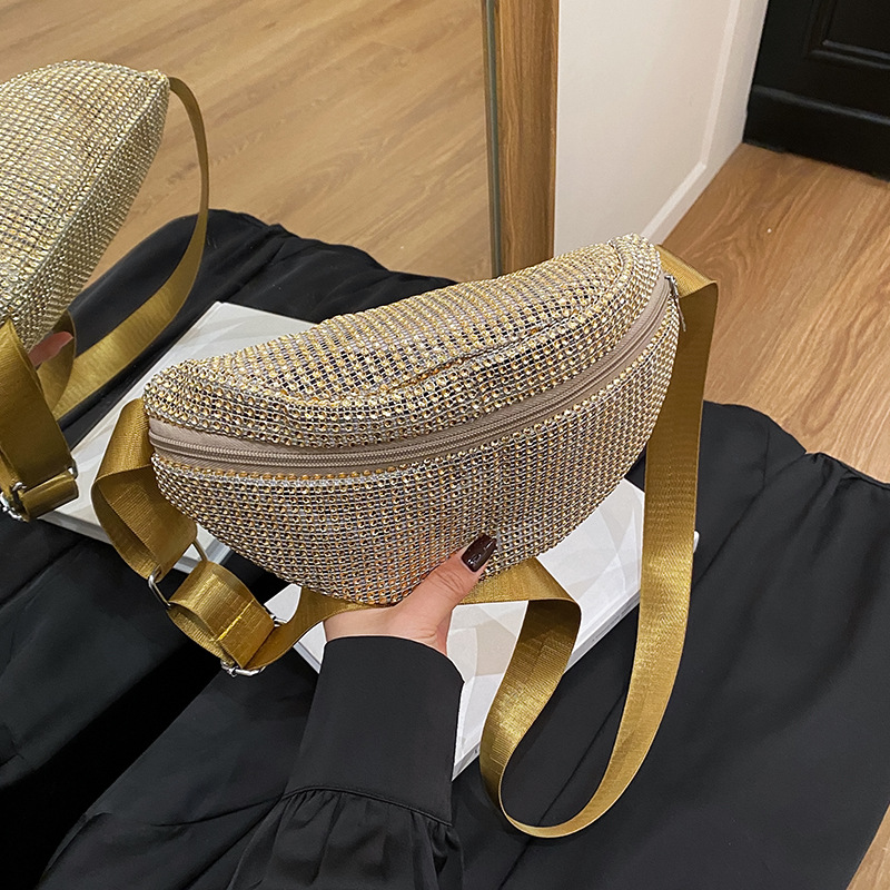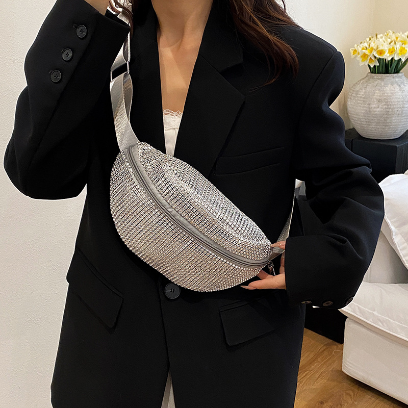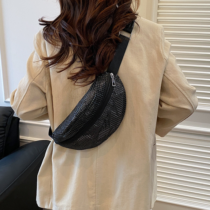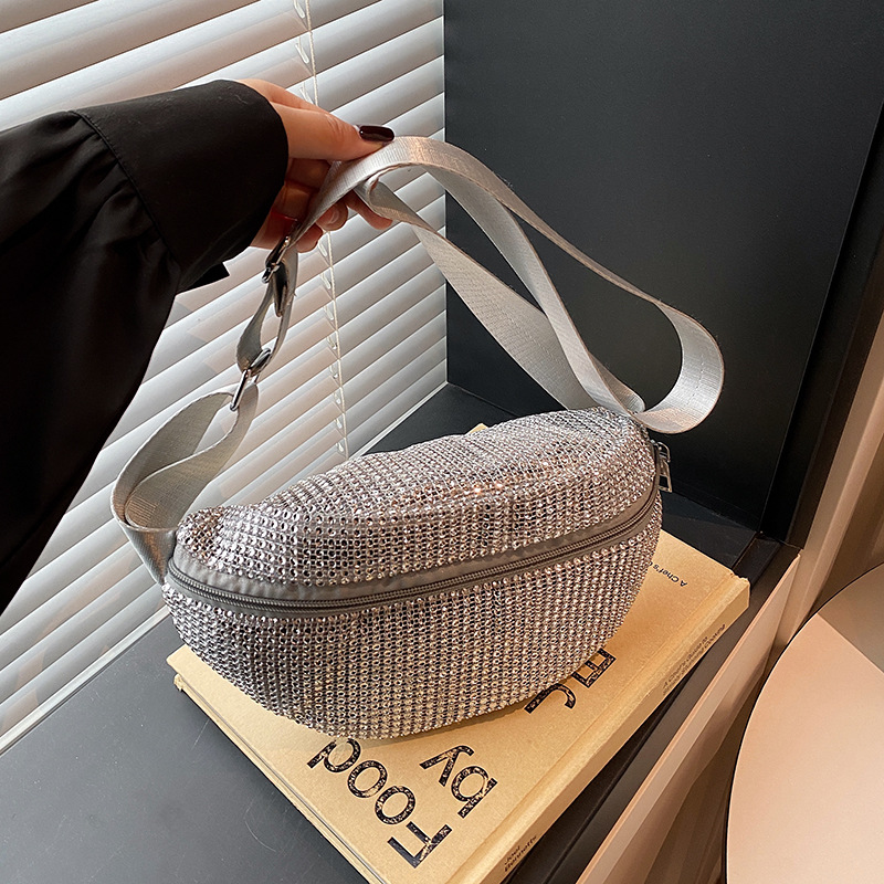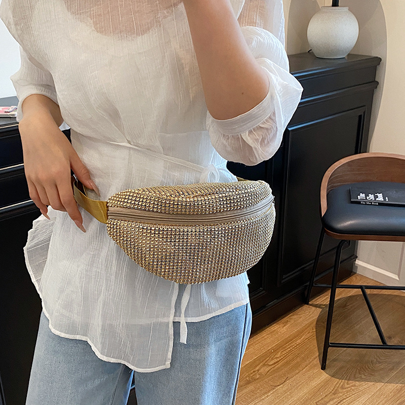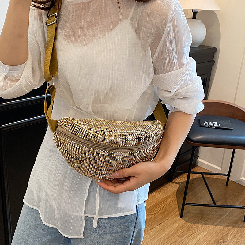 Diamante Diamante Diamante Personalidad Todo-fósforo Riñonera Mujer Verano Nuevo 2025 Cinturón de hombro ancho Bolso de pecho de color sólido de moda