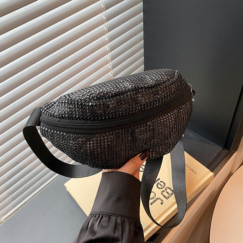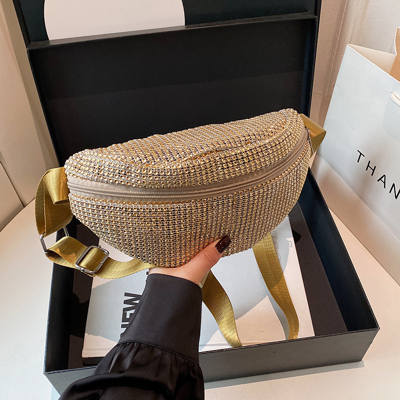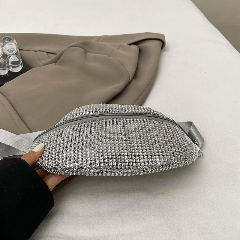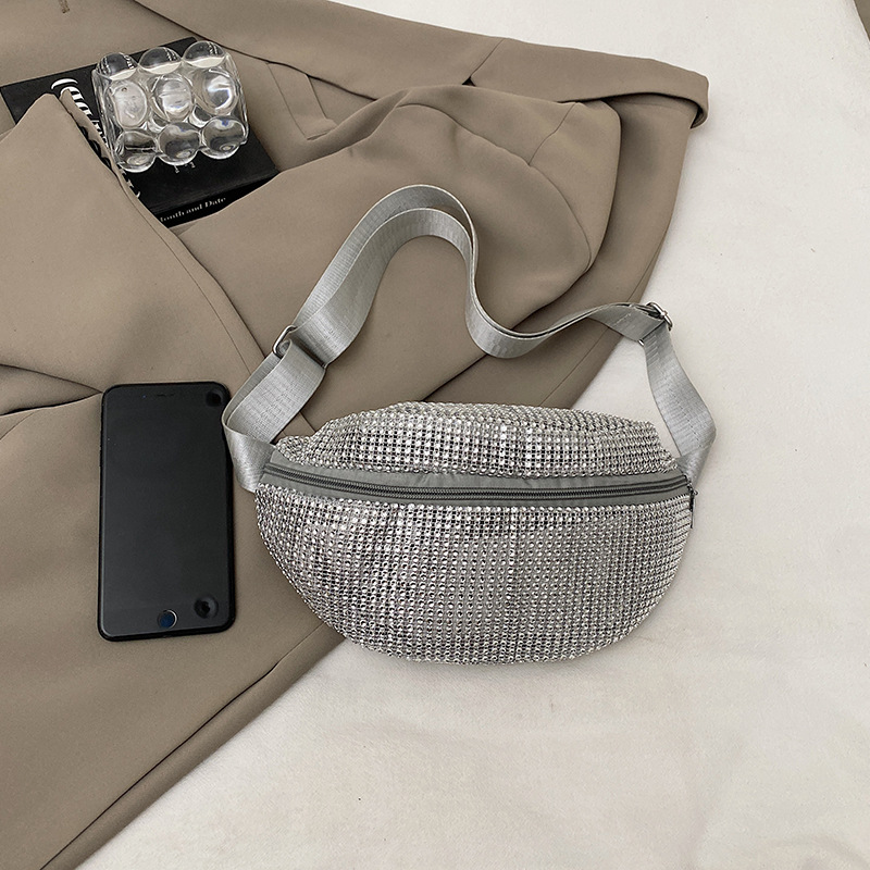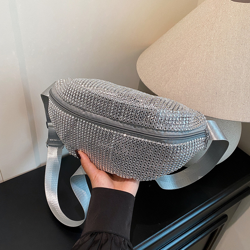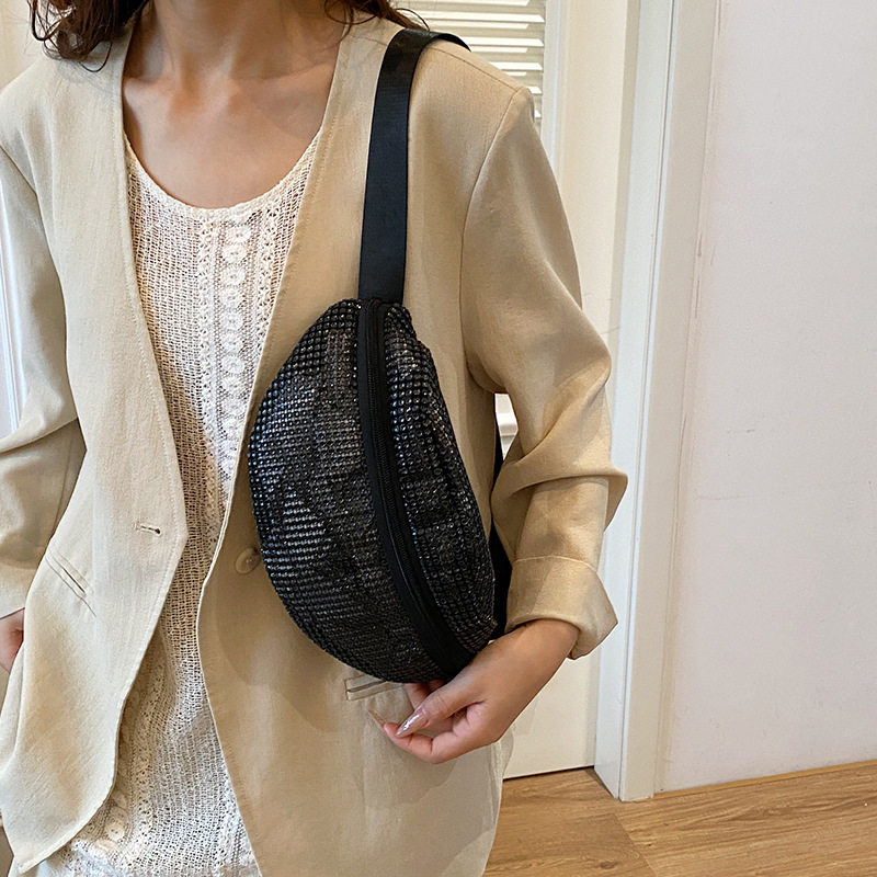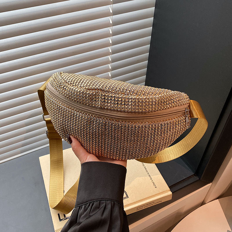 Diamante Diamante Diamante Personalidad Todo-fósforo Riñonera Mujer Verano Nuevo 2025 Cinturón de hombro ancho Bolso de pecho de color sólido de moda