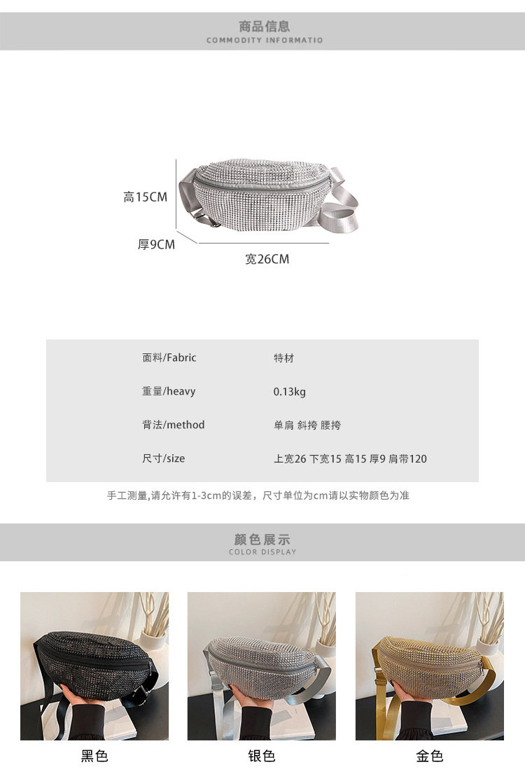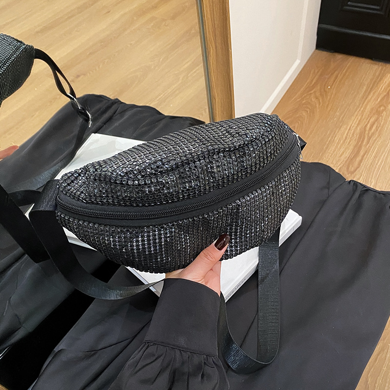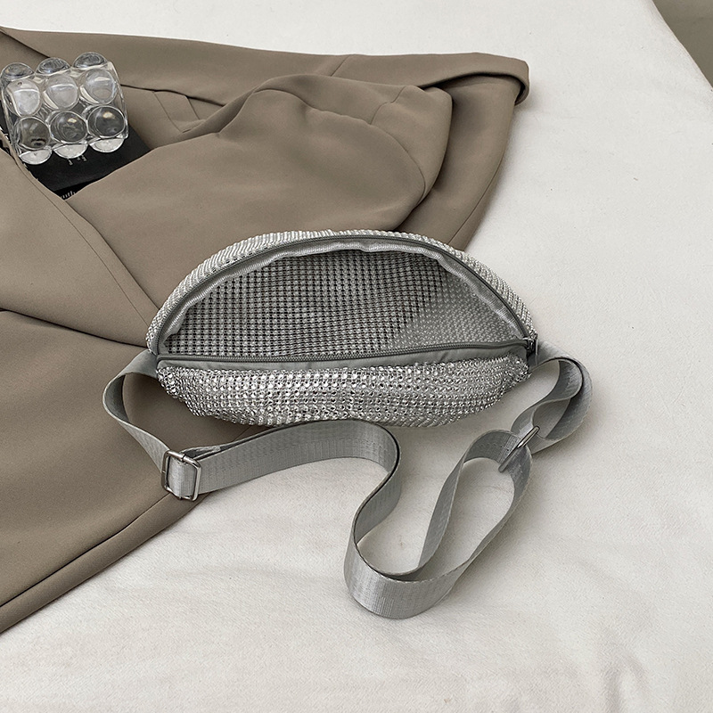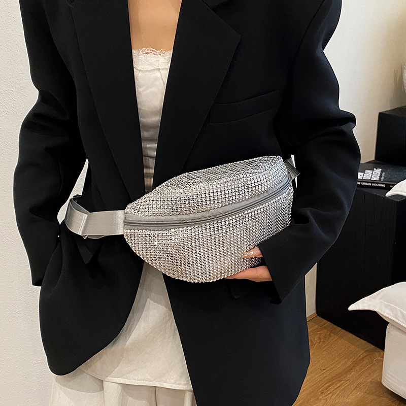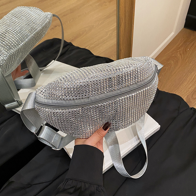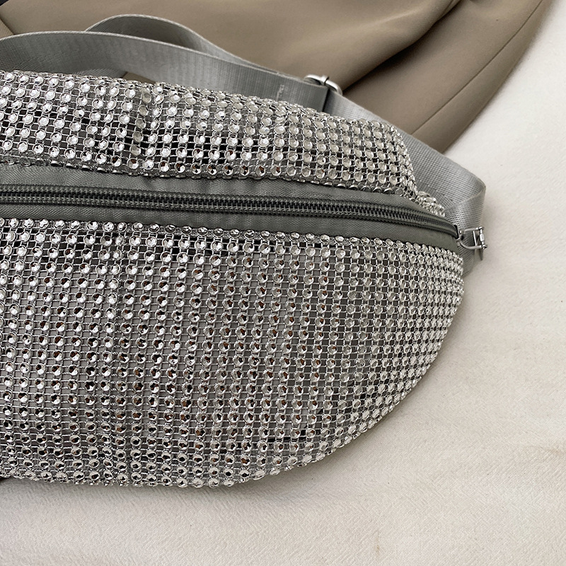Diamante Diamante Diamante Personalidad Todo-fósforo Riñonera Mujer Verano Nuevo 2025 Cinturón de hombro ancho Bolso de pecho de color sólido de moda