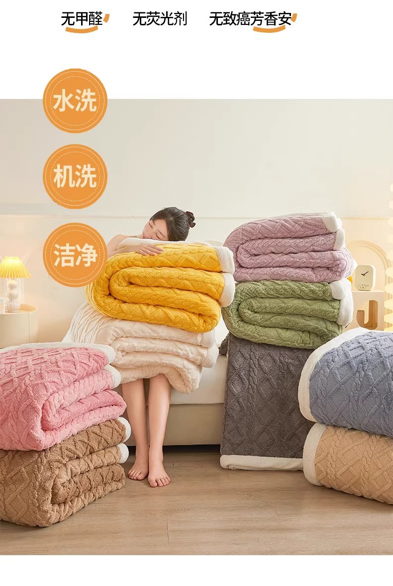 [Aumentar la manta individual] 180x200cm [A cara torre de seda B cara cordero doble capa de espesor]
