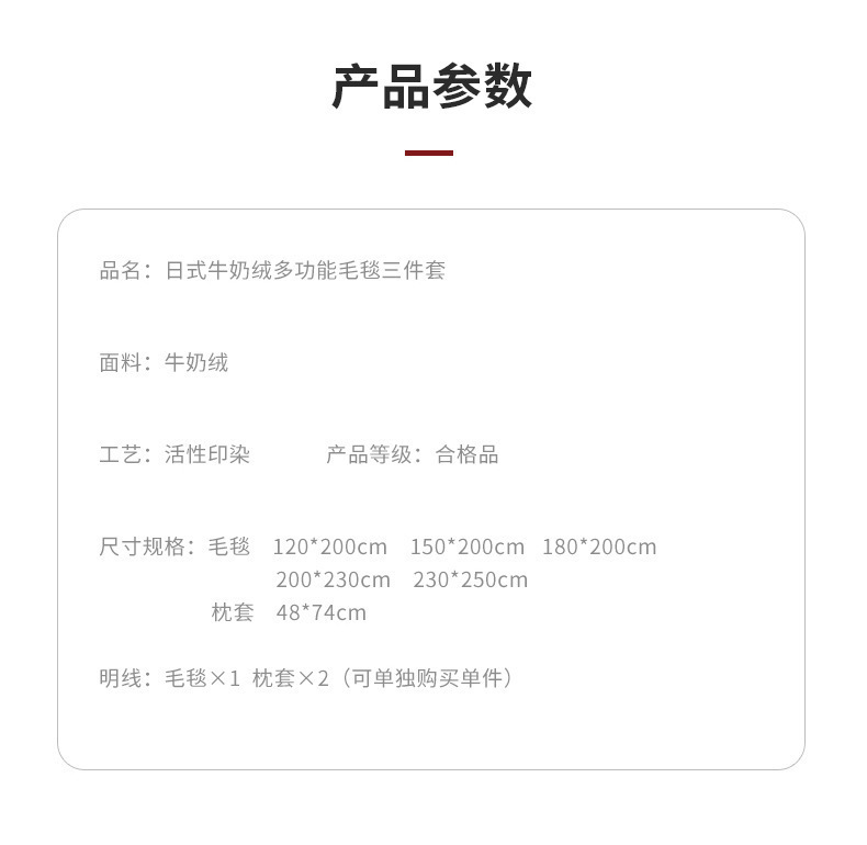| Especificaciones de tamaño | 120x200cm mantas individuales [cuatro estaciones disponibles de peluche], 150x200cm mantas individuales aumentadas [cuatro estaciones disponibles de peluche], 180x200cm mantas dobles [cuatro estaciones disponibles de peluche], 200x230cm mantas dobles aumentadas [cuatro estaciones disponibles de peluche], 230x250cm mantas dobles aumentadas [cuatro estaciones disponibles de peluche], mantas cubiertas de tres piezas - [120x200cm mantas cubiertas + un par de funda de almohada], Set de mantas de tres piezas - [tapas de 150x200cm + un par de funda de almohada], set de mantas de tres piezas - [tapas de 180x200cm + un par de funda de almohada], set de mantas de tres piezas - [tapas de 200x230cm + un par de funda de almohada], set de mantas de tres piezas - [tapas de 230x250cm + un par de funda de almohada] |