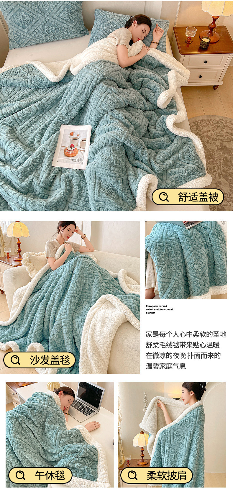 Mantras de doble cara de leche de cachemire de cabellera de oficina siesta pequeña edredón de aire acondicionado mantas de sofá cuatro estaciones