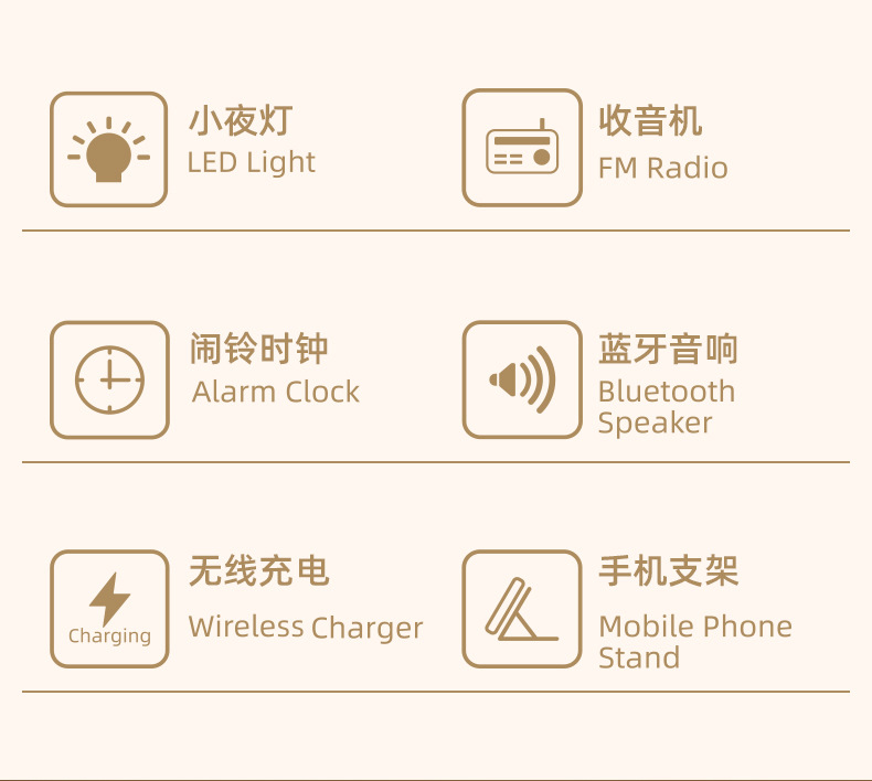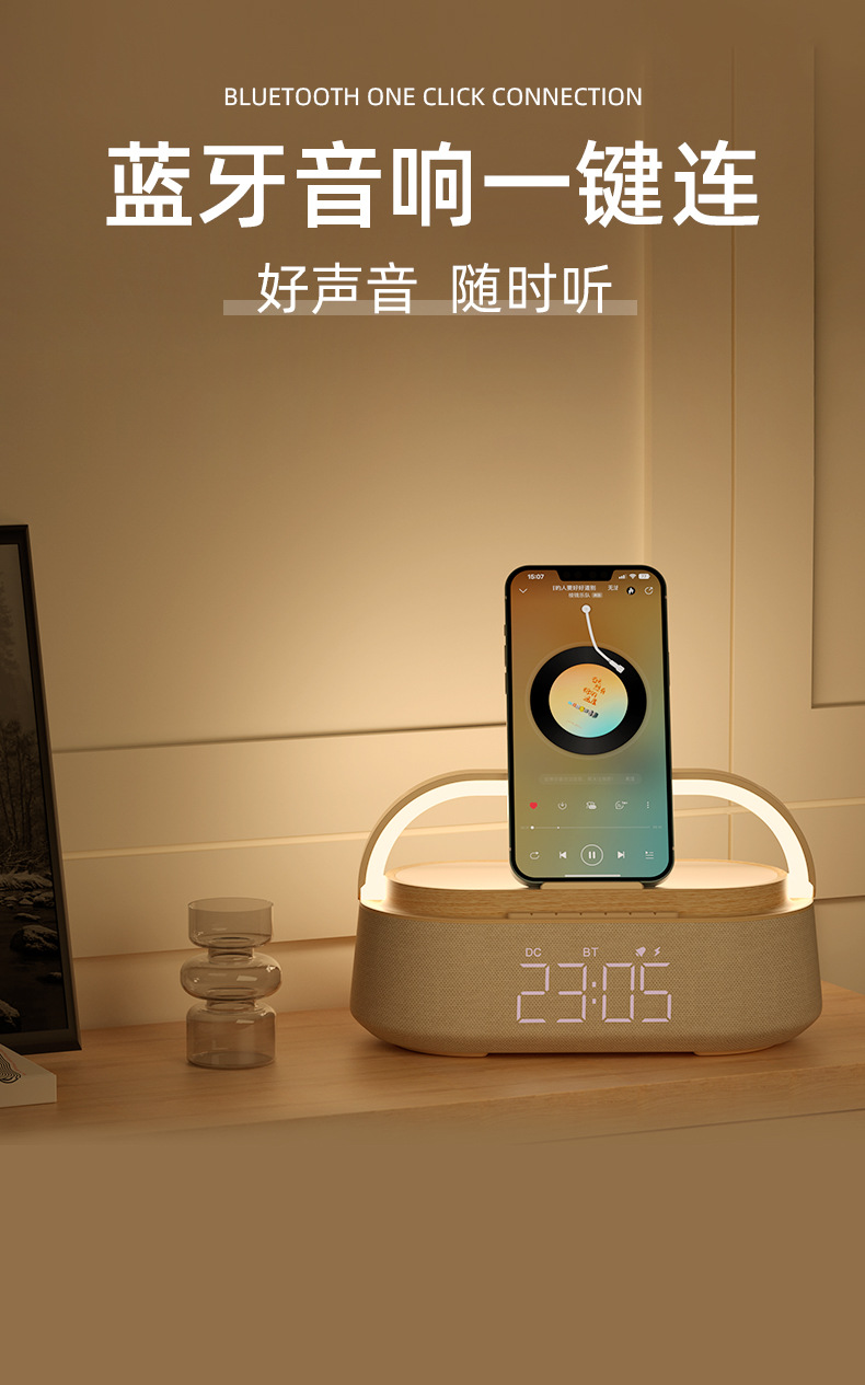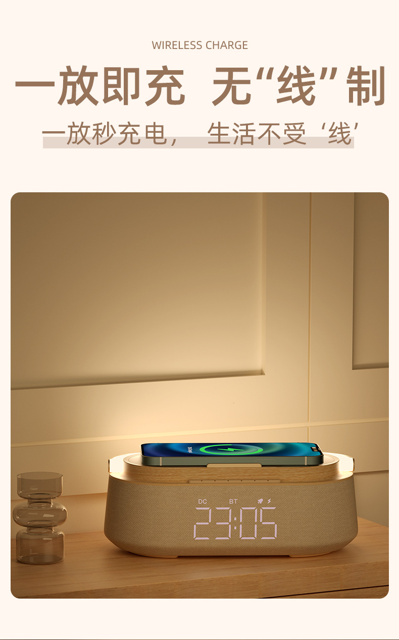 Sam es el mismo reloj de sonido Bluetooth de carga inalámbrica multifuncional para regalos de reunión anual corporativa para hombres y mujeres