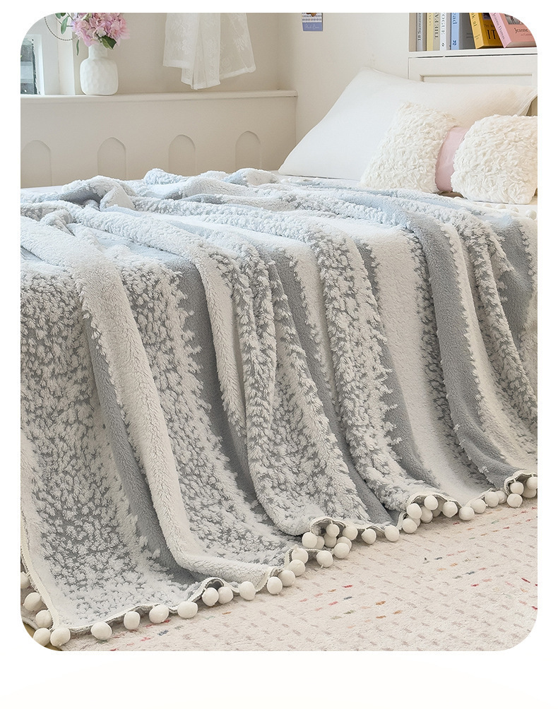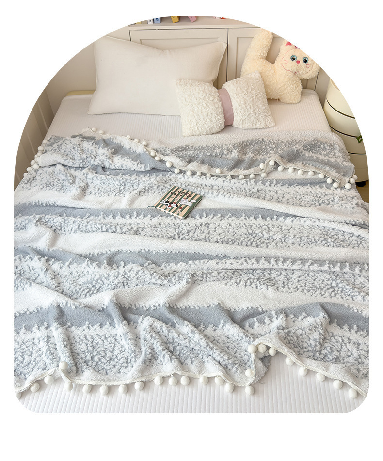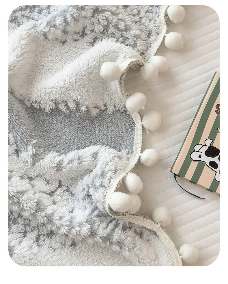 Luz de lujo catiónico jacquard agujero torre de cordero calentamiento siesta de niños manta de doble capa manta de oficina