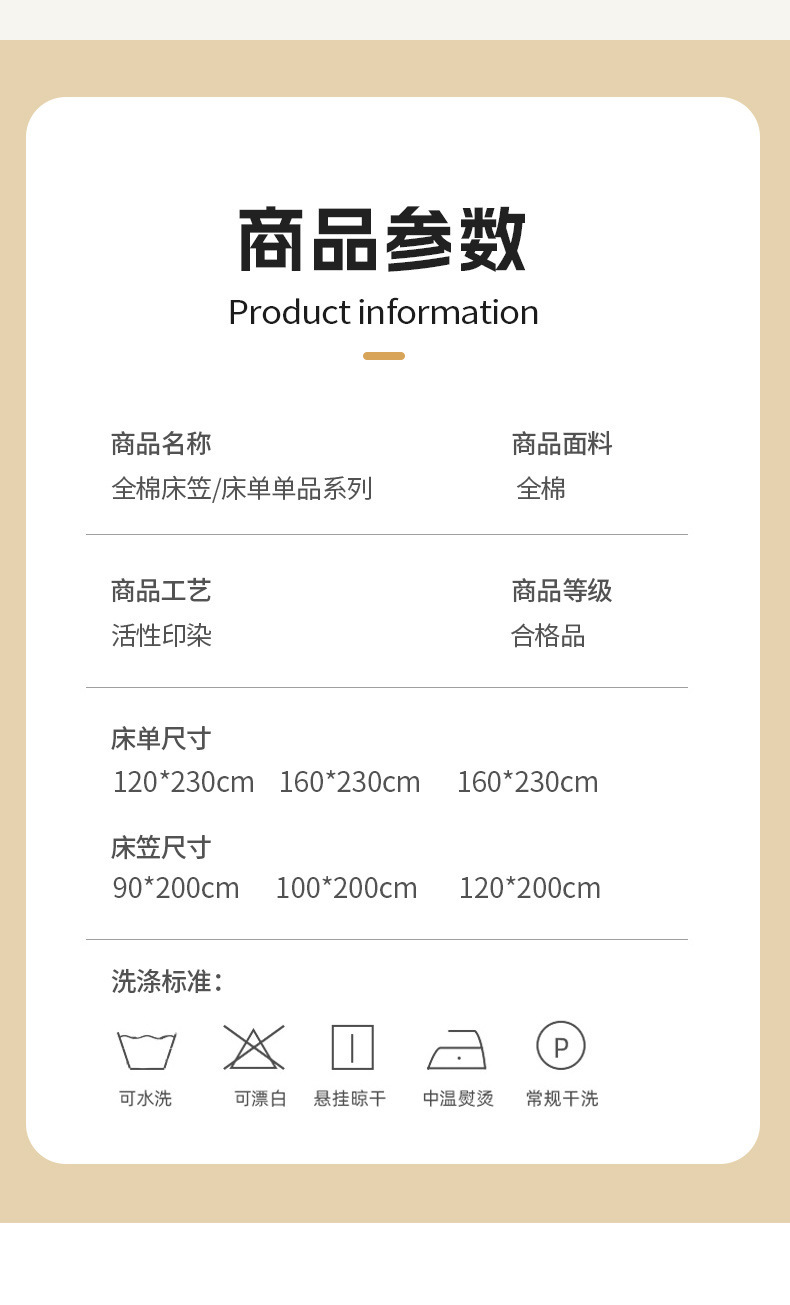 | Especificaciones de tamaño | Sombrilla de cama individual de algodón 100% de clase A: 90x200cm [para colchones de 5-28cm],Sombrilla de cama individual de algodón 100% de clase A: 100x200cm [para colchones de 5-28cm],Sombrilla de cama individual de algodón 100% de clase A: 120x200cm [para colchones de 5-28cm],Sombrilla de cama individual de algodón 100% de clase A: 150x200cm [para colchones de 5-28cm],Sombrilla de cama individual de algodón 100% de clase A: 180x200cm [para colchones de 5-28cm],Sombrilla de cama individual de algodón 100% de clase A: 200x220cm [para colchones de 5-28cm],Un juego de tres piezas de sábanas de algodón 100% de clase: un par de sábanas de 90x200cm y fundas de almohada,Juego de tres piezas de sábanas de algodón 100% de clase A: un par de sábanas de 100x200cm y fundas de almohada,Juego de tres piezas de sábanas de algodón 100% de clase A: un par de sábanas de 120x200cm y fundas de almohada,Juego de tres piezas de sábanas de algodón 100% de clase A: un par de sábanas de 150x200cm y fundas de almohada,Un juego de tres piezas de sábanas de algodón 100% de clase: un par de sábanas de 180x200cm y fundas de almohada,Juego de tres piezas de sábanas de algodón 100% de clase A: un par de sábanas de 200x220cm y fundas de almohada |