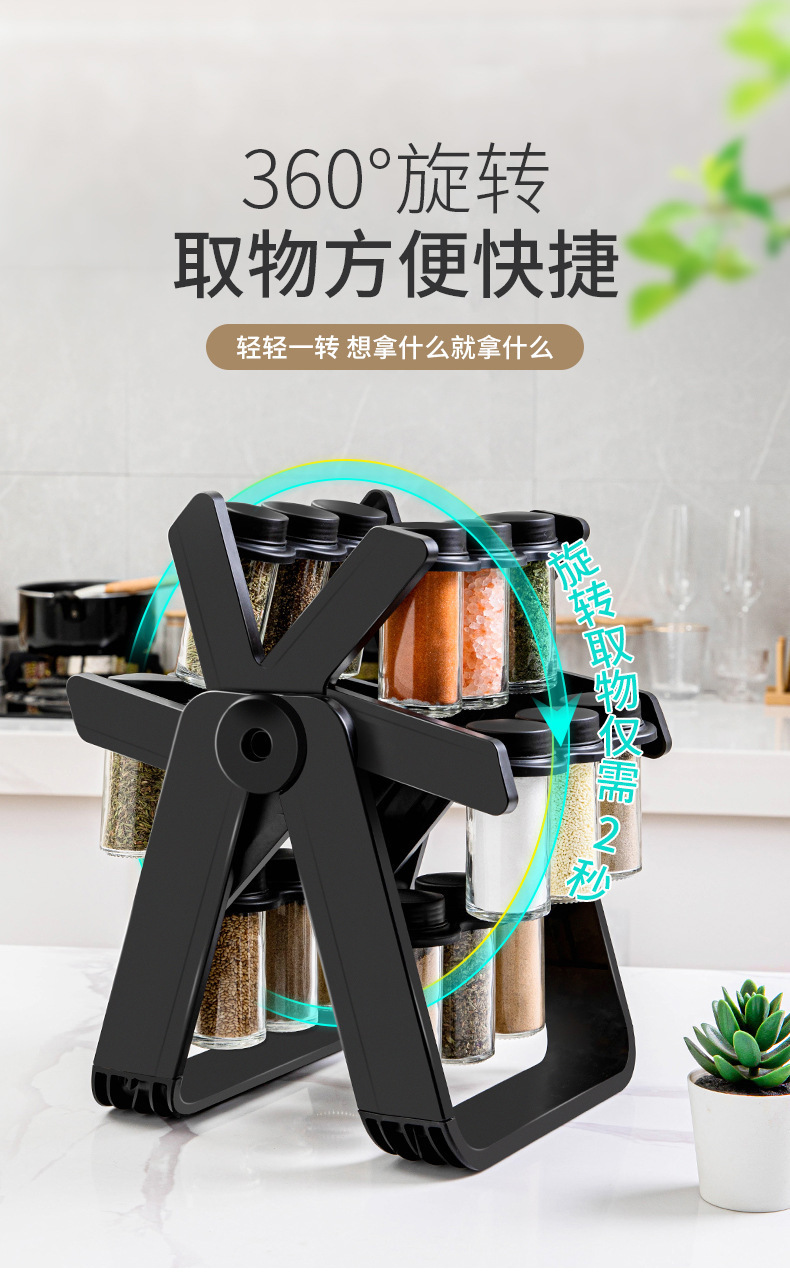 Estante de botella de condimento giratorio estante de almacenamiento de vidrio especial para cocina conjunto de condimentos de clasificación de almacenamiento sellado humedad conveniente