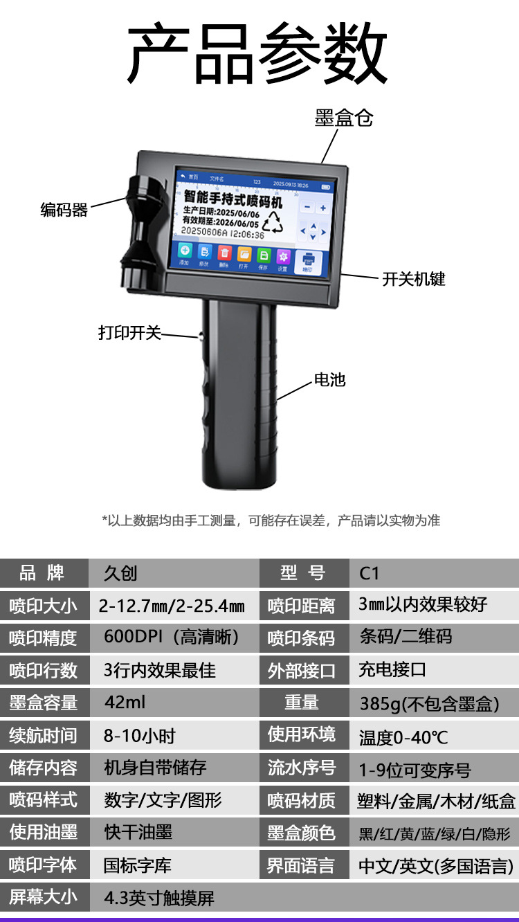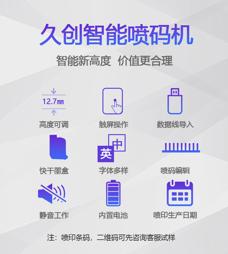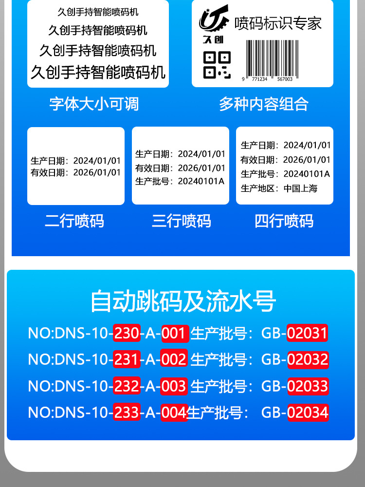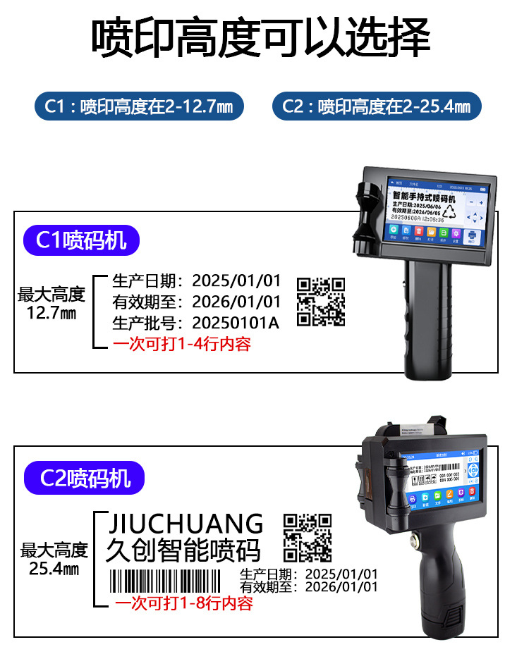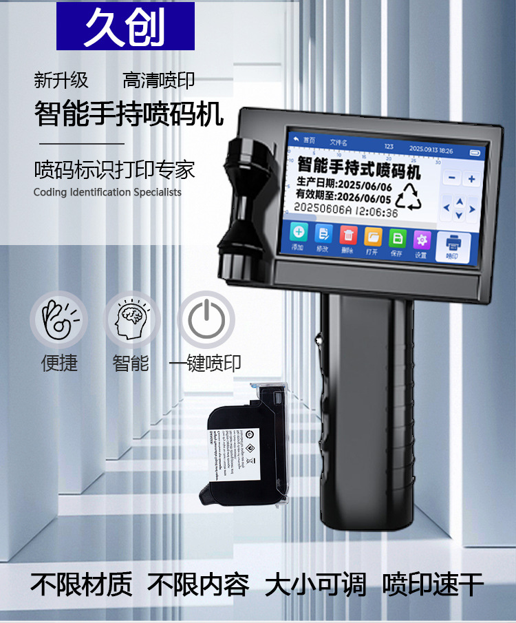 Impresora de inyección de tinta portátil Jiuchuang, codificador de fecha de producción pequeño y portátil, máquina de escribir, patrón de texto, código QR