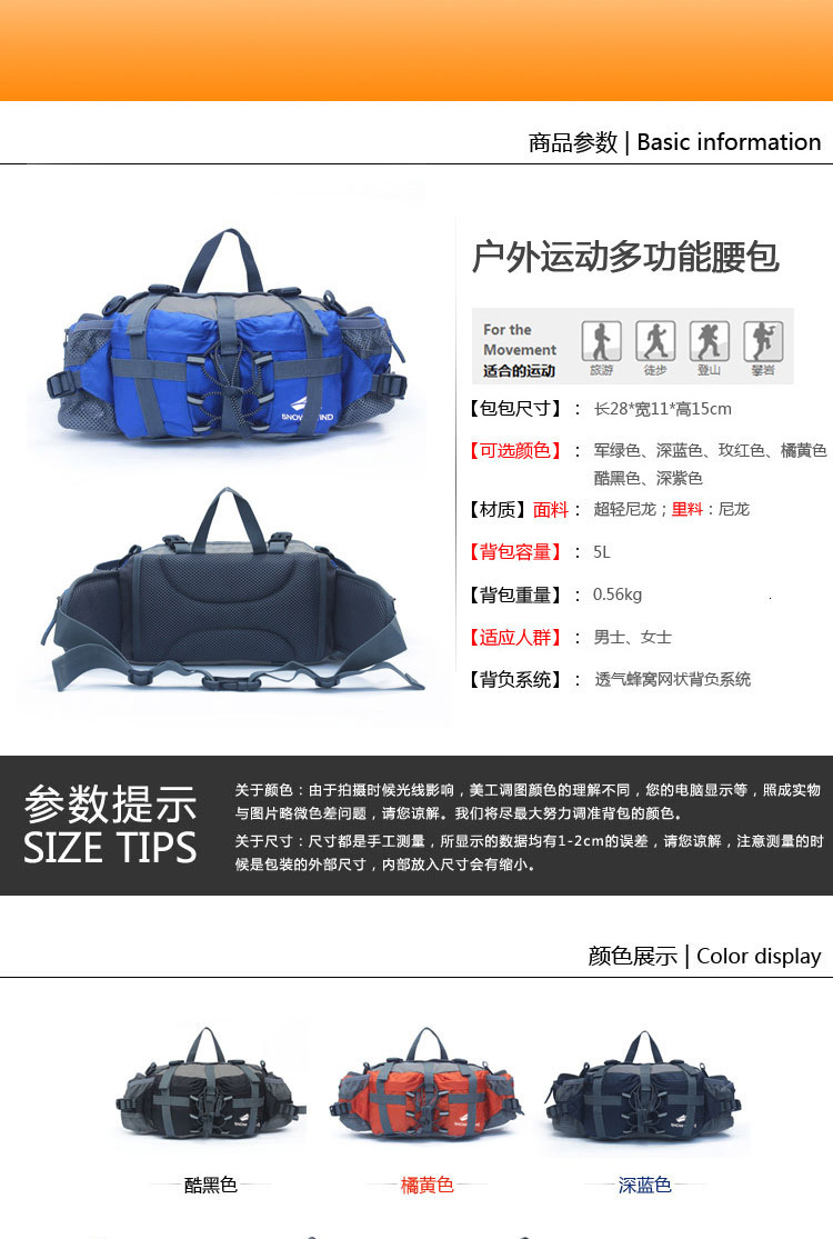 Cartera nueva bolsa de cintura al aire libre multifuncional impermeable de gran capacidad para hombres y mujeres montañistas a pie bolsas de hervidor de agua al por mayor
