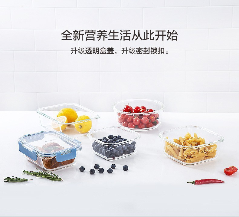Mayorista transfronterizo caja de almacenamiento de vidrio resistente al calor calentable caja de almuerzo de vidrio de alto silicio borosilicano desmontable Amazon Temu