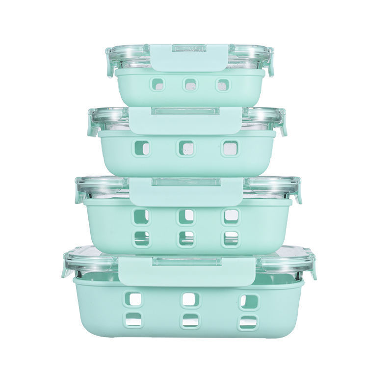 Caja de almacenamiento de vidrio de silicona desmontable con cubierta para refrigerador de grado alimenticio cuenco de sellado especial con cubierta para horno de microondas