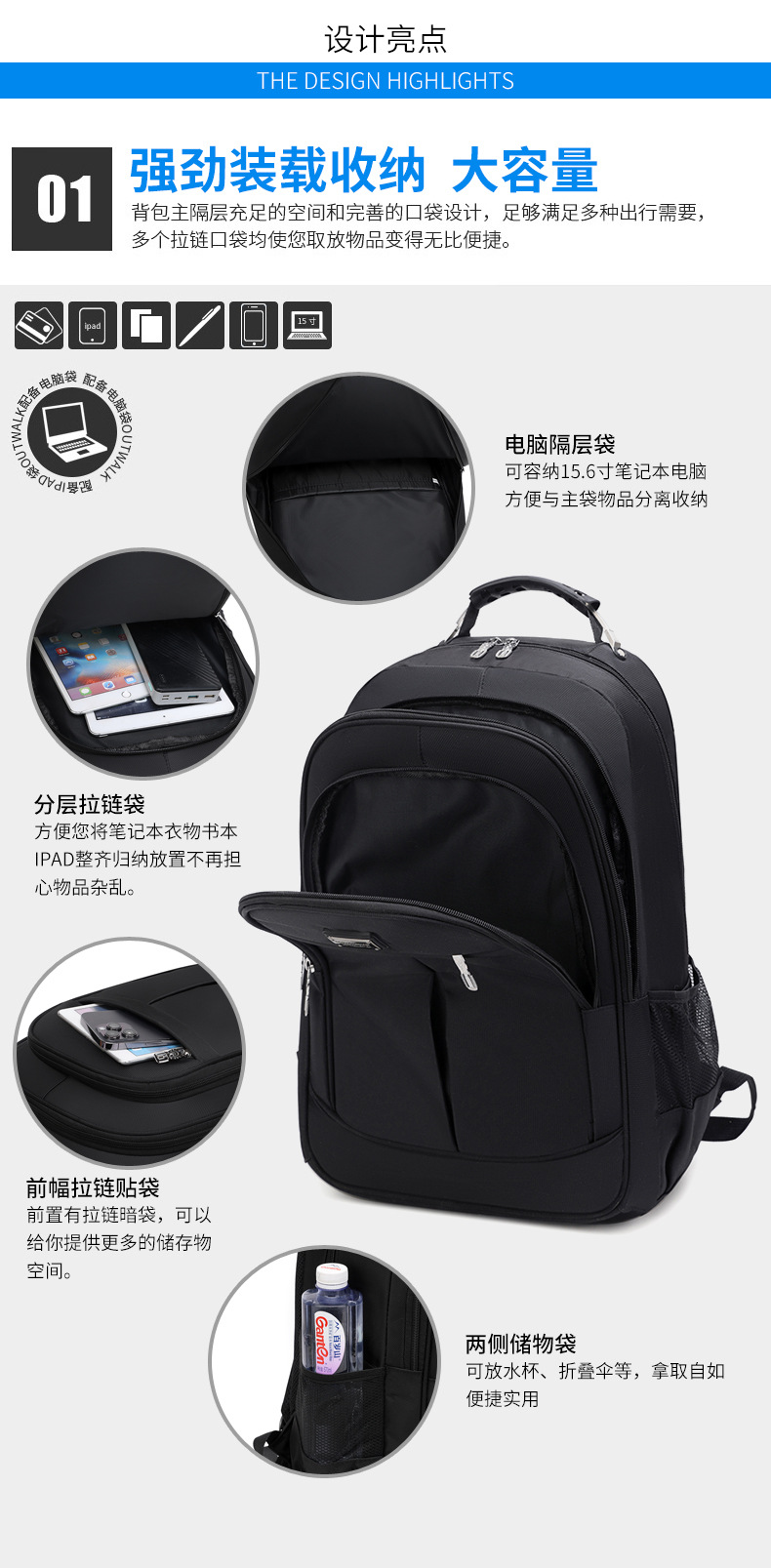 Mochila de negocios para hombre, mochila de viaje al aire libre de gran capacidad, mochila para estudiantes y viajeros, mochila escolar con correas acolchadas.