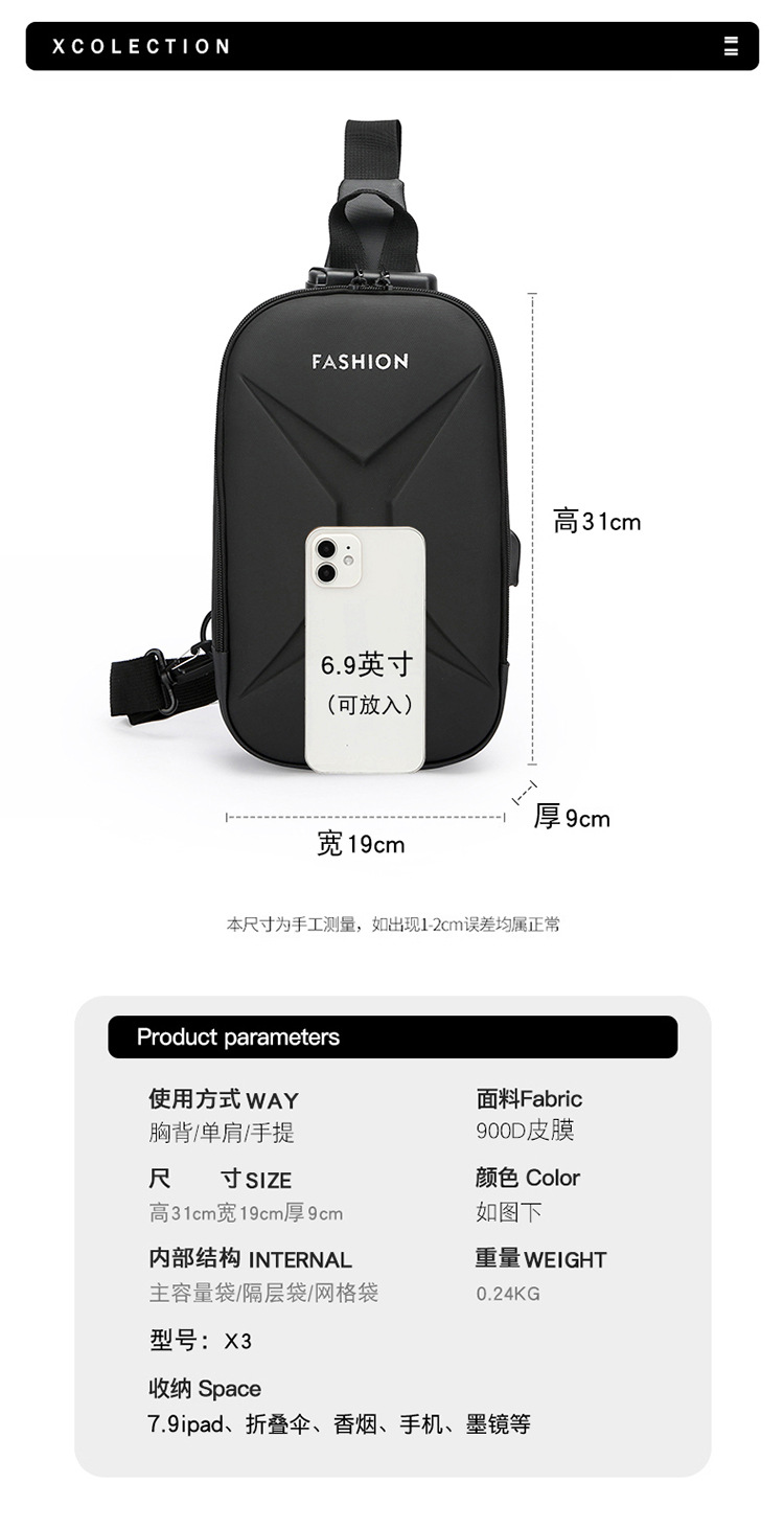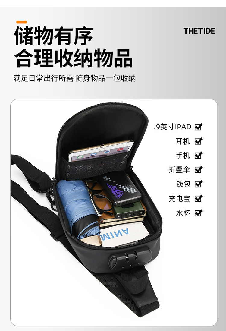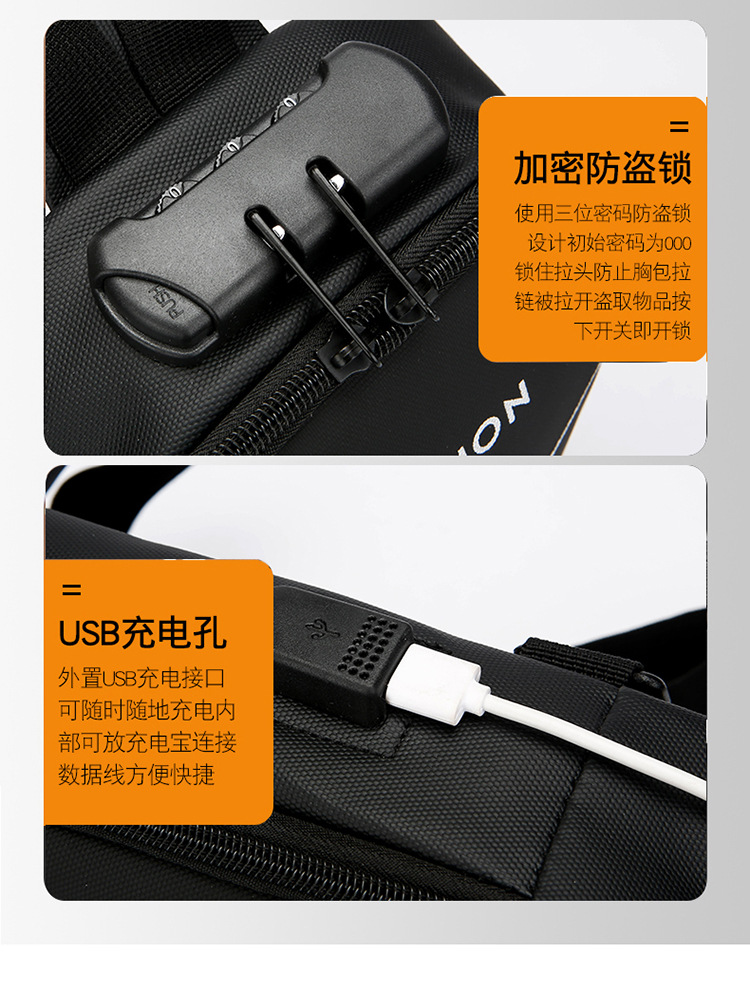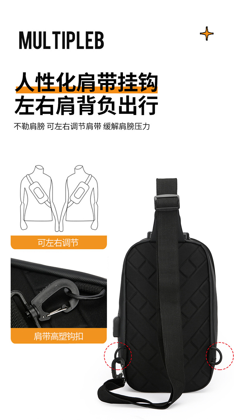 2025 verano mochila casual bolso de pecho para hombre bolso de mensajero bolso de puerto de carga USB al por mayor transfronterizo bolso de hombro de moda