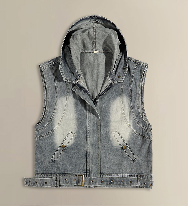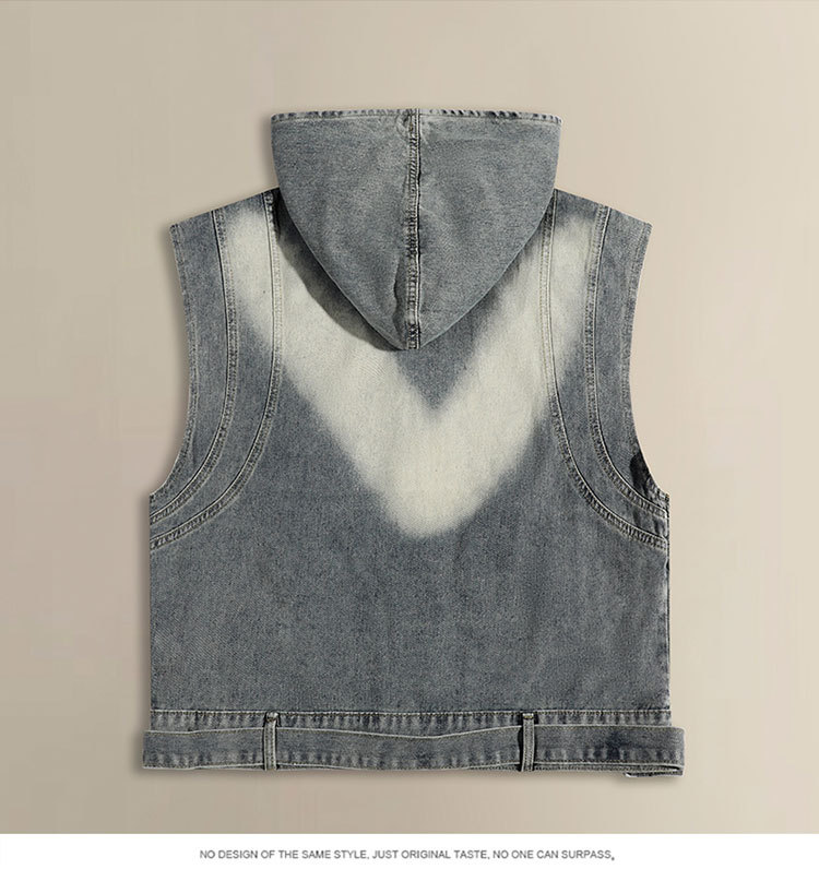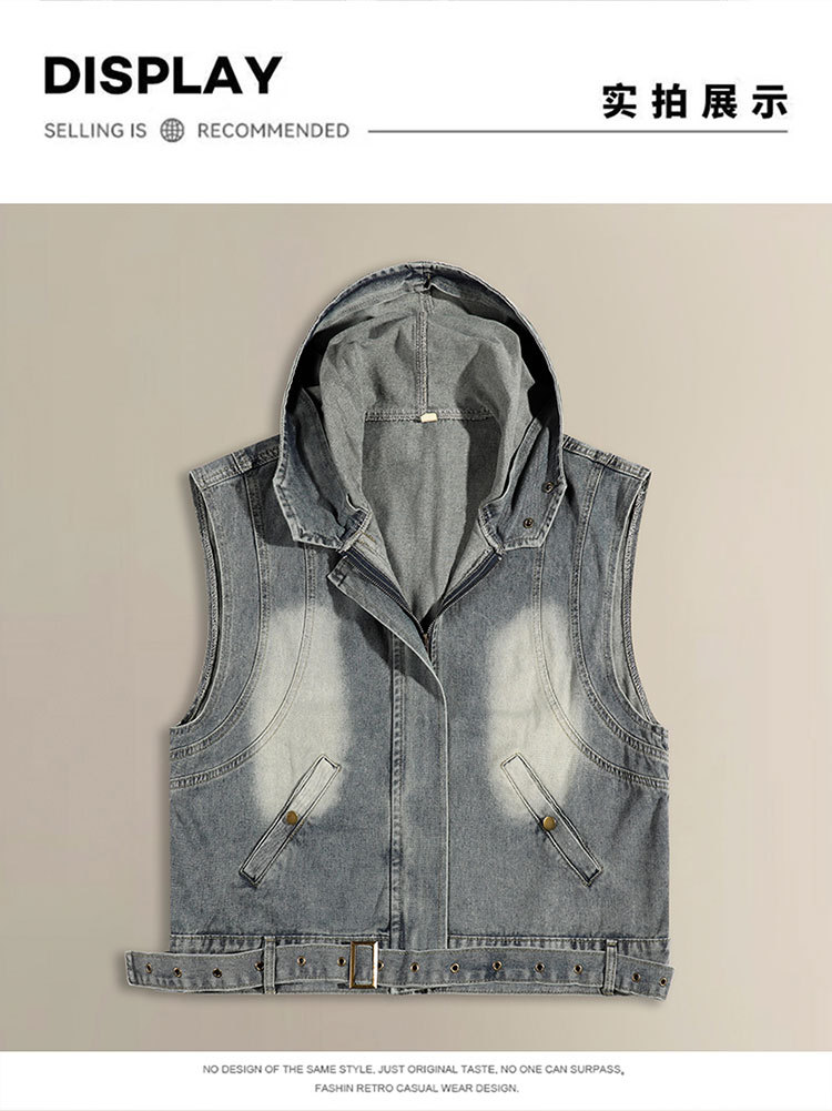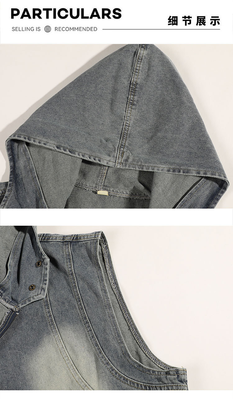 Comercio exterior chaleco de vaqueros con capuchón hombre y mujer primavera y otoño chaleco corto de tamaño grande con sombrero casual con hombros sin mangas
