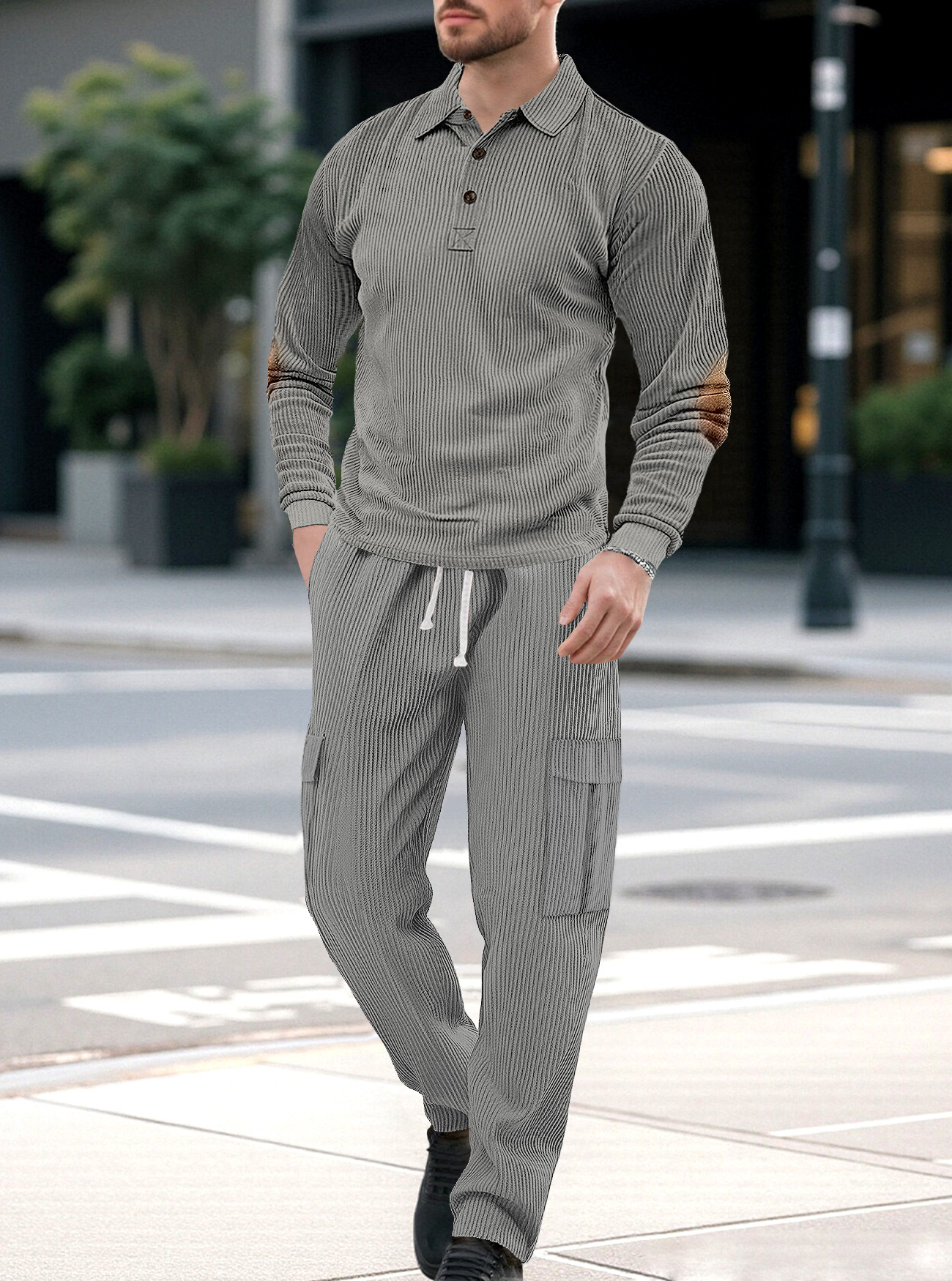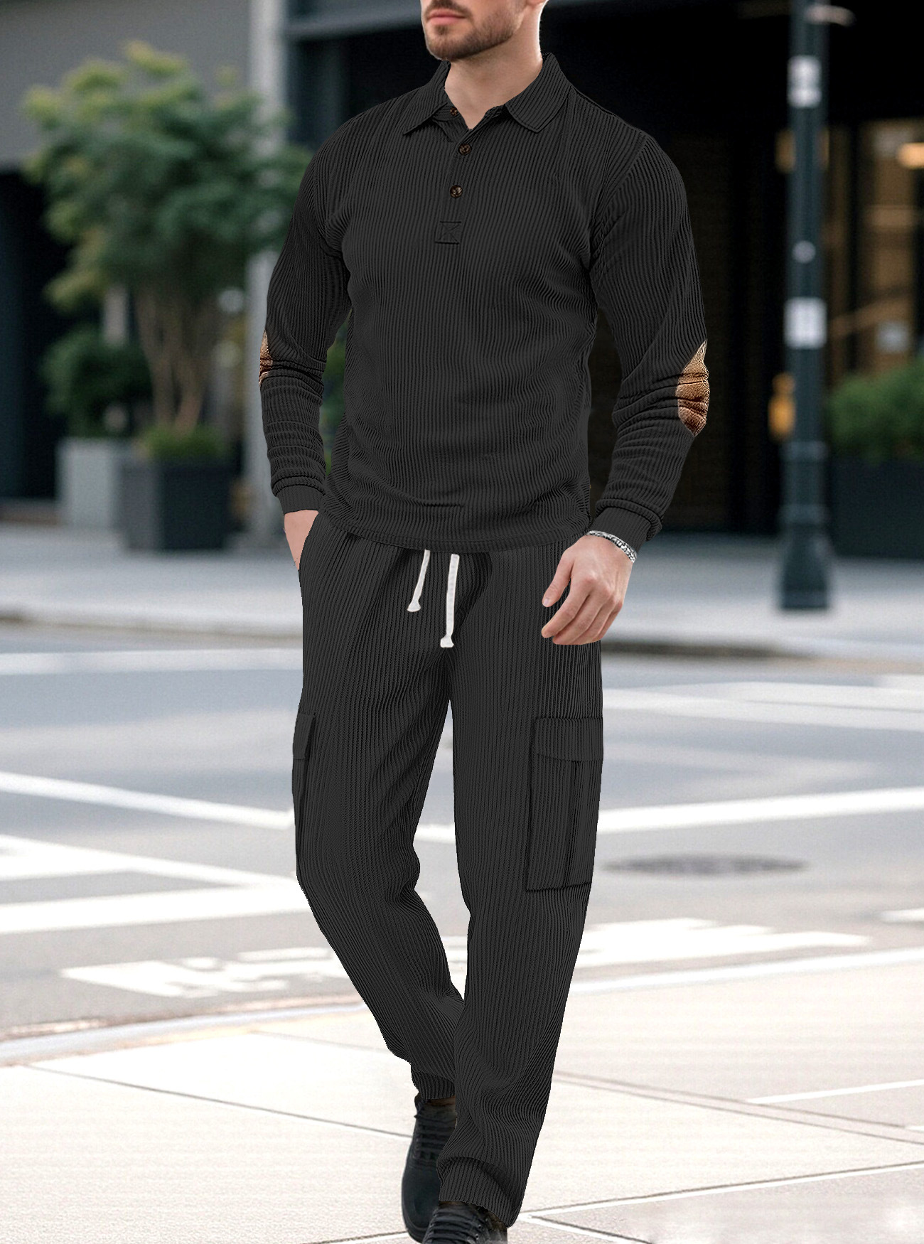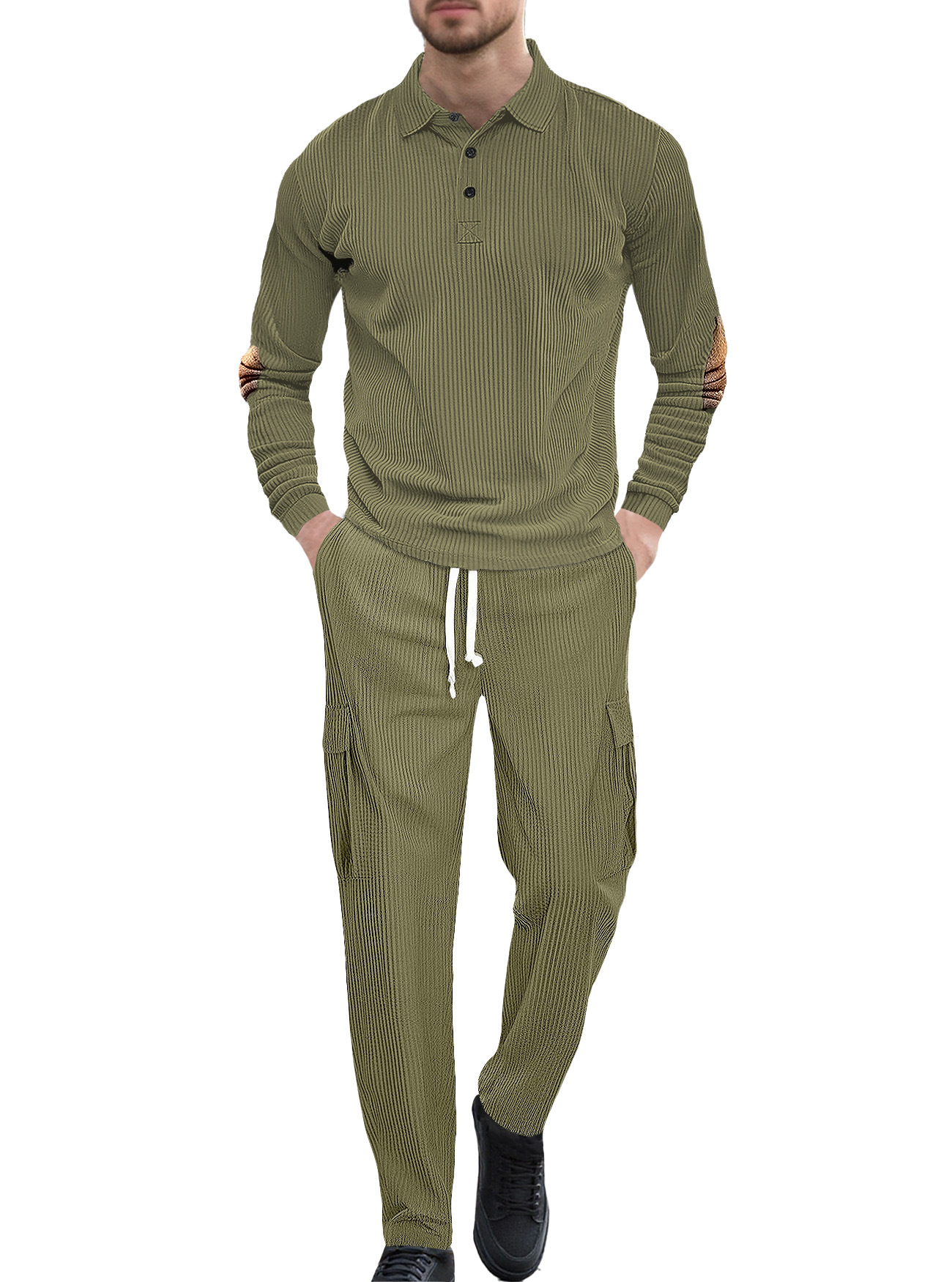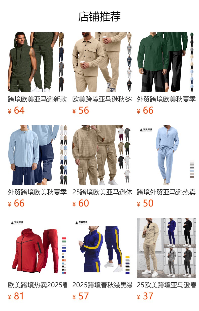 Comercio exterior Amazon transfronterizo Europa y Estados Unidos deportes casuales con solapa de manga larga dos piezas para hombres sueltos set de herramientas de color sólido
