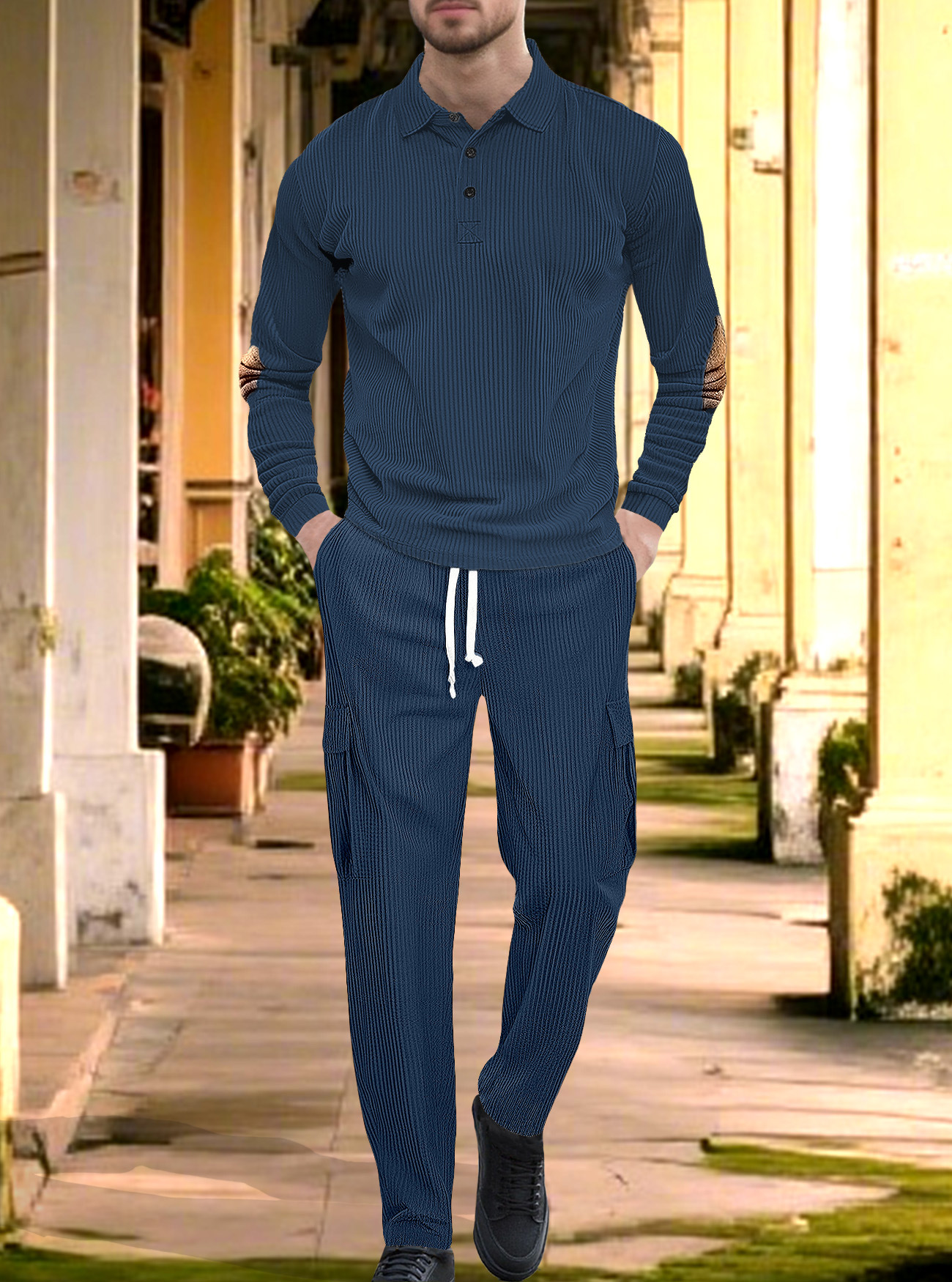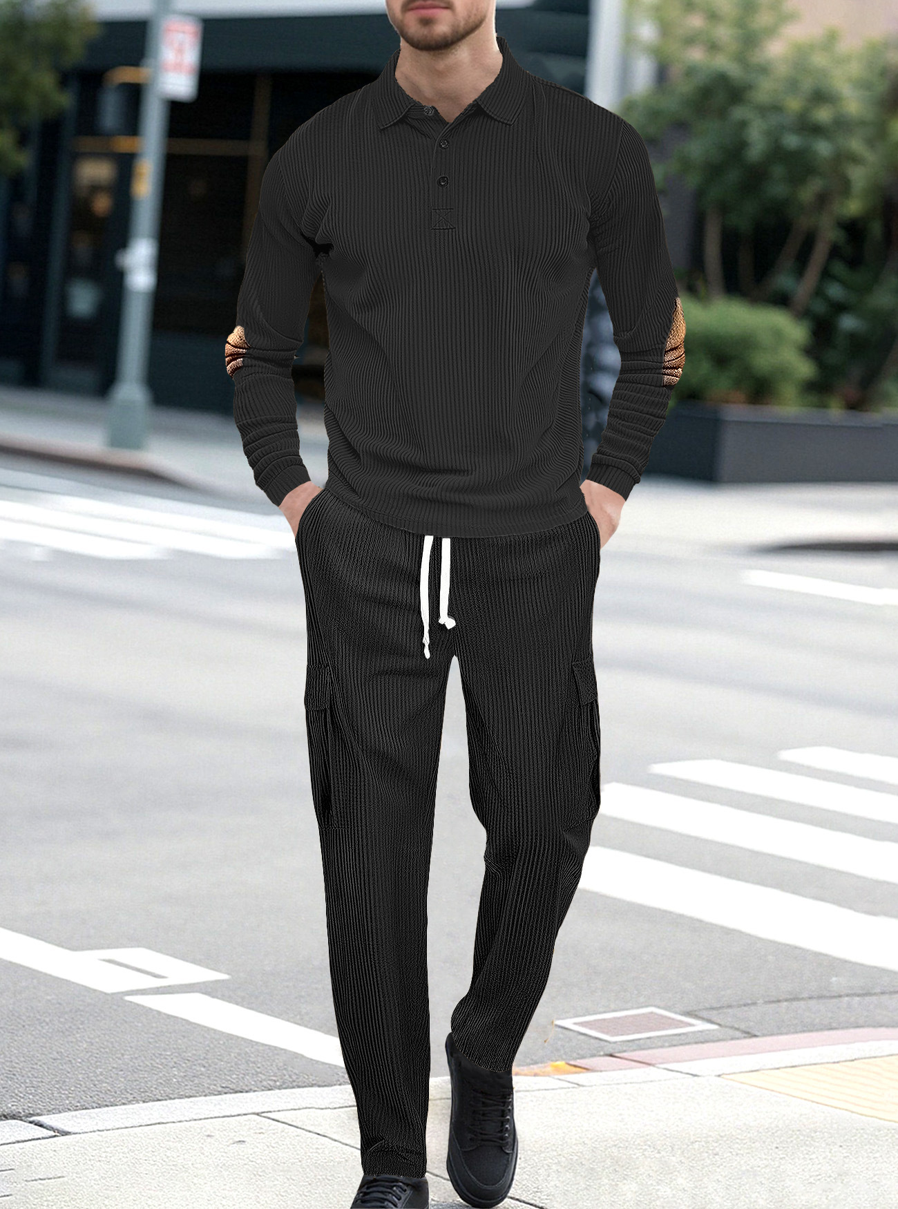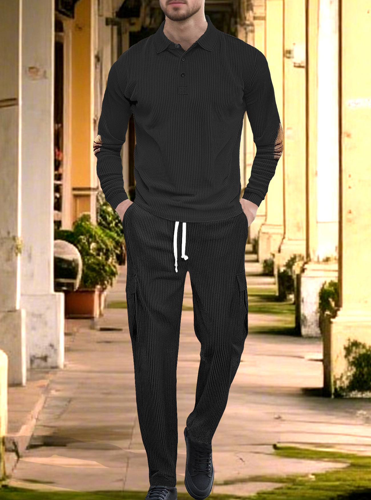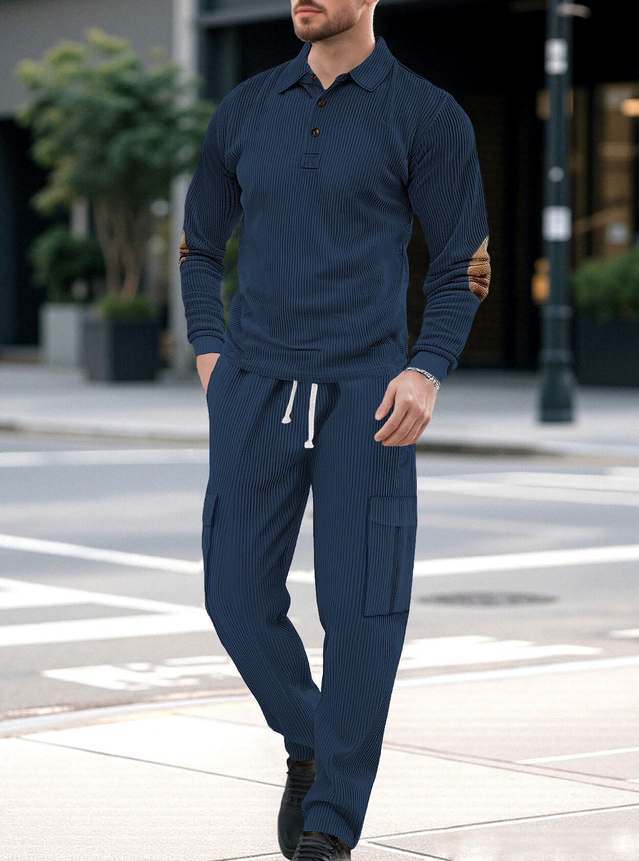Comercio exterior Amazon transfronterizo Europa y Estados Unidos deportes casuales con solapa de manga larga dos piezas para hombres sueltos set de herramientas de color sólido
