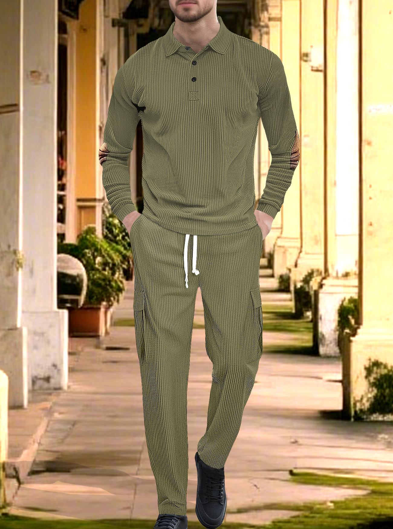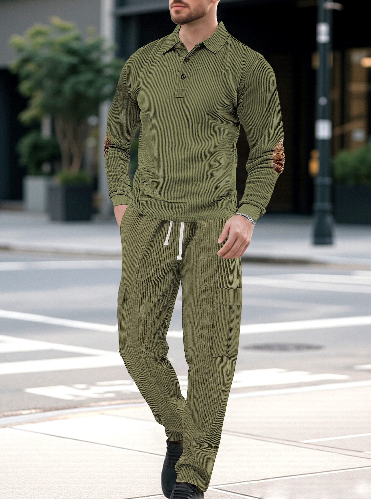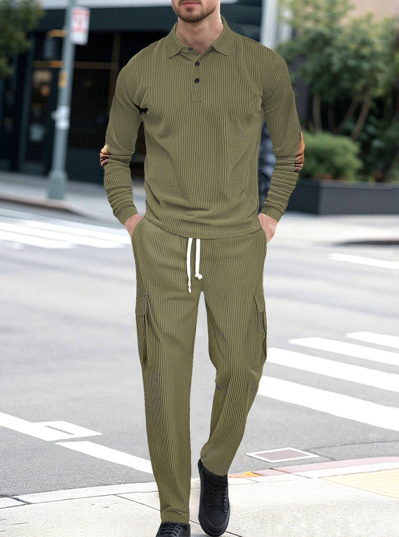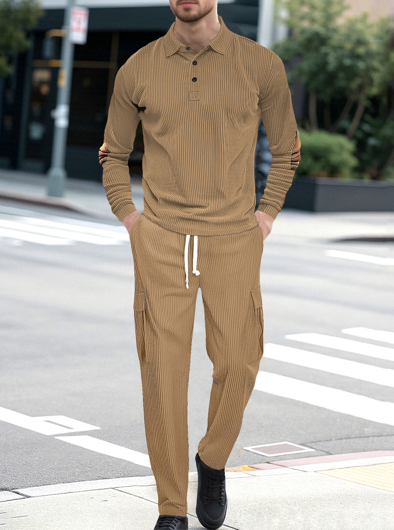 Comercio exterior Amazon transfronterizo Europa y Estados Unidos deportes casuales con solapa de manga larga dos piezas para hombres sueltos set de herramientas de color sólido