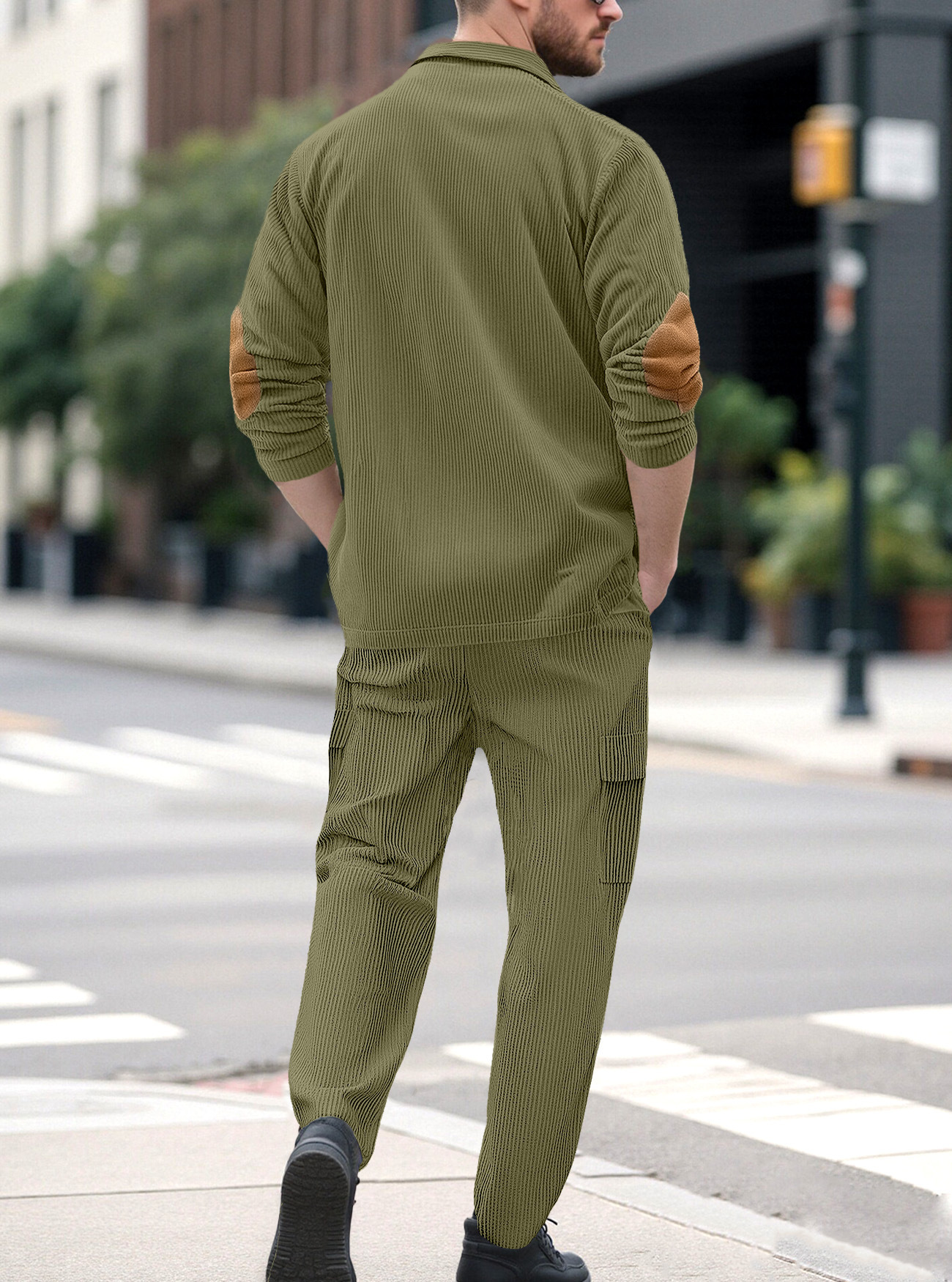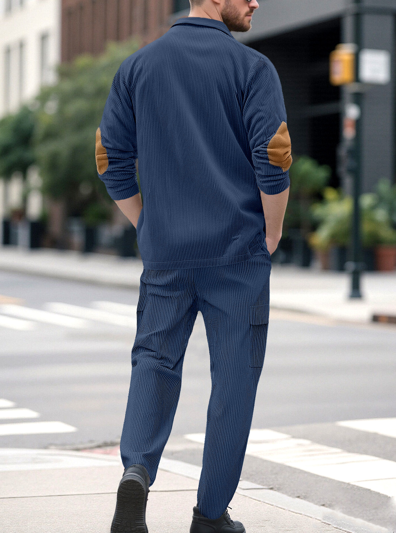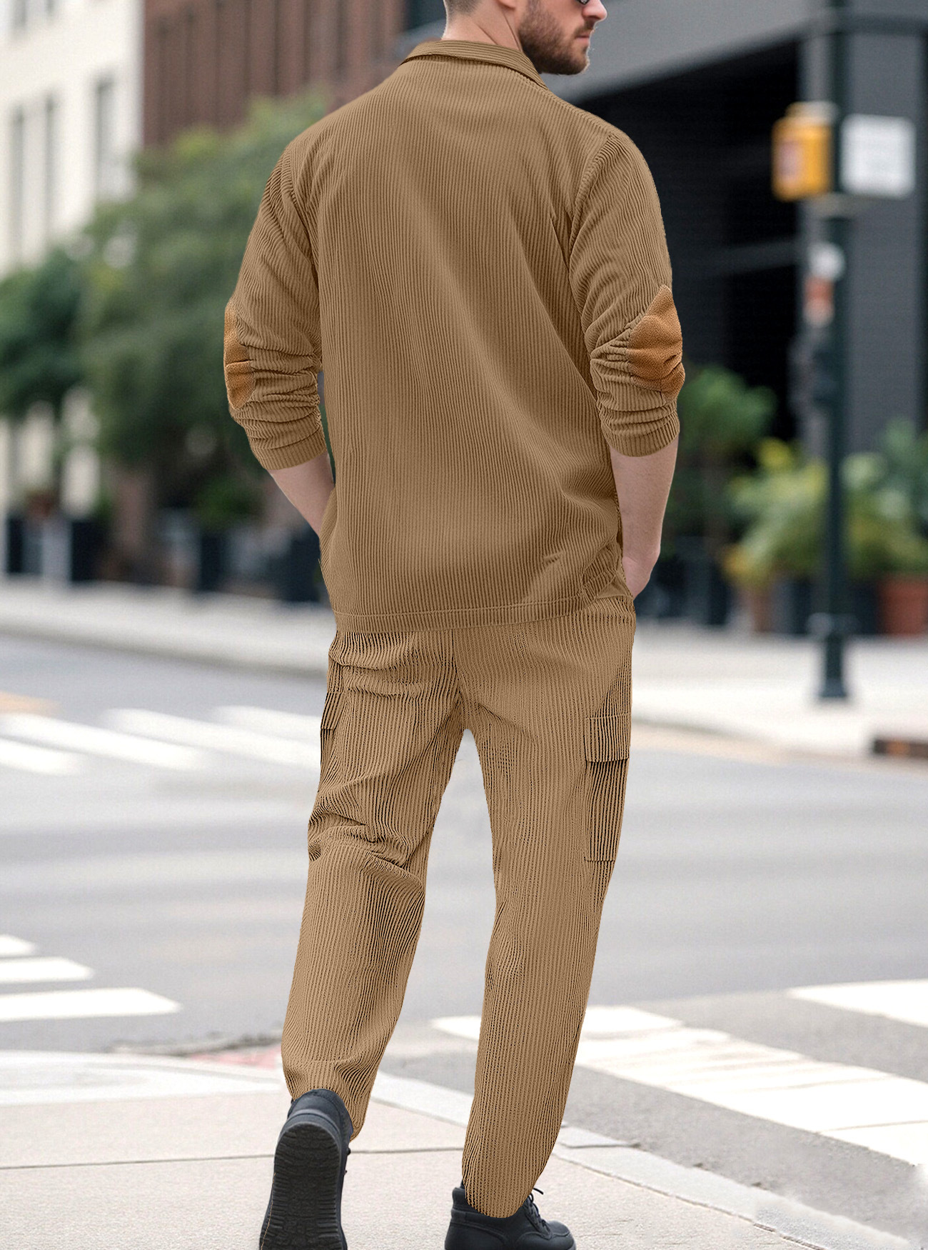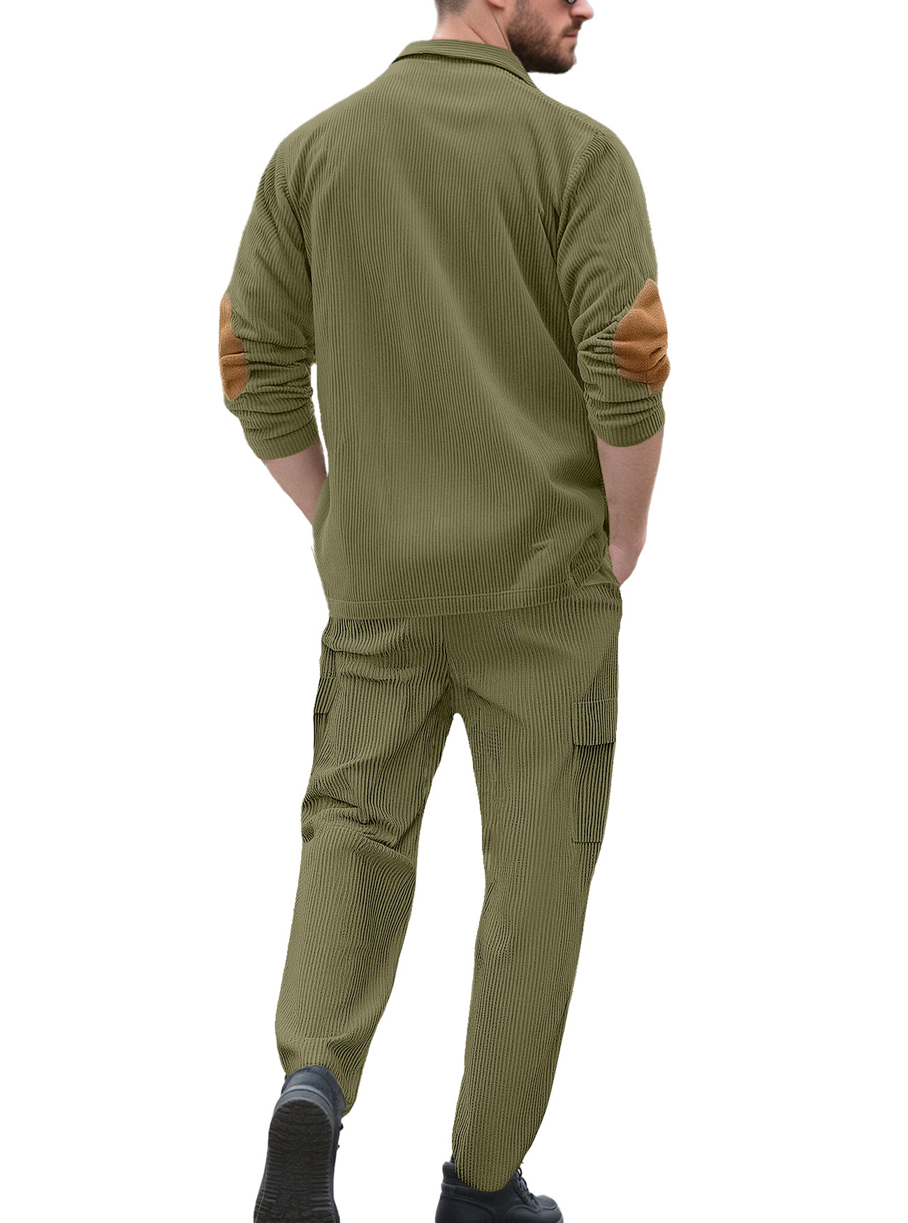 Comercio exterior Amazon transfronterizo Europa y Estados Unidos deportes casuales con solapa de manga larga dos piezas para hombres sueltos set de herramientas de color sólido