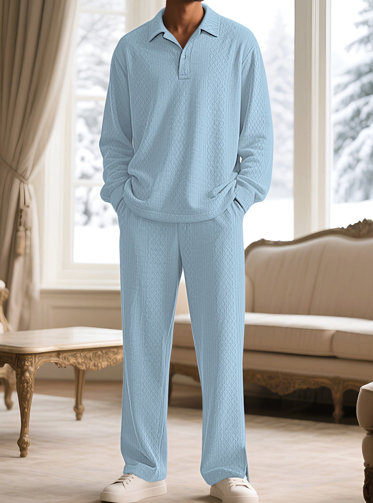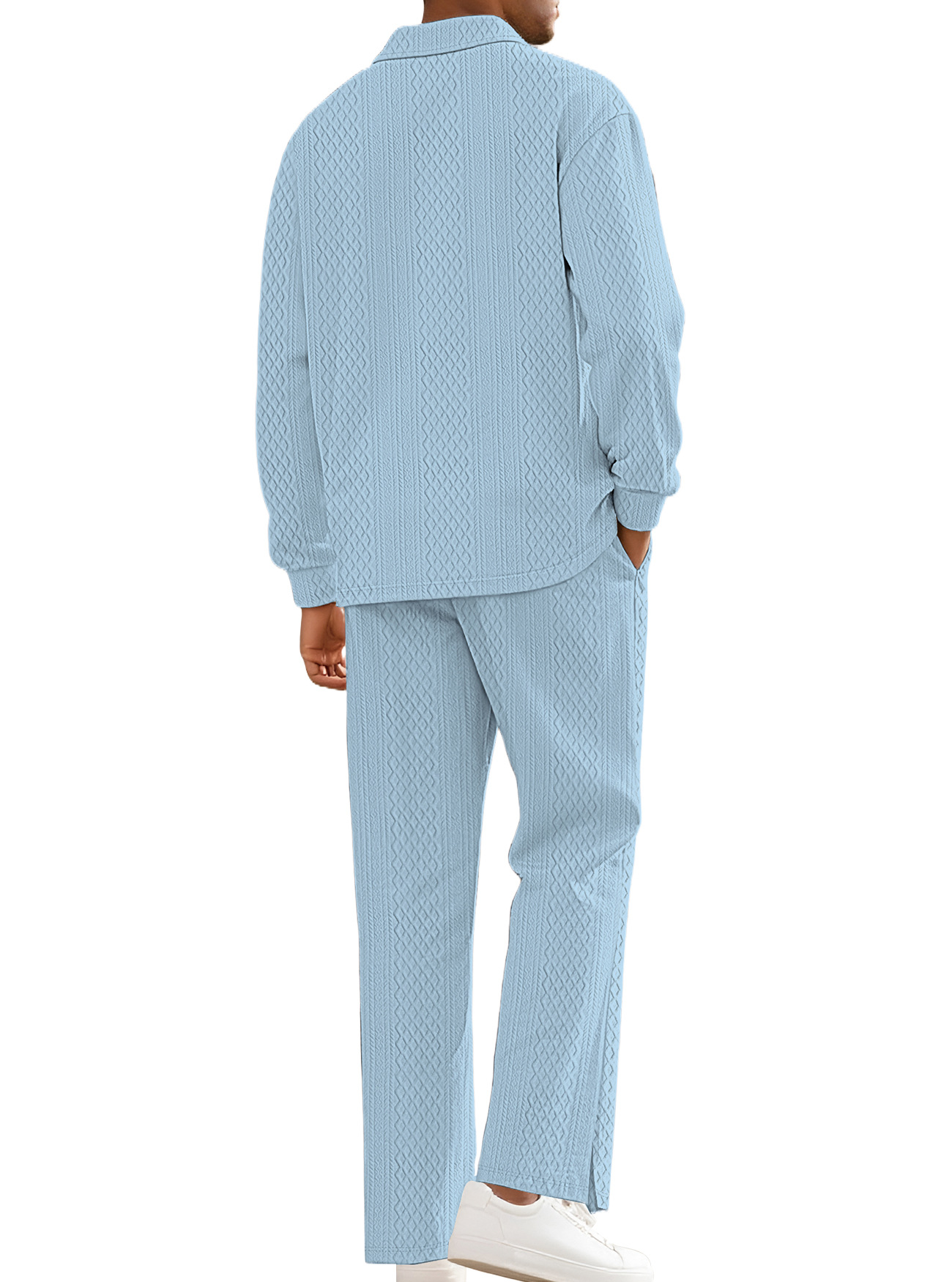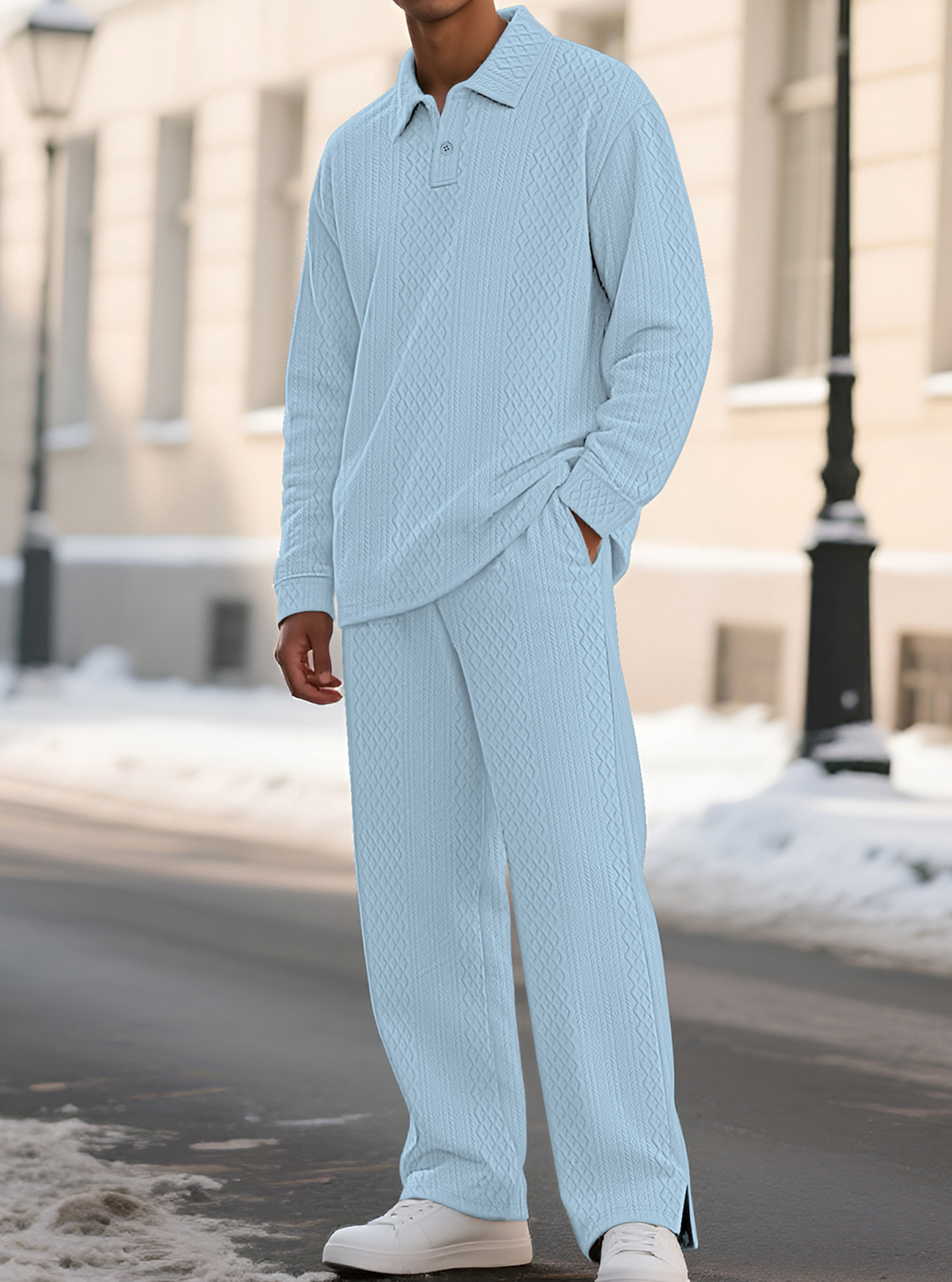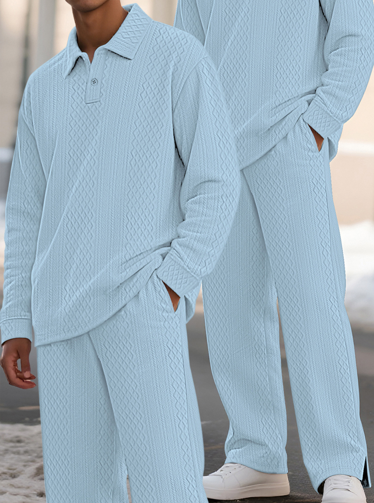 Europa y América Amazon transfronterizos Jacquard textura casual collar chaqueta pantalones deportivos de manga larga hombre polo set