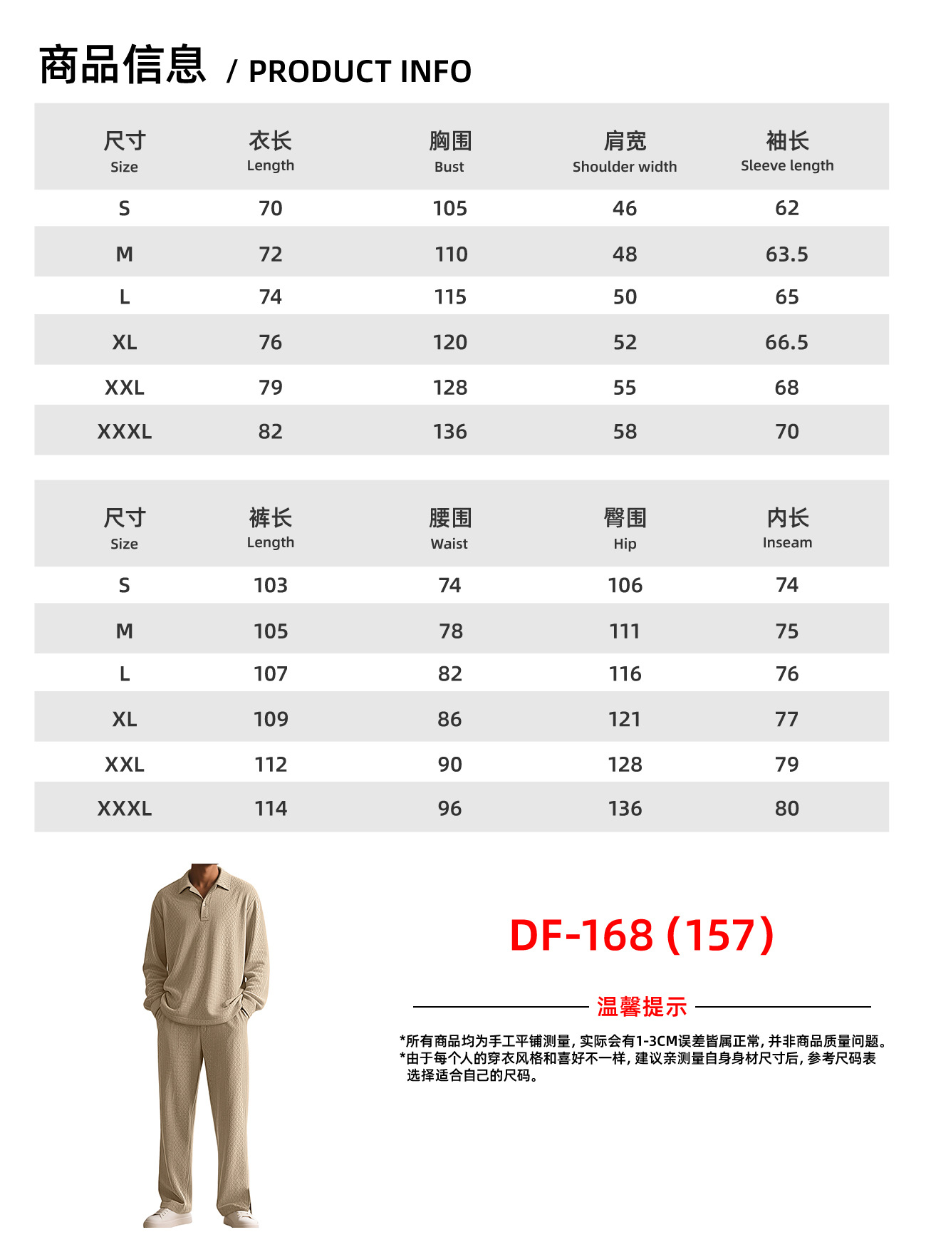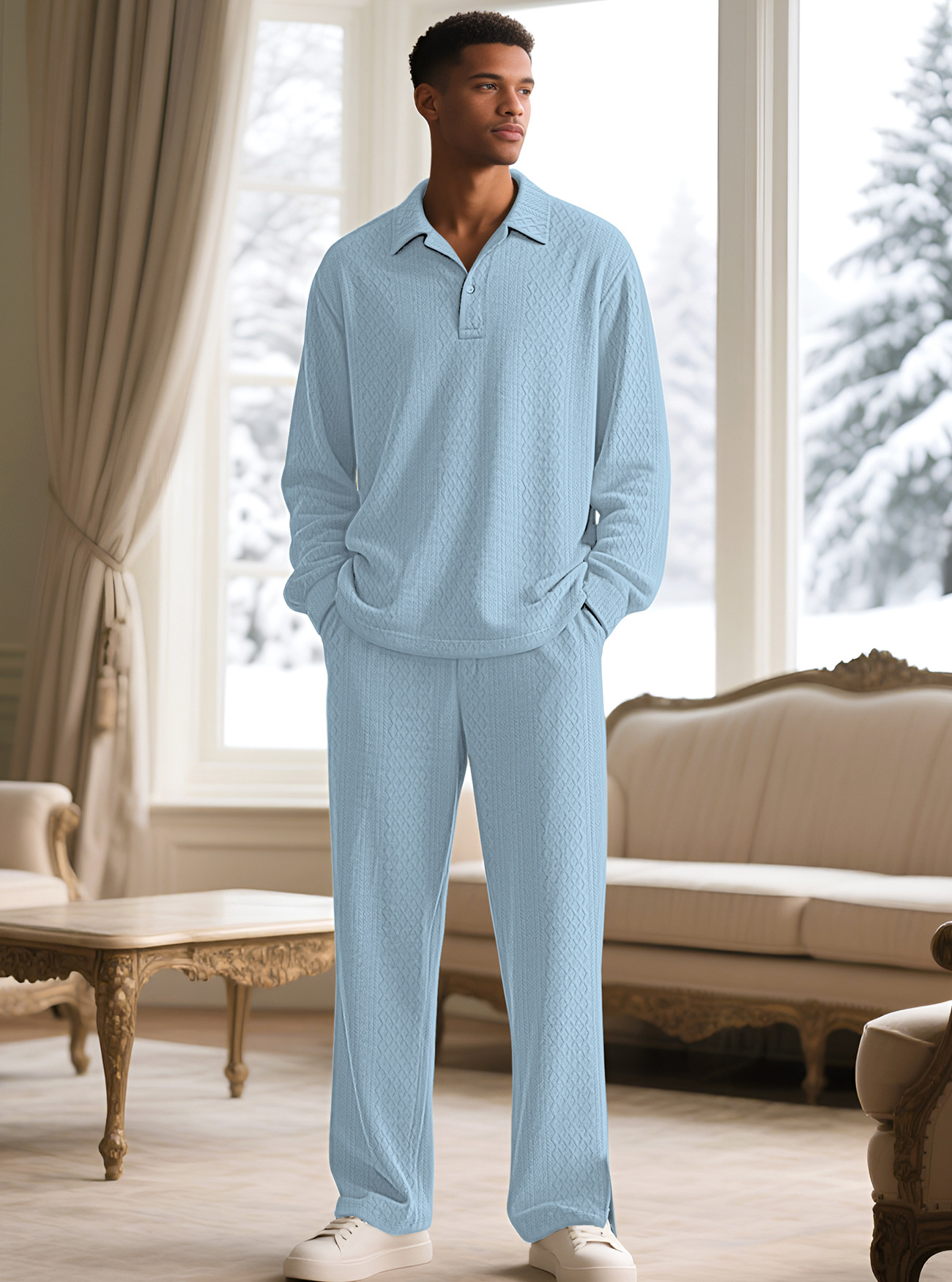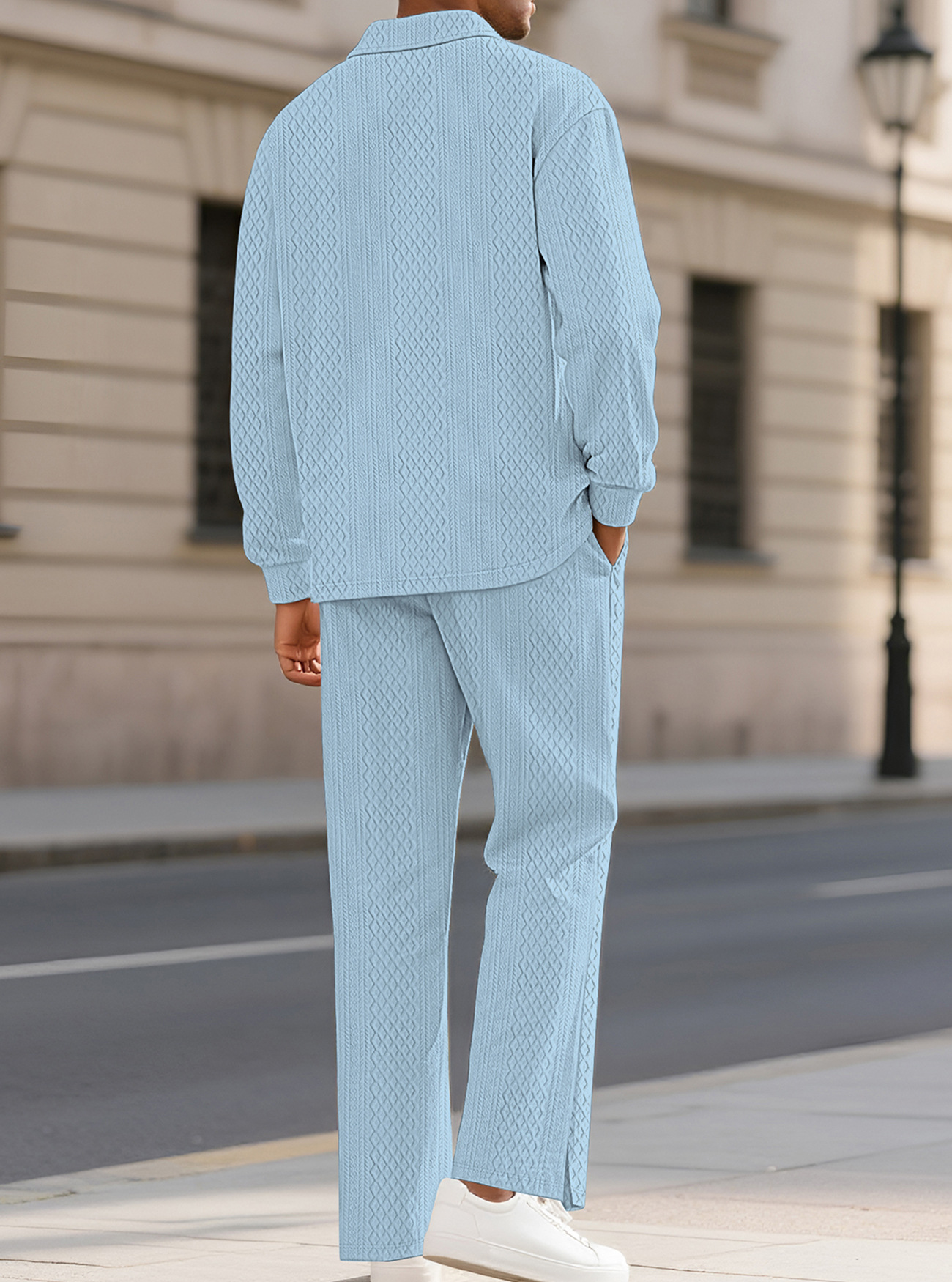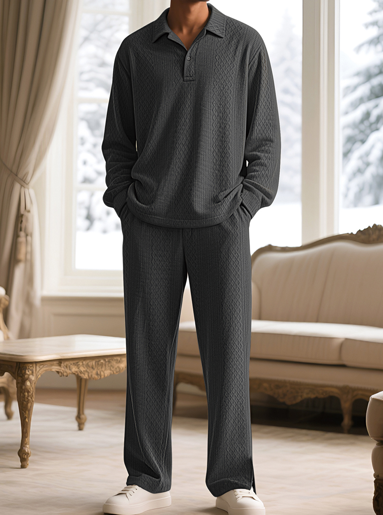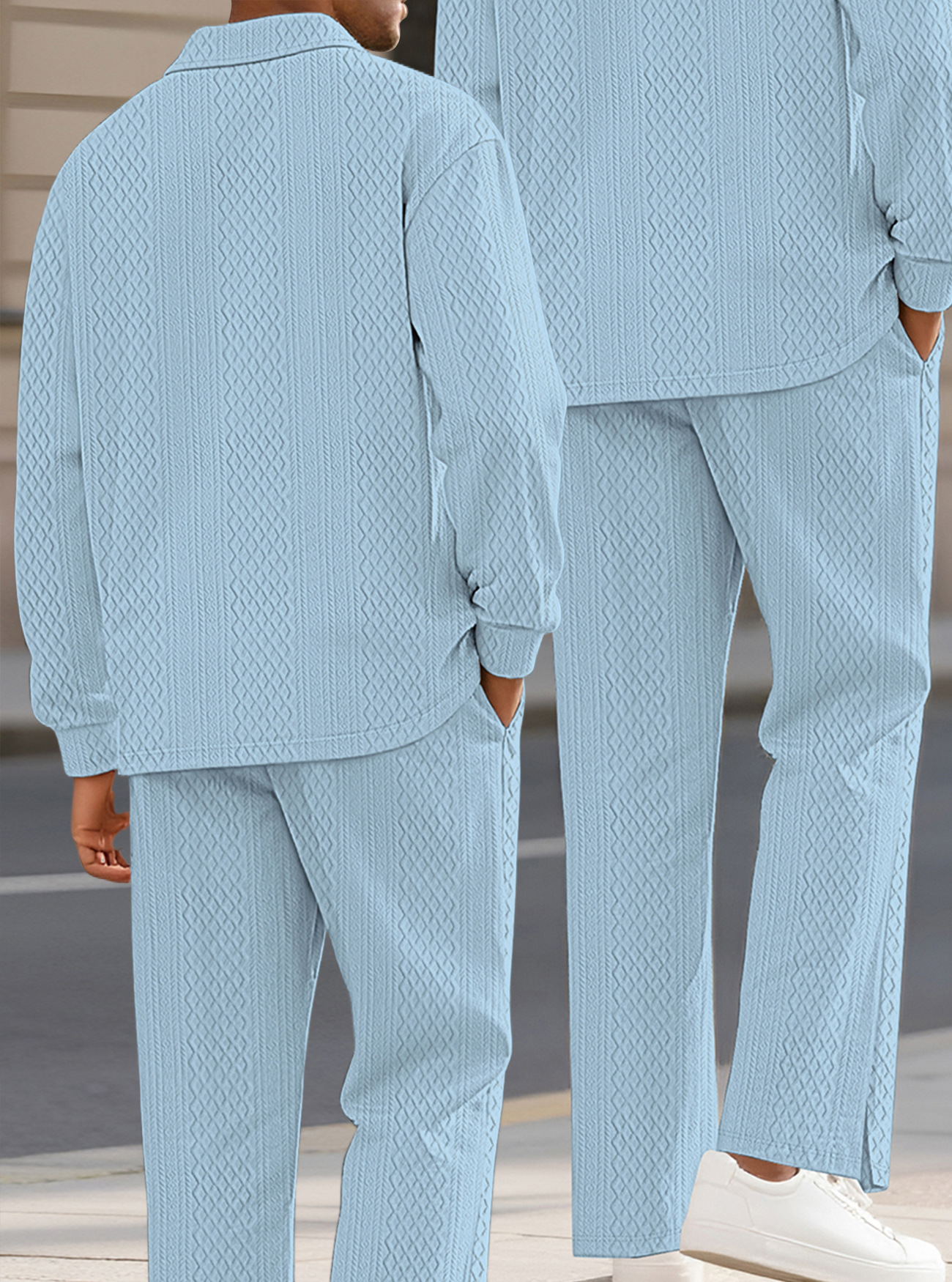 Europa y América Amazon transfronterizos Jacquard textura casual collar chaqueta pantalones deportivos de manga larga hombre polo set