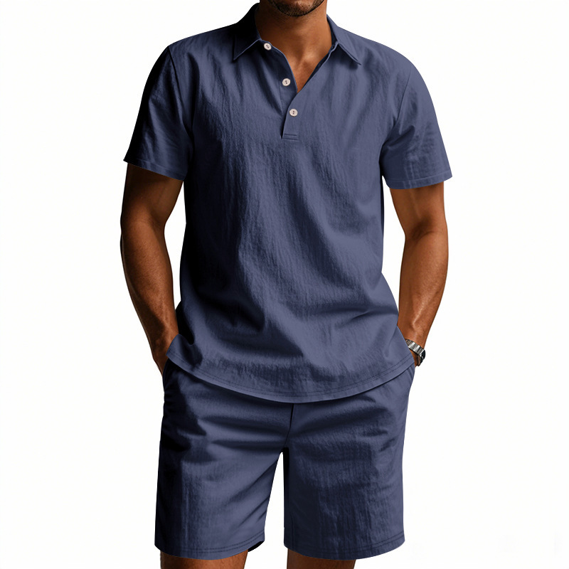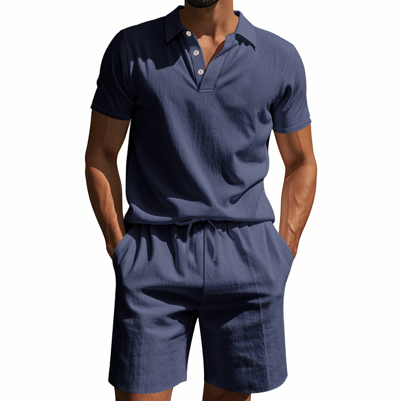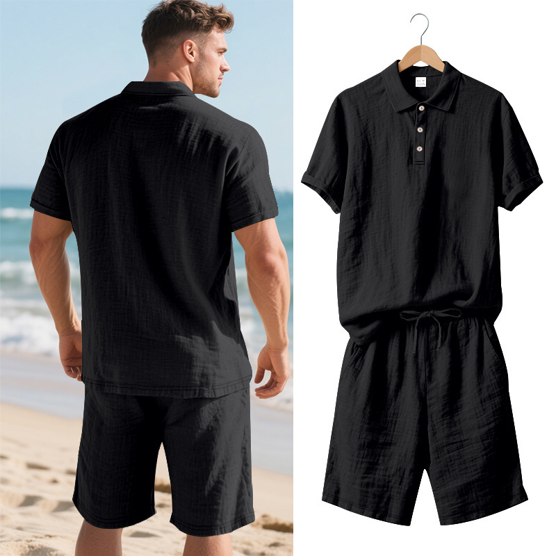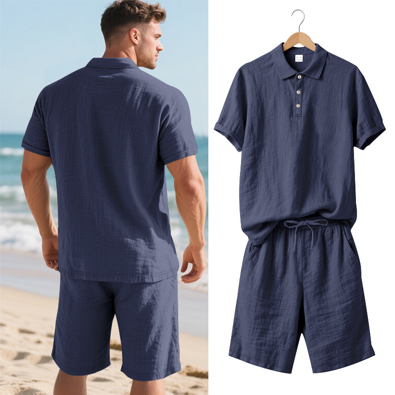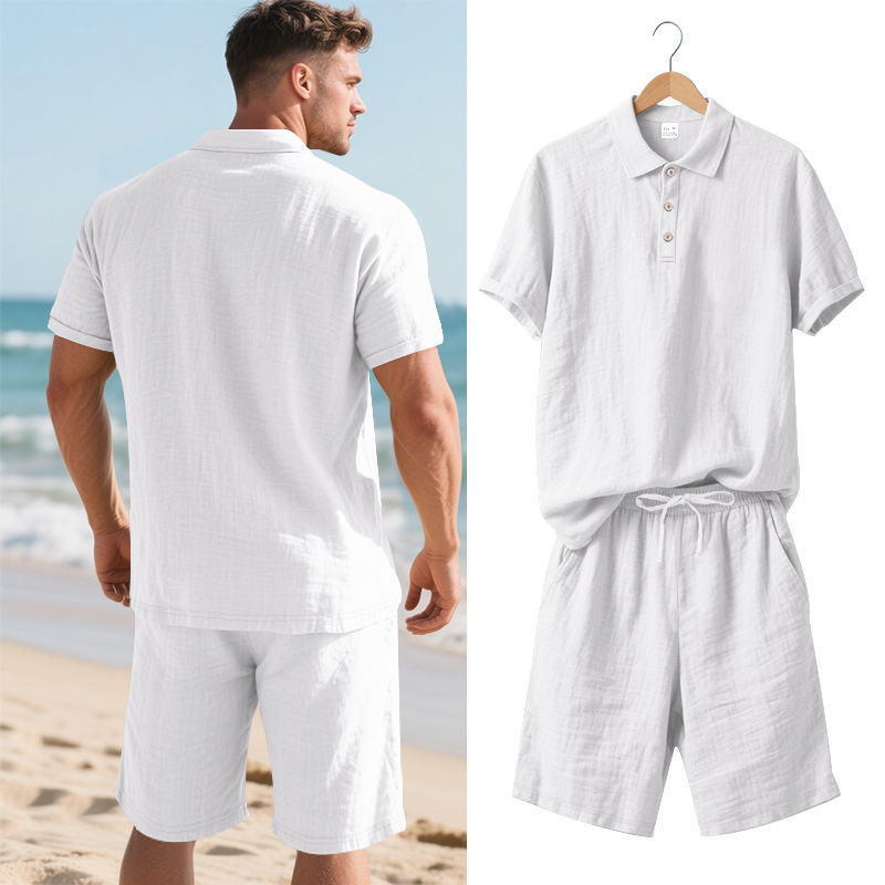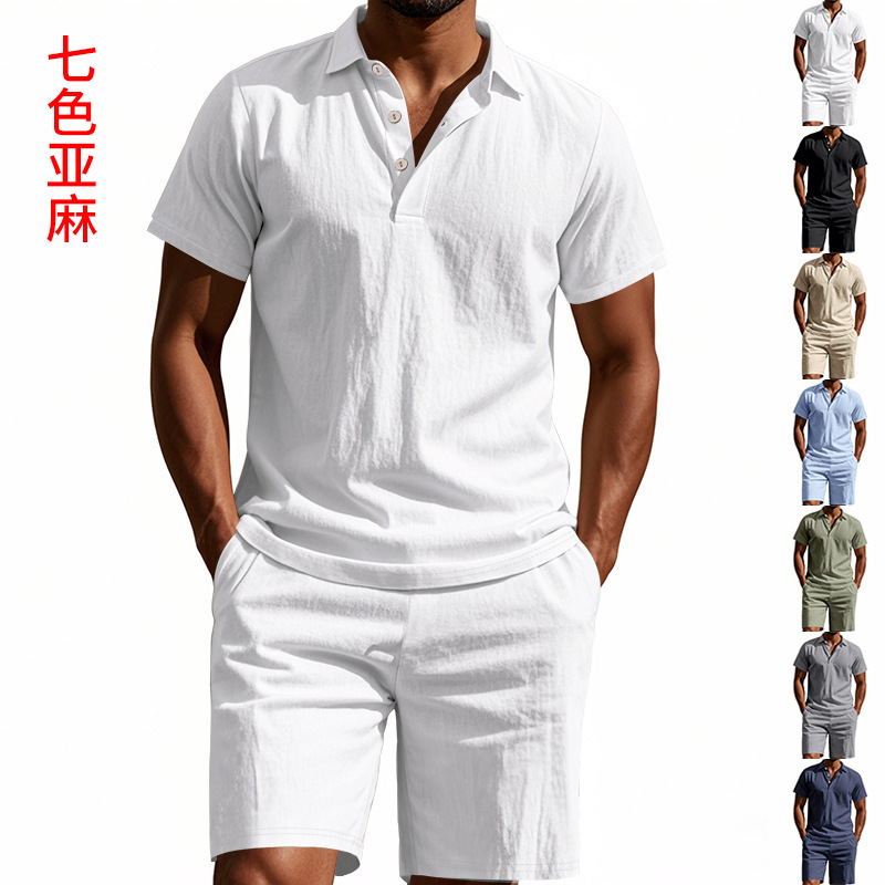 Tronos de Amazon American Summer para hombre suelto casual lino transpirable camisa POLO traje corto de manga de playa