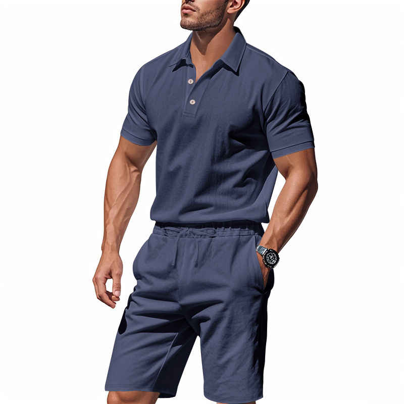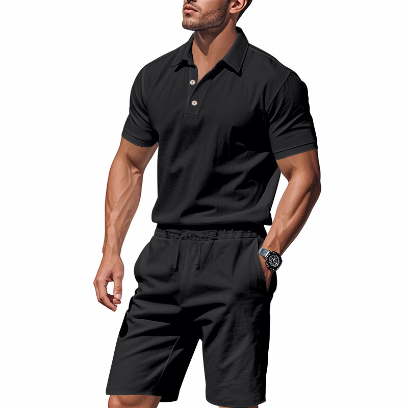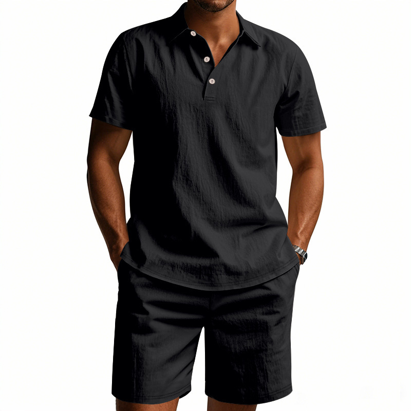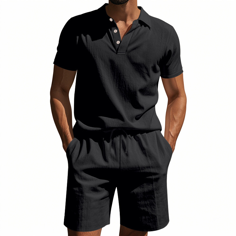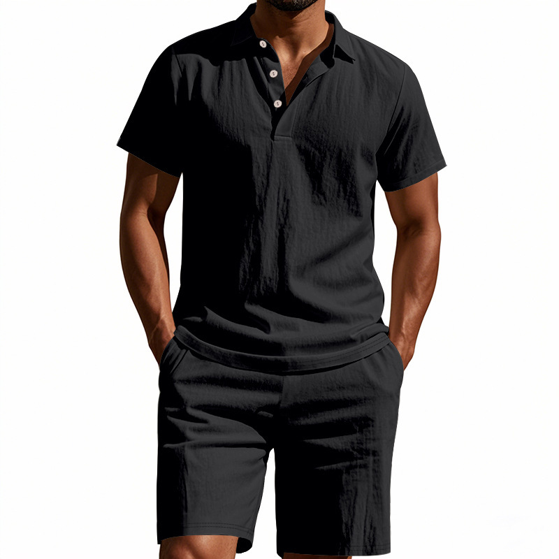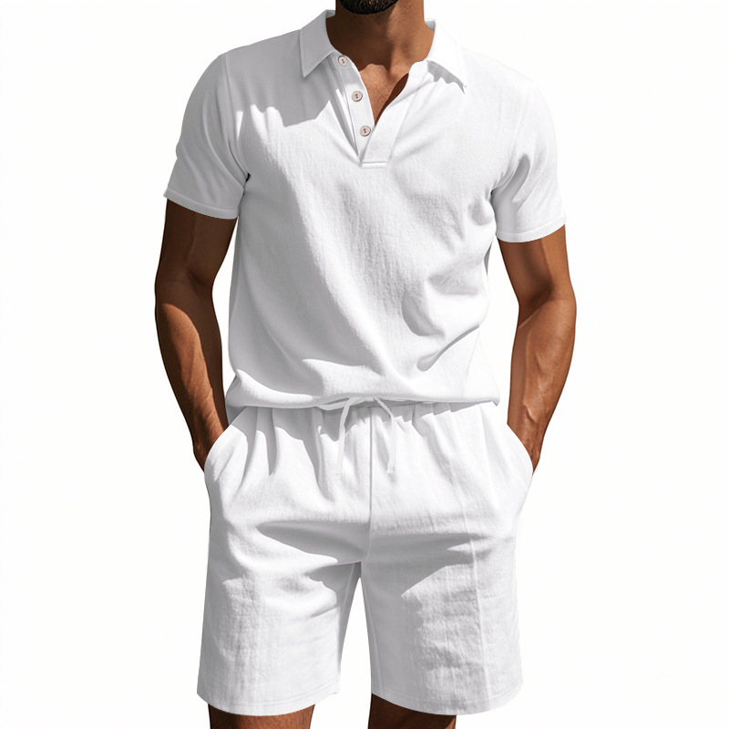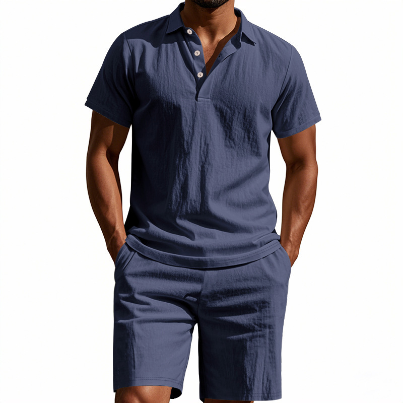 Tronos de Amazon American Summer para hombre suelto casual lino transpirable camisa POLO traje corto de manga de playa