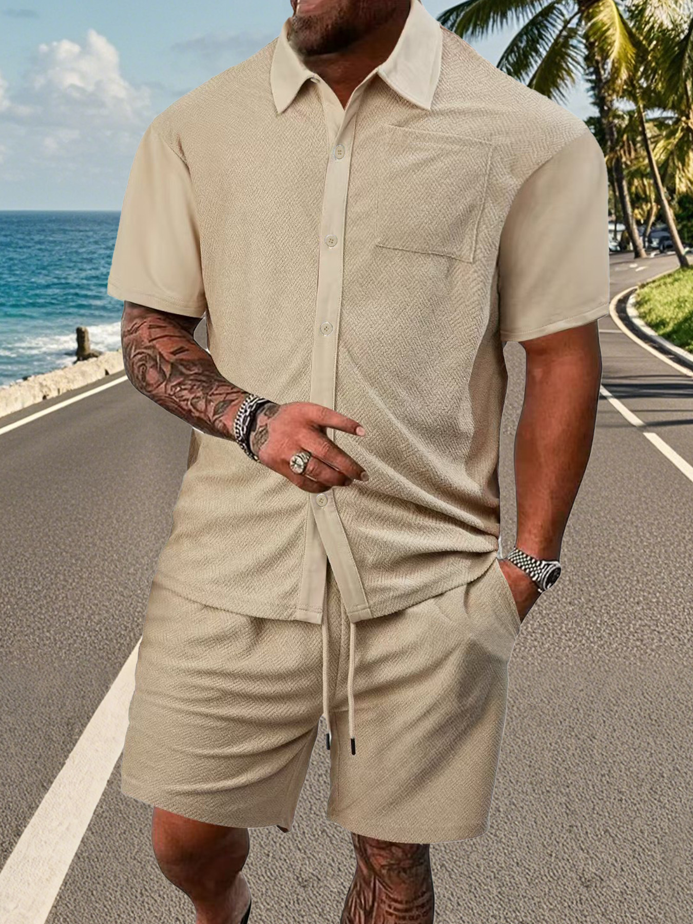 Europa y América transfronterizos TK paleta de verano relajado cómodo transpirable toallas Jacquard de color sólido pantalones cortos casuales de hombre