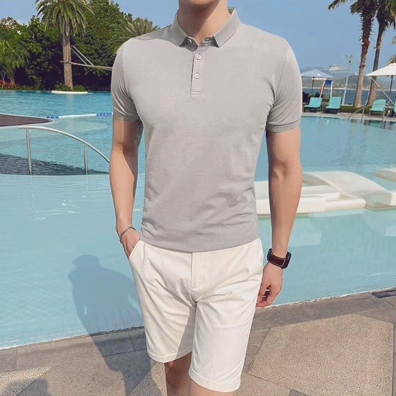 Camiseta polo para hombres de manga corta y pesada gris de negocios de manga cerrada camiseta de media manga madura pesada personalizada de verano