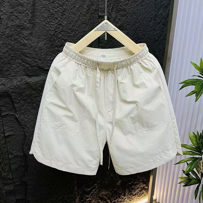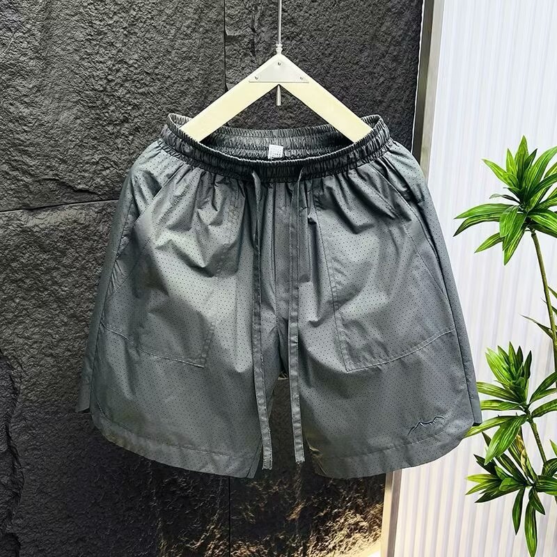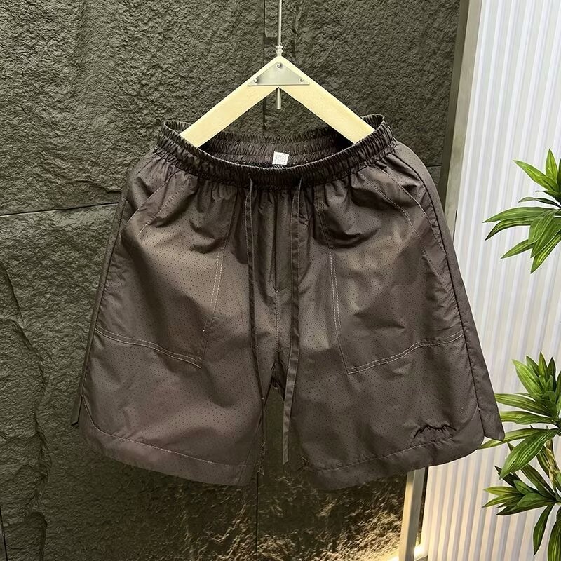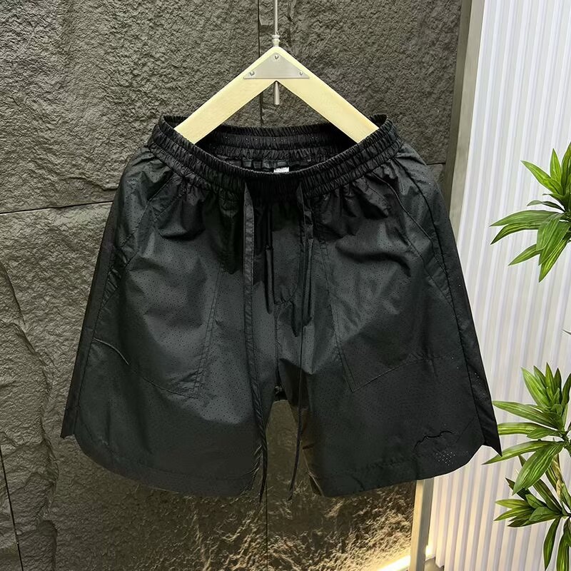 Pantalones cortos de malla transfronterizos estadounidenses de estilo de moda masculino delgados de diseño de nicho sueltos grandes pantalones deportivos casuales de cinco puntos