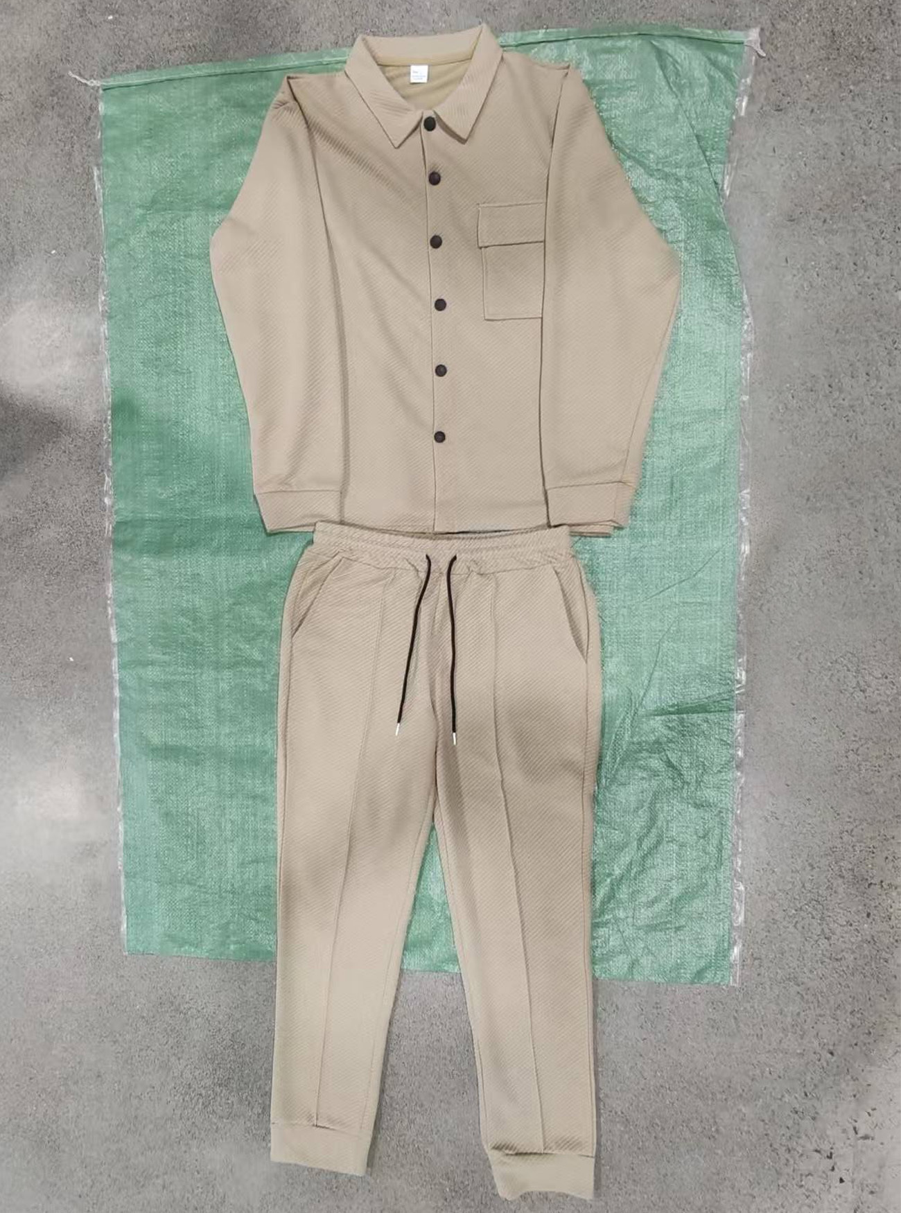 Amazon otoño y invierno cruzado pesado chaqueta de tweed pantalones casuales hombre nuevo Jacquard hombre de color sólido dos piezas