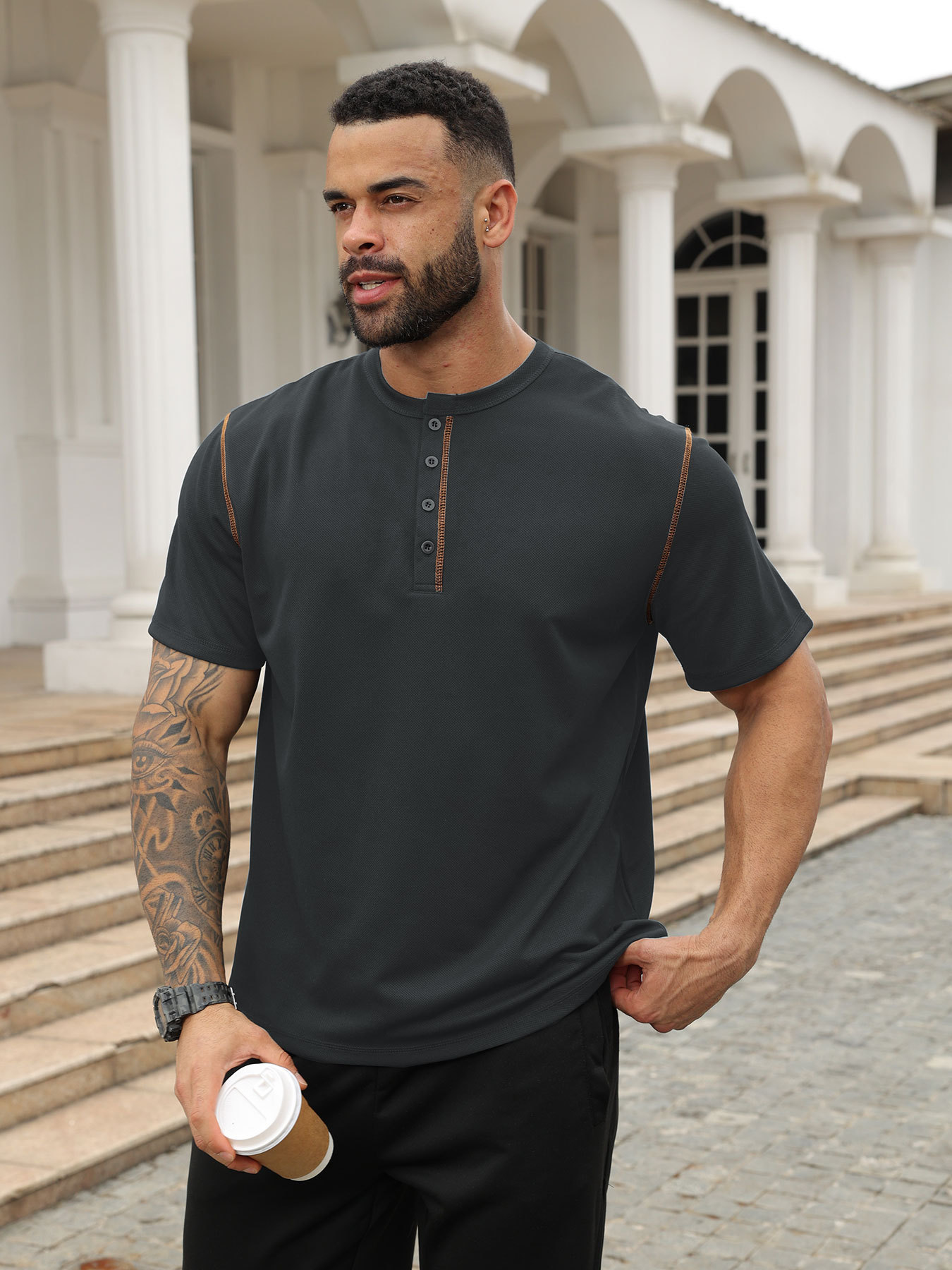 Europa y Estados Unidos transfronterizos ropa de hombre de verano retro colores casuales botones sueltos cornisa de piña camisa polo de hombre de manga corta