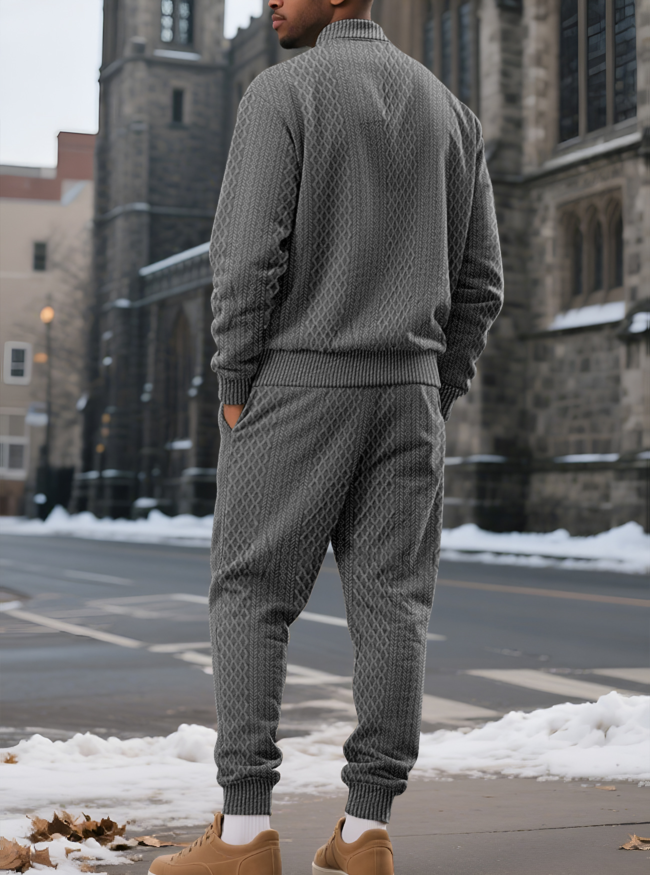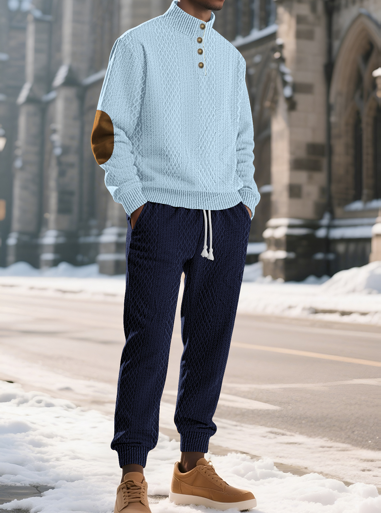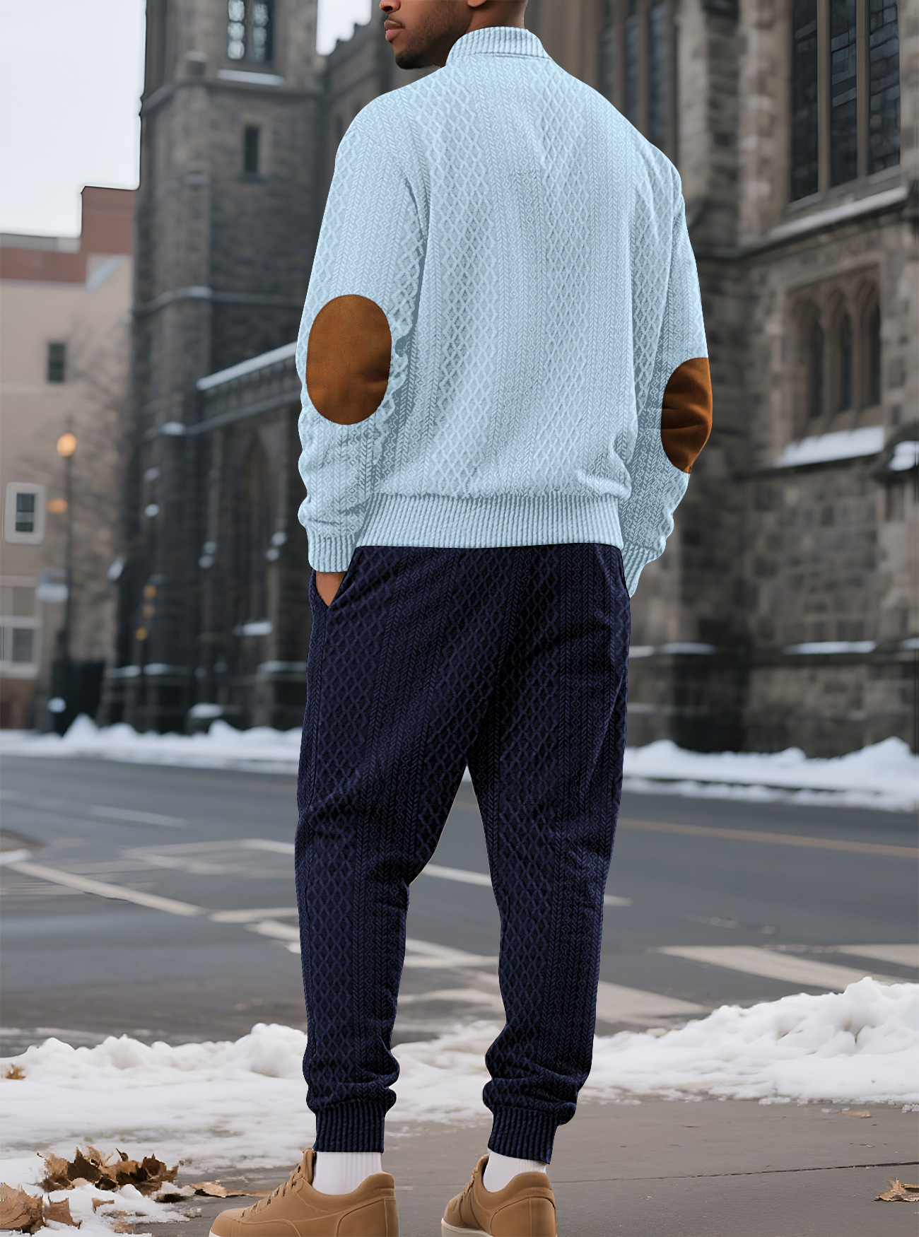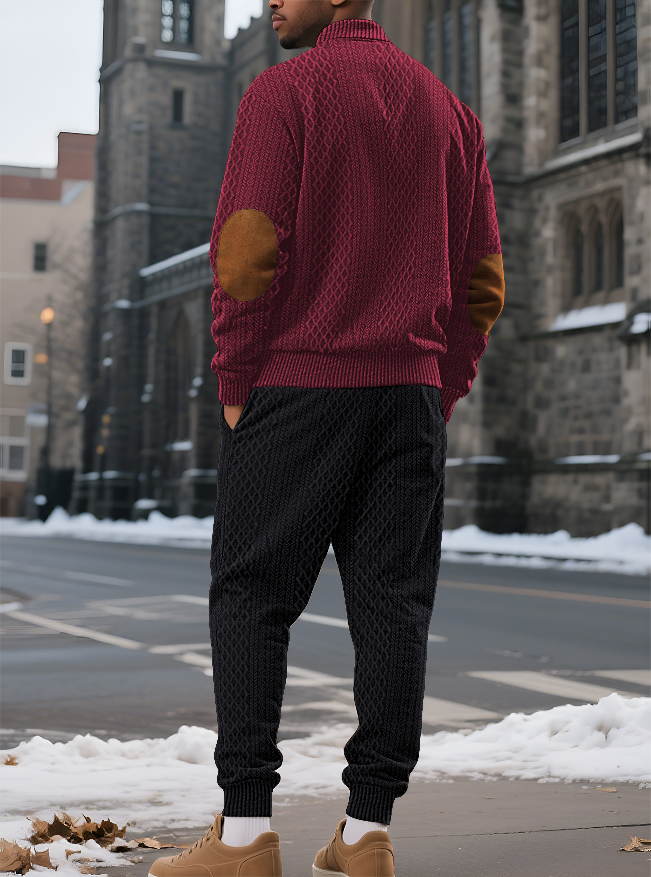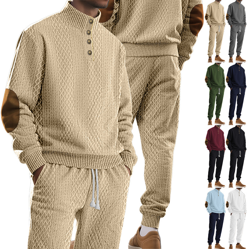 Transfronterizo Europa y América Amazon hombre cuello alto Jacquard casual bordado sweaters deportivos de color sólido manga larga pantalones largos set